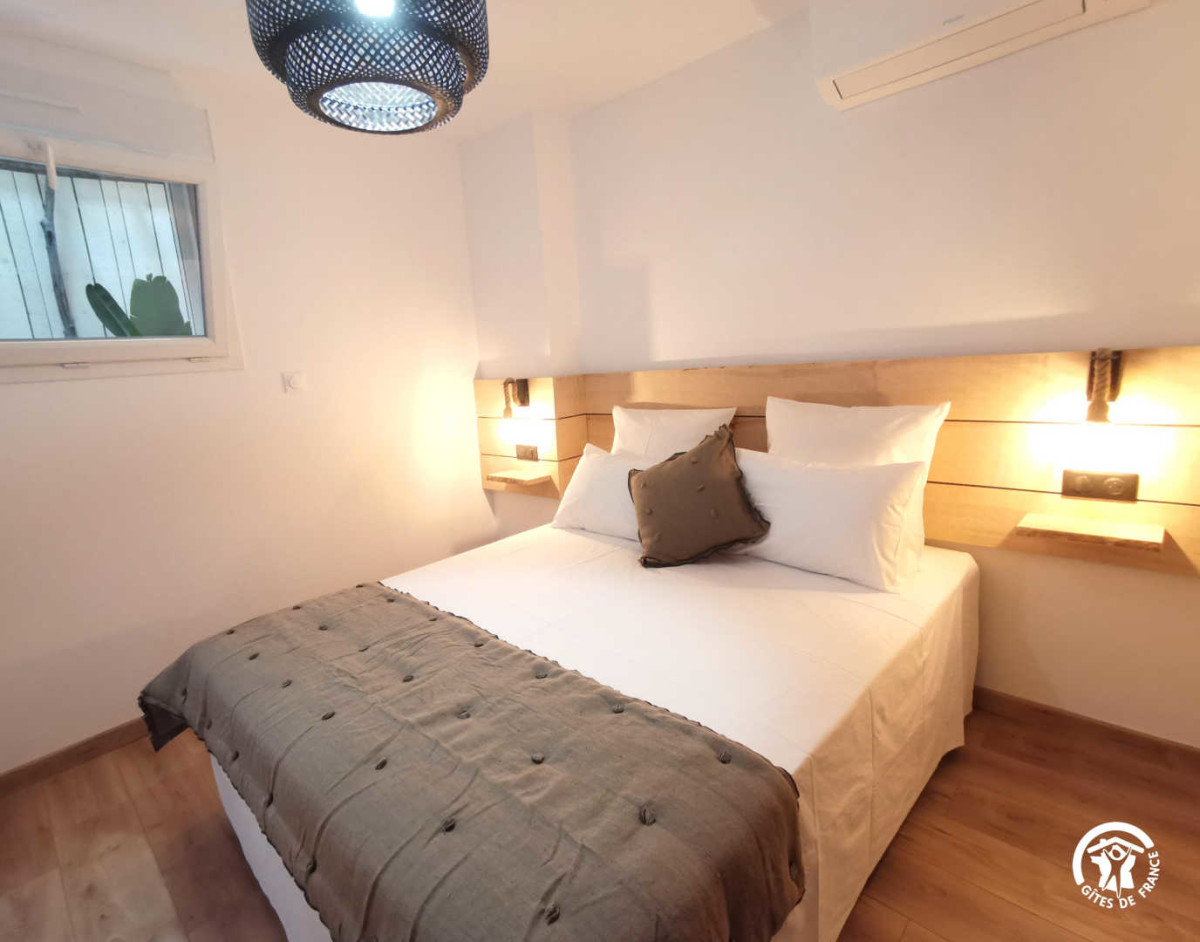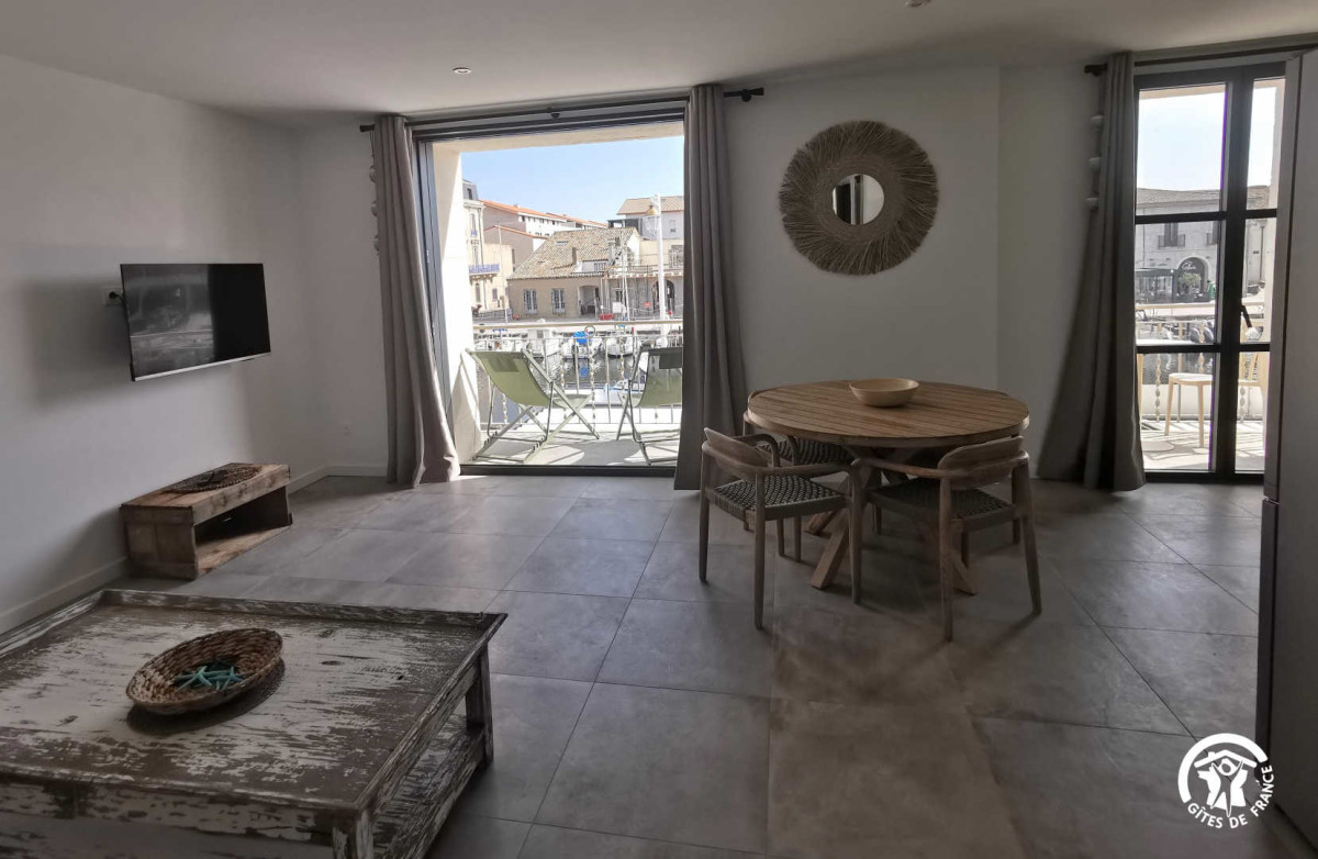 Entièrement rénové, vous pourrez profiter de cet appartement de 100m2 qui ne manquera pas de vous surprendre. Le séjour fait face au port et à ses bateaux, vous pourrez ainsi profiter de la vue depuis l’espace détente ou la cuisine. Cette dernière est entièrement équipée: four, micro-ondes, lave-vaisselle, nécessaire de cuisine, machine à café… Le gîte dispose de deux chambres doubles, avec chacune son lit queen size et ses espaces de rangements, ainsi que d’une grande salle de bain avec douche à l’italienne et de nombreux rangements. Le charme de ce gîte réside certes dans la vue surplombant le port, mais aussi par son patio aménagé en espace détente. Vous pourrez profiter de ce lieu pour lire ou vous reposer. Afin de vous offrir le maximum de confort, le gîte est équipé d’une TV, d’une connexion WiFi, de la climatisation dans chacune des pièces, d’un fer à repasser, d’un sèche-cheveux et d’une machine à laver. Les charges, les draps et le linge de toilette sont inclus. Le ménage est en option à 50€. Parking sur réservation auprès des propriétaires. ATTRAITS TOURISTIQUES: La ville de Marseillan est idéalement située sur le bassin de Thau, à proximité de la Lagune et de Sète. A quelques kilomètres seulement des villes de Béziers et Montpellier, vous pourrez également profiter d’escapades citadines mais aussi profiter du littoral et des plages. De nombreuses activités sont possibles à Marseillan: se promener le long des quais et admirer les bateaux de pêche traditionnels, faire une balade à vélo le long de la piste cyclable qui relie Marseillan Ville à Sète, profiter des larges plages de sables et se baigner dans la mer Méditerranée, visiter le Musée de l’Huître et de l’Ostréiculture, qui retrace l’histoire de la culture de ces mollusques, apprécier le calme et la beauté des paysages de la réserve naturelle du Bagnas.