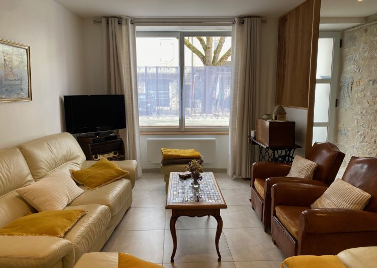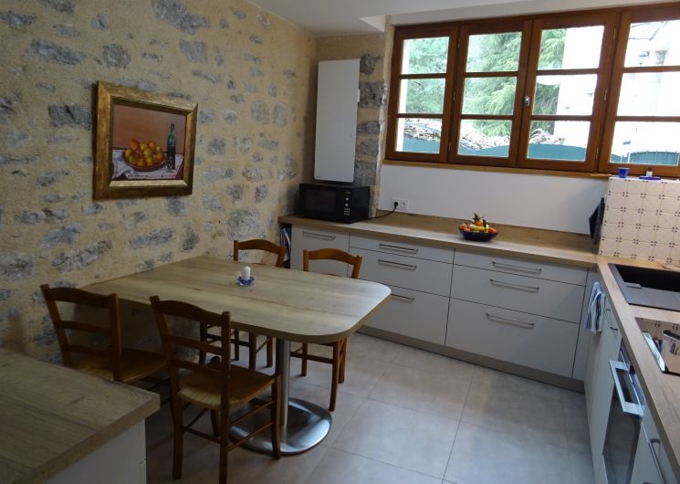 Entièrement restaurée sur 3 niveaux en 2019, elle offre un espace de 180 m². Au rez-de-chaussée : grand séjour salle manger avec un poêle à bois, cuisine et cellier. Cuisine aménagée très complète avec four encastré, plaque à induction, hotte, frigo, lave-vaisselle, micro-ondes . Imposante batterie de cuisine. Dans le cellier, lave-linge, cinq vélos, boules de pétanque raquettes de tennis. Douche et WC. Au premier : terrasse d’été de 18 m² avec cuisine d’été comprenant un frigo et une plancha ; deux grandes chambres climatisées, avec lits de 160 et un lit bébé. Salle de bain avec baignoire, douche et deux lavabos, radiateur chauffant et sèche-cheveux. WC. Au deuxième : suite traversante très lumineuse avec coin salon, TV plasma, lecteur DVD et une grande collection de films et un lit de 160. Salle de bain/WC et lavabo. Chambre également climatisée. Mezzanine avec deux lits de 100.