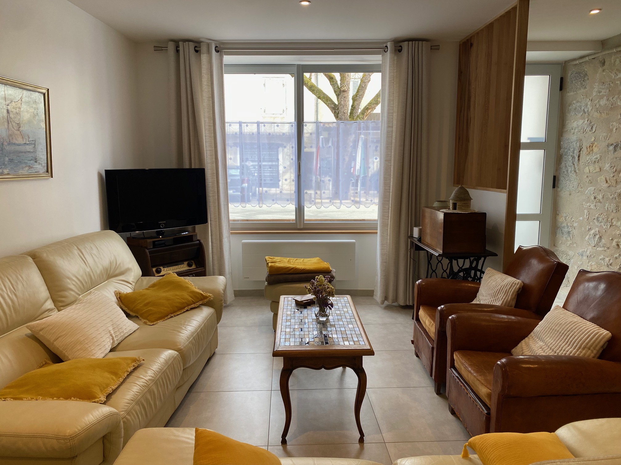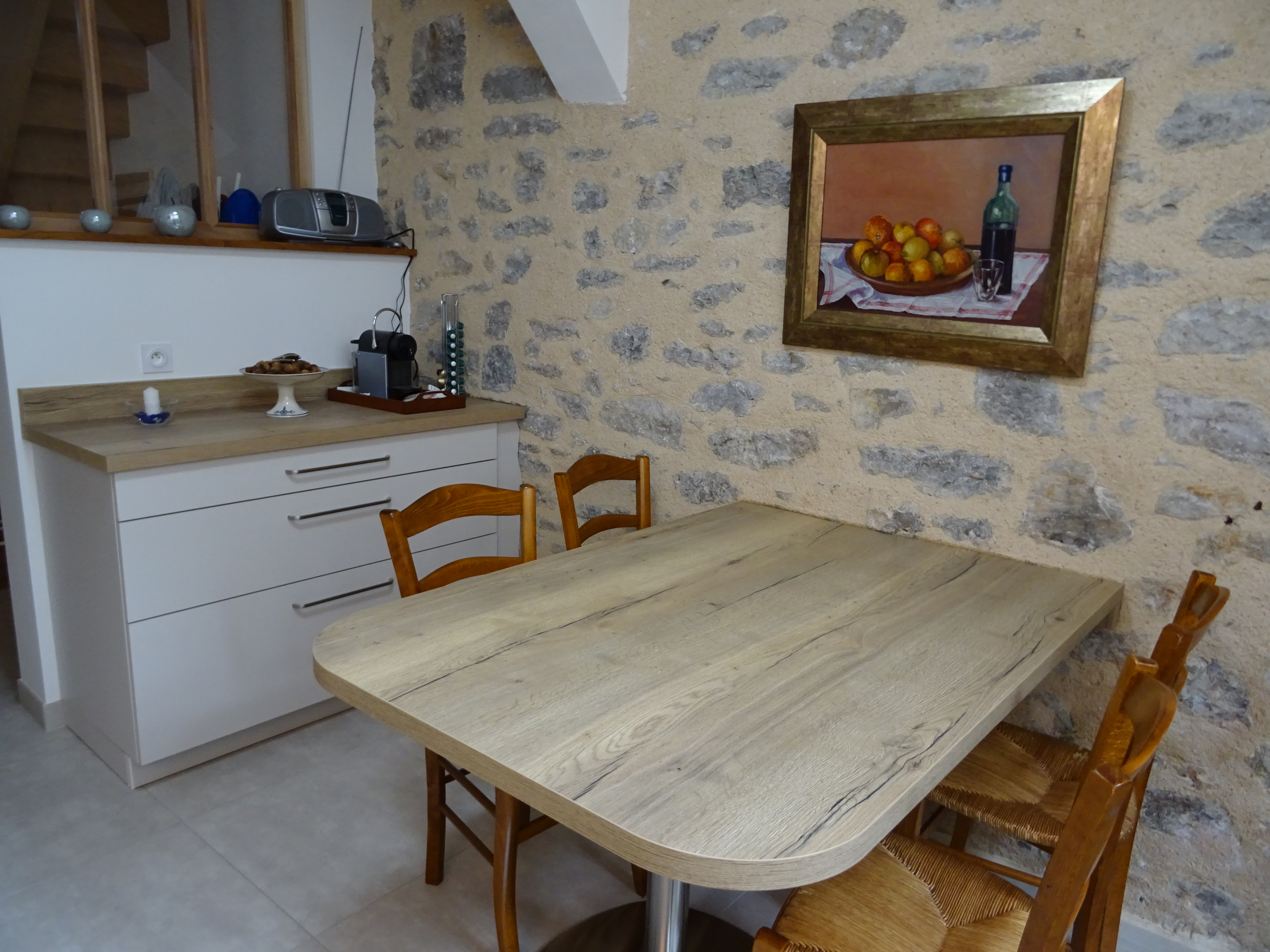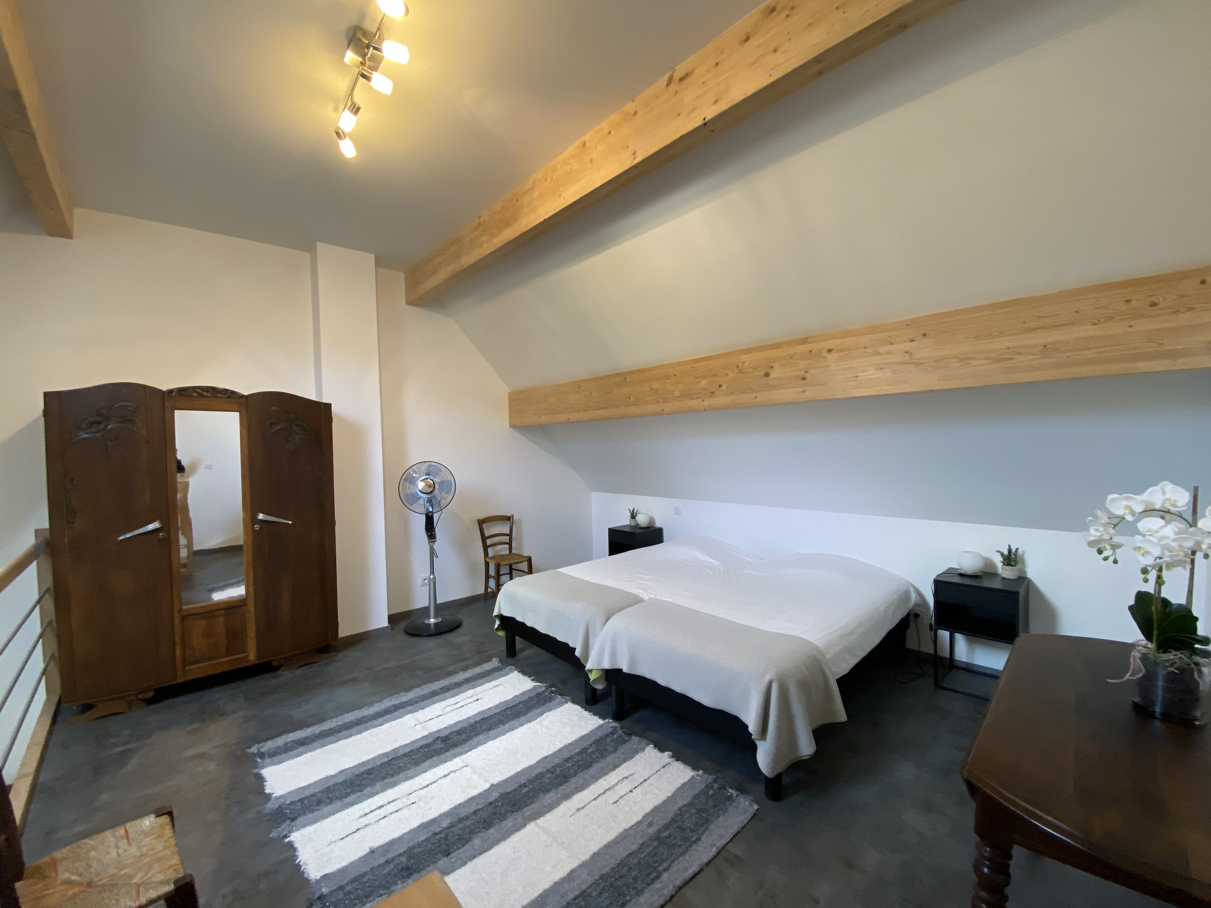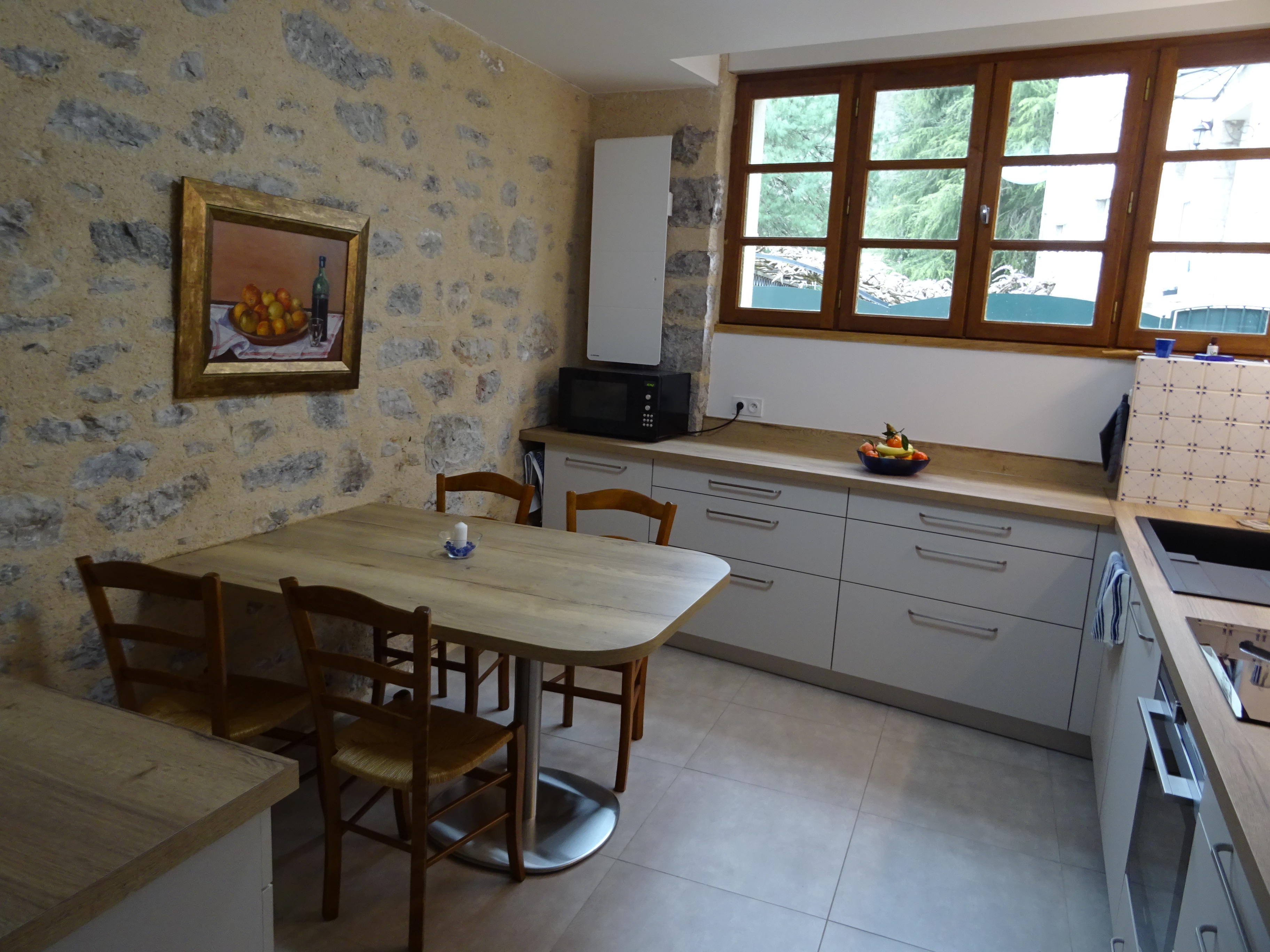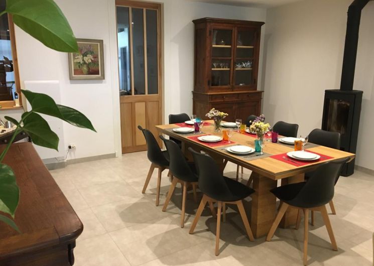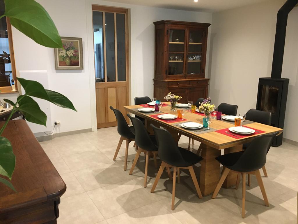 Entièrement restaurée sur 3 niveaux en 2019, elle offre un espace de 180 m². Au rez-de-chaussée : grand séjour salle manger avec un poêle à bois, cuisine et cellier. Cuisine aménagée très complète avec four encastré, plaque à induction, hotte, frigo, lave-vaisselle, micro-ondes . Imposante batterie de cuisine. Dans le cellier, lave-linge, cinq vélos, boules de pétanque raquettes de tennis. Douche et WC. Au premier : terrasse d’été de 18 m² avec cuisine d’été comprenant un frigo et une plancha ; deux grandes chambres climatisées, avec lits de 160 et un lit bébé. Salle de bain avec baignoire, douche et deux lavabos, radiateur chauffant et sèche-cheveux. WC. Au deuxième : suite traversante très lumineuse avec coin salon, TV plasma, lecteur DVD et une grande collection de films et un lit de 160. Salle de bain/WC et lavabo. Chambre également climatisée. Mezzanine avec deux lits de 100.