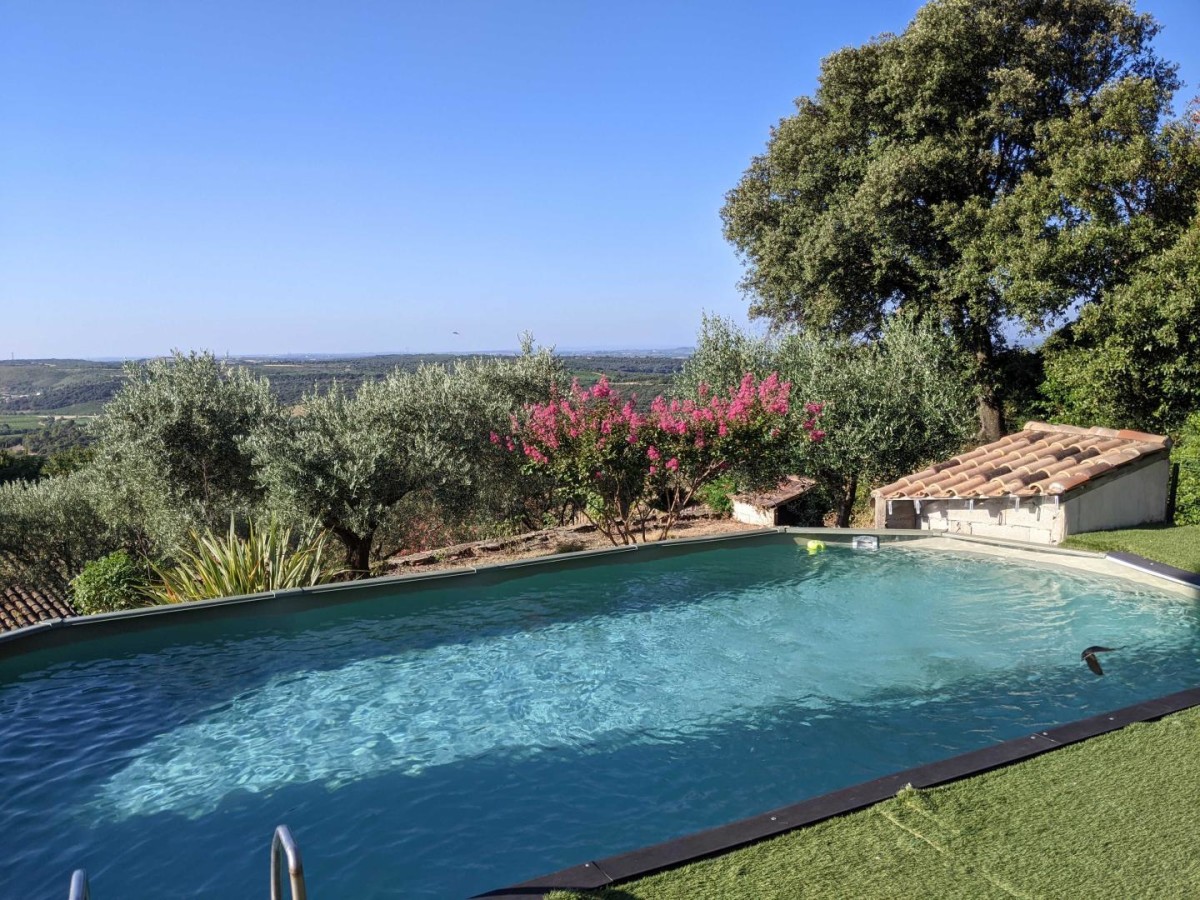 De par sa position sur la colline, vous bénéficierez d’un panorama ravissant sur les vignobles alentours et sur la mer. Aux alentours, découvrez les Moulins et les vins de l’AOP Fougères, ainsi que le village susnommé, petit village perché charmant où vous aurez le plaisir de déambuler. A une quinzaine de kilomètres, ne manquez pas de faire une randonnée au célèbre cirque de Mourèze, avec ses formations rocheuses uniques et le point de vue qu’il offre sur le non moins célèbre lac du Salagou. Autour et sur le lac et ses terres rouges, vous pourrez là aussi profiter des sentiers à pied ou à vélo, vous reposer au bord de l’eau ou profiter d’une des nombreuses activités nautiques proposées (voile, paddle, canoë…). Visitez également la ville de Pézenas avec son architecture ancienne, son artisanat local unique avec ses sculpteurs, potiers, souffleurs de verre, et déambulez dans les jolies ruelles de la ville de Molière. Le gîte comprend : – Une belle pièce de vie avec un espace salon avec canapé, fauteuils et télévision, une table à manger ainsi qu’une cuisine avec gazinière, micro-ondes, lave-vaisselle, réfrigérateur avec compartiment congélateur, cafetière expresso et traditionnelle, bouilloire et tout le nécessaire de cuisine ; – Une première chambre avec un lit double 140×190 cm ; – Une deuxième chambre avec deux lits simples 90×200 cm jumelables ; – Une salle d’eau avec douche, vasque avec miroir, ainsi qu’un WC indépendant ; – Une buanderie avec machine à laver et congélateur ; – A l’étage, une troisième chambre avec un lit double en 140×190 cm et un lit simple en 90×190 cm ; – Une deuxième salle d’eau avec douche et vasque avec miroir, et un WC indépendant ; – Un bel espace extérieur avec un salon de jardin, des bains de soleil, un parking sécurisé pour trois voitures maximum, ainsi qu’à 50 mètres du gîte une piscine commune avec les propriétaires (9,20mx4,60m) avec une vue superbe sur les alentours.