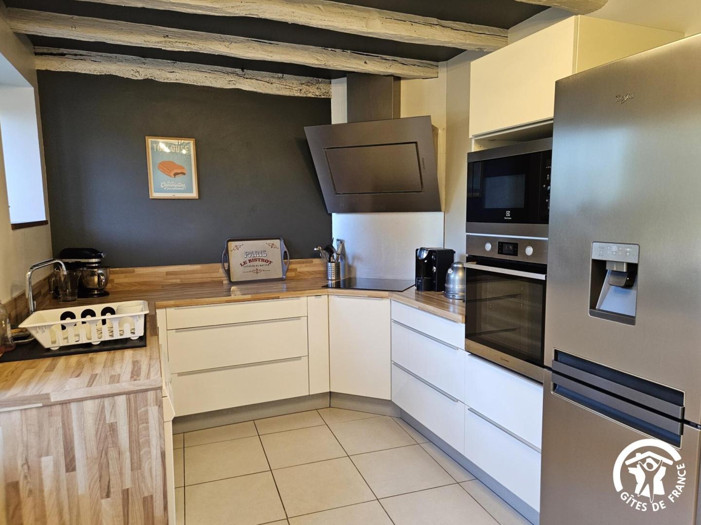 * cuisine entièrement équipée : plaque à induction, four, micro-ondes, lave-vaisselle, réfrigérateur, congélateur, machine à café Tassimo…
