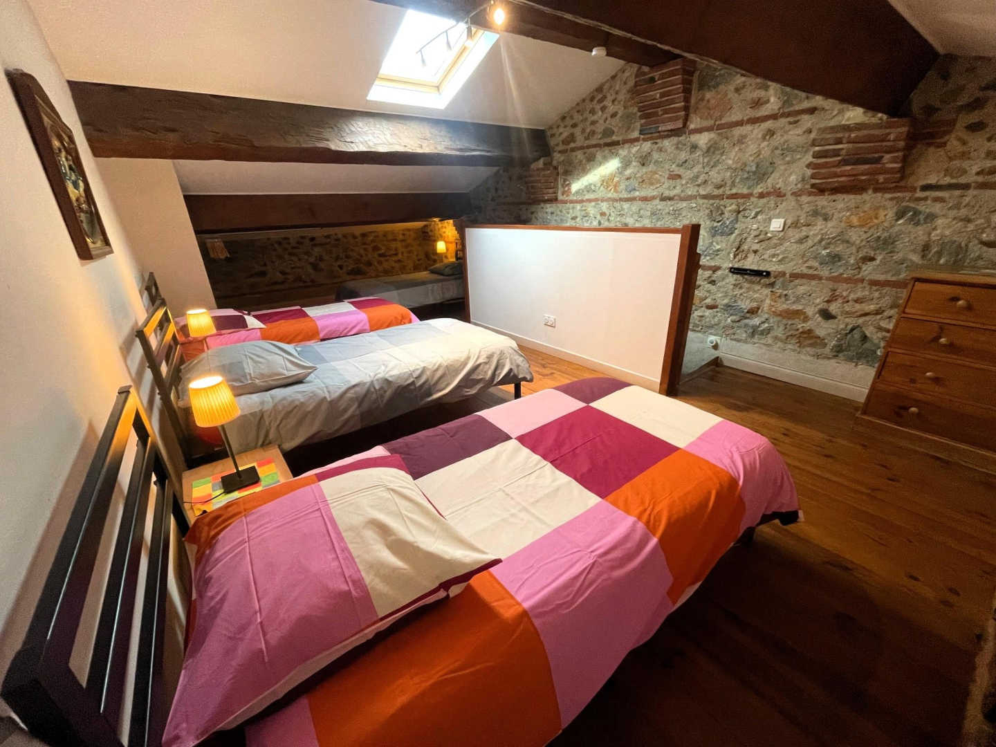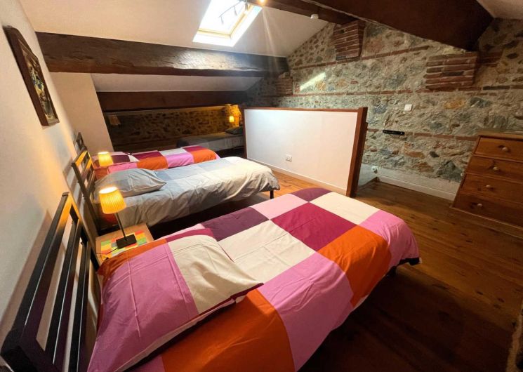 Cette ancienne bâtisse rénovée, située dans un quartier calme du bourg, offre quatre gîtes confortables et un accès facile aux marchés artisanaux et aux sentiers balisés de randonnées pédestres et cyclistes. Cette bâtisse rénovée, ancien relais à chevaux de caractère, est idéalement située dans un quartier paisible du bourg. Elle comprend quatre gîtes et l’habitation du propriétaire. GITE : Rez-de-chaussée surélevé : Séjour avec coin cuisine ouvert sur la terrasse WC 1er étage : 1 chambre avec 1 lit 140 x 190 avec salle d’eau 1 chambre avec 1 lit 160 x 200 Salle de bain avec WC 2ème étage : Chambre mansardée avec climatisation et 4 lits en 90 x 190 Extérieur : Terrasse privative (environ 15 m²) accessible depuis le séjour, équipée d’un salon de jardin. Cour commune. Terrain de pétanque. Parking dans la rue Les autres gîtes dans la même bâtisse : 2 personnes (66G118009), 4 personnes (66G118012), 6 personnes (66G118007).