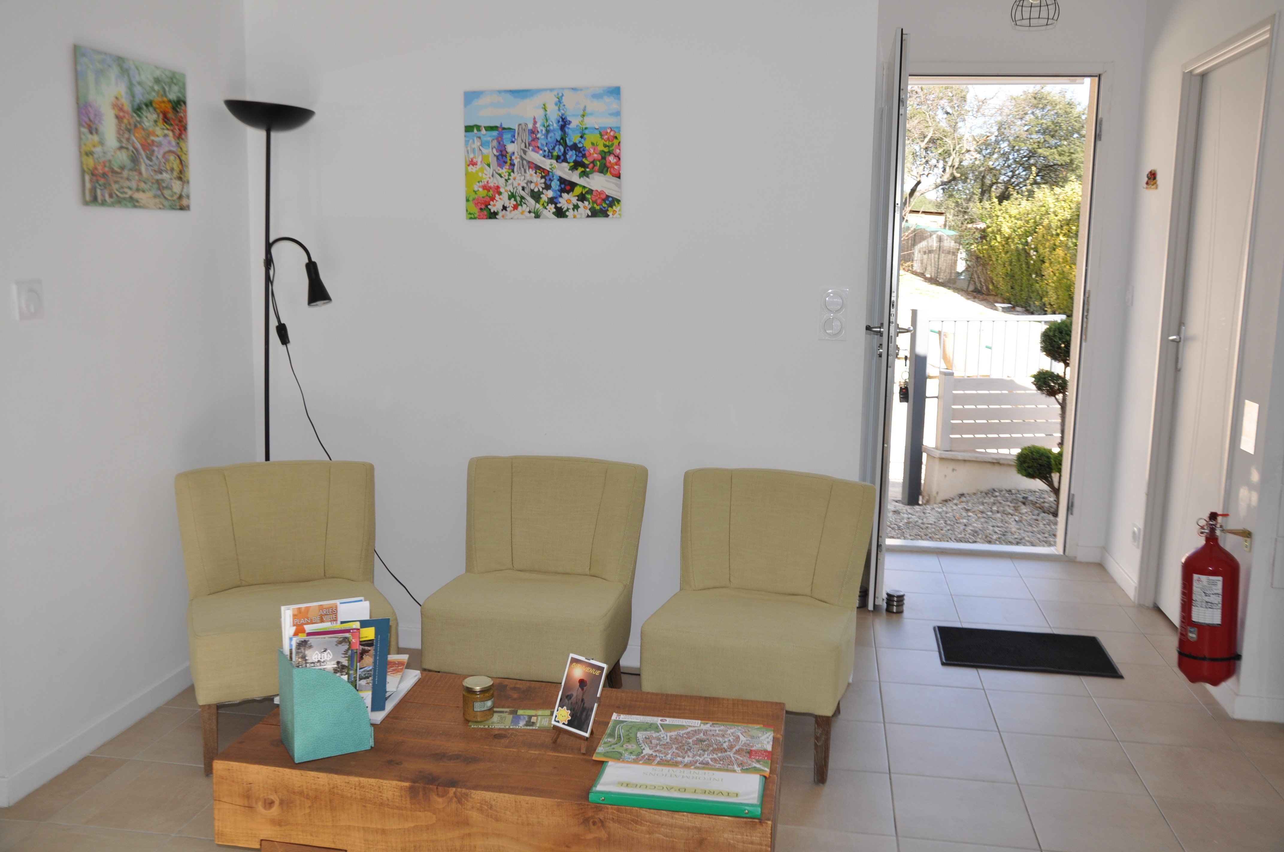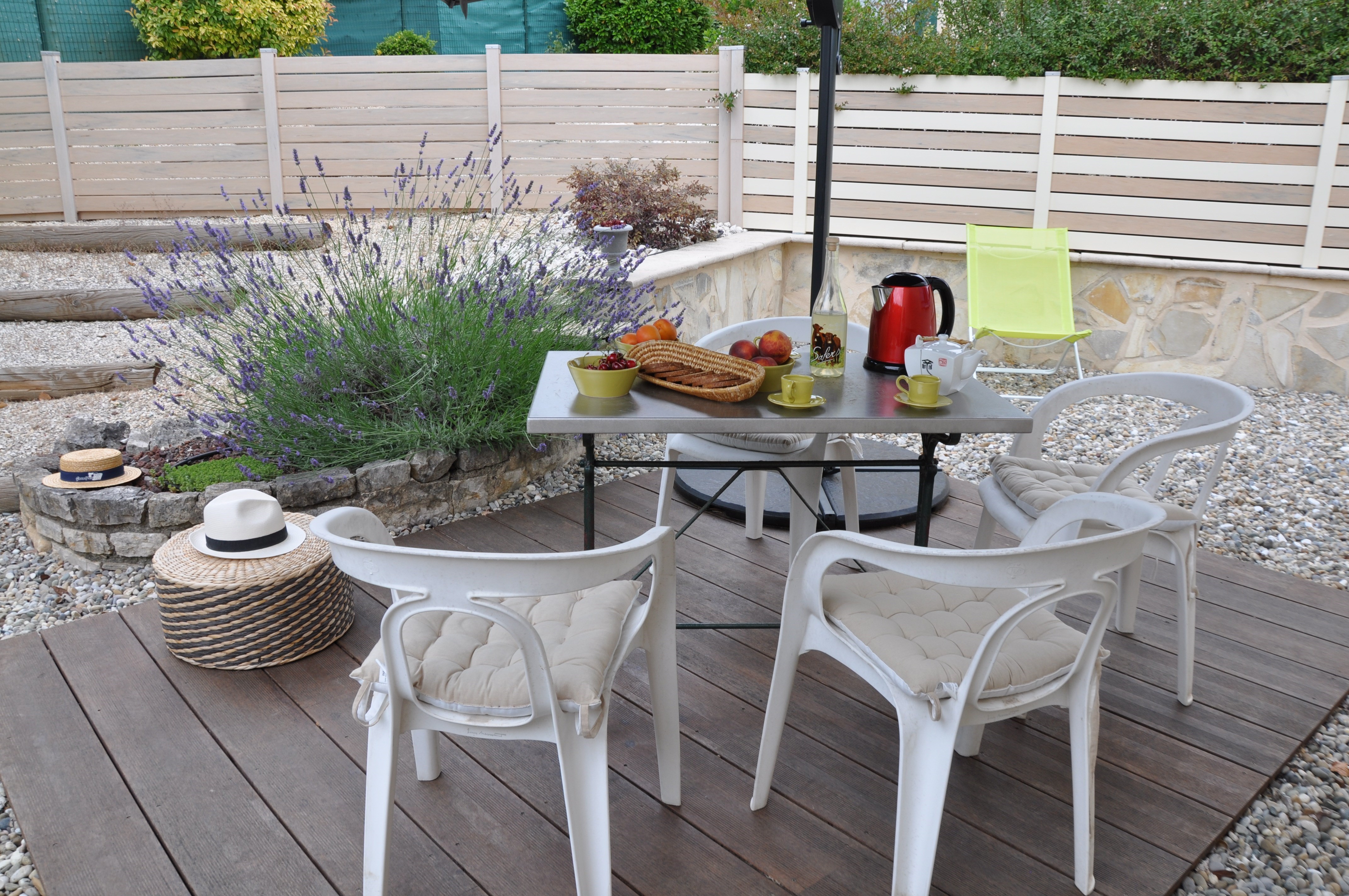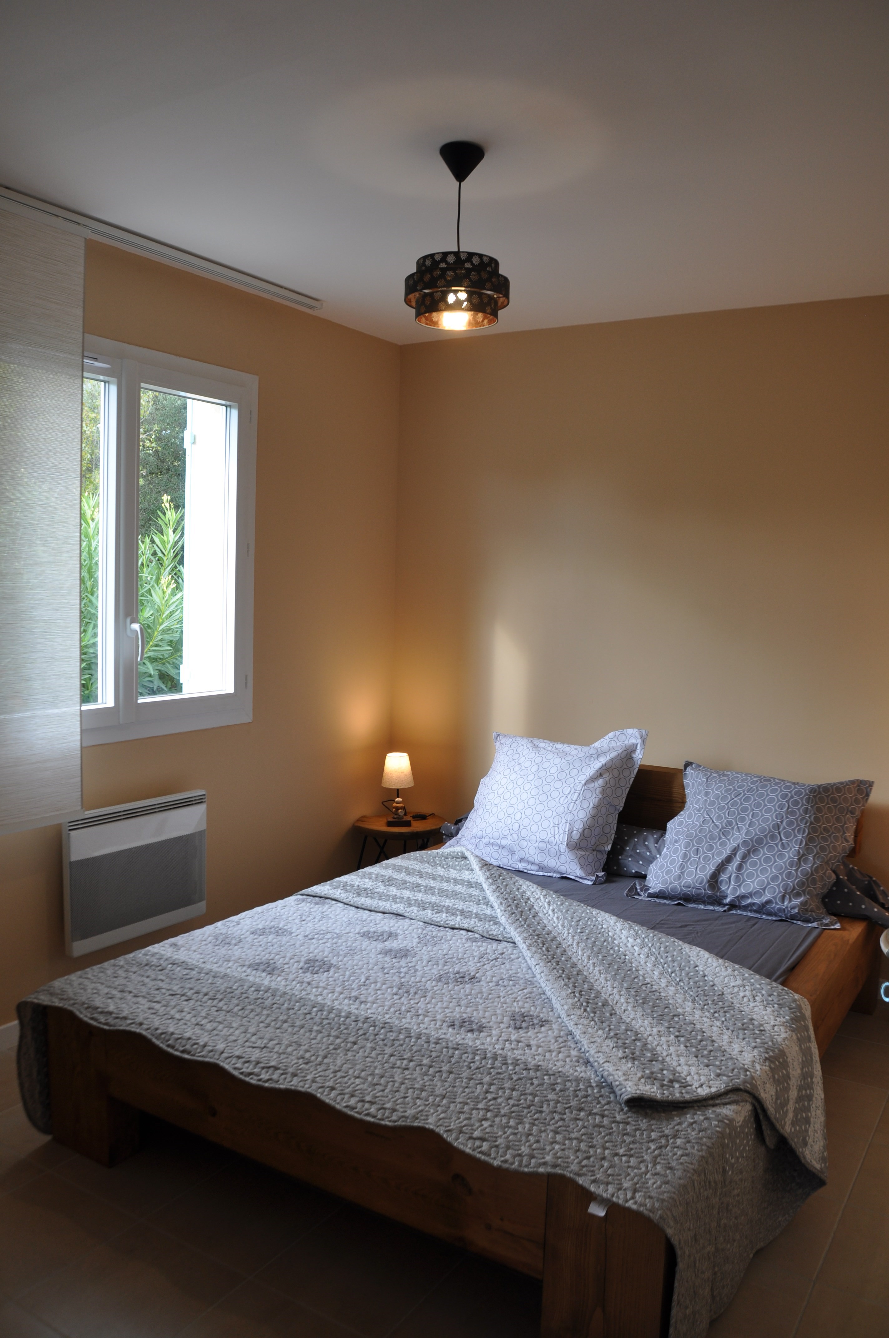 Près de la ville d’Uzès (4km), dans un village calme et paisible, maison contemporaine ossature bois 60 m² pour des vacances en famille ou entre amis.