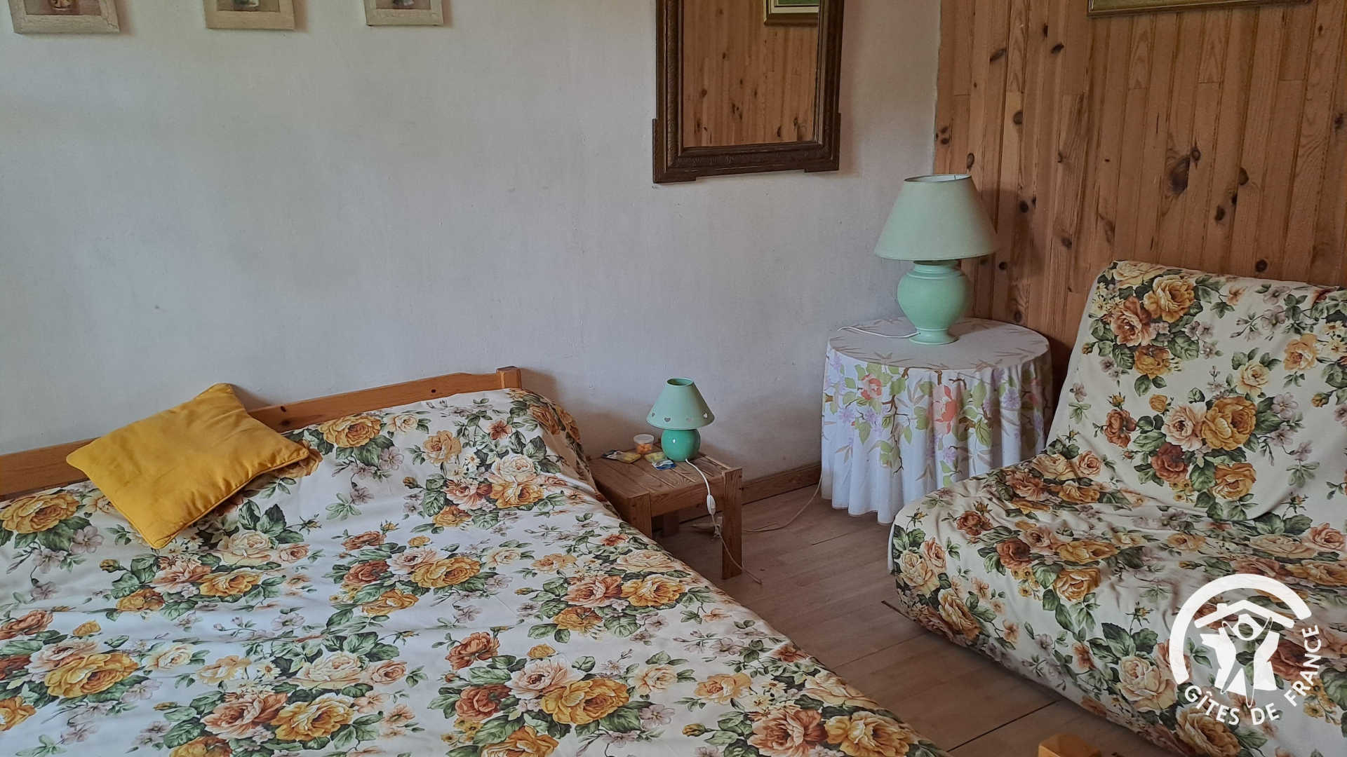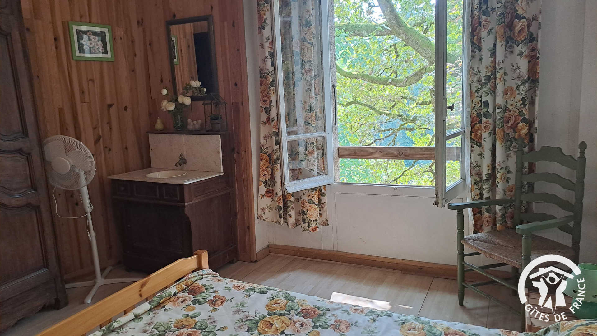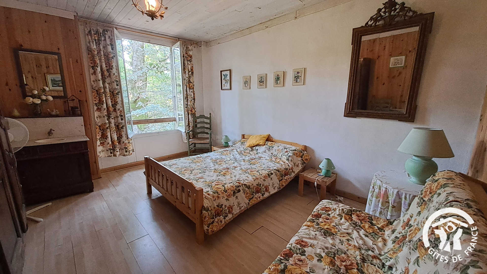 Gîte traditionnel et ancien, de confort simple, mitoyen à l’habitation de la propriétaire. Séjour avec coin-cuisine, deux chambres (deux lits doubles en 140×190, un lit simple, lit bébé), salle d’eau, wc. On accède à la seconde chambre et à la salle d’eau par l’extérieur, par la terrasse couverte, aussi le gîte n’est disponible que de mi-juin à début septembre. Chauffage d’appoint, cheminée (bois fourni).