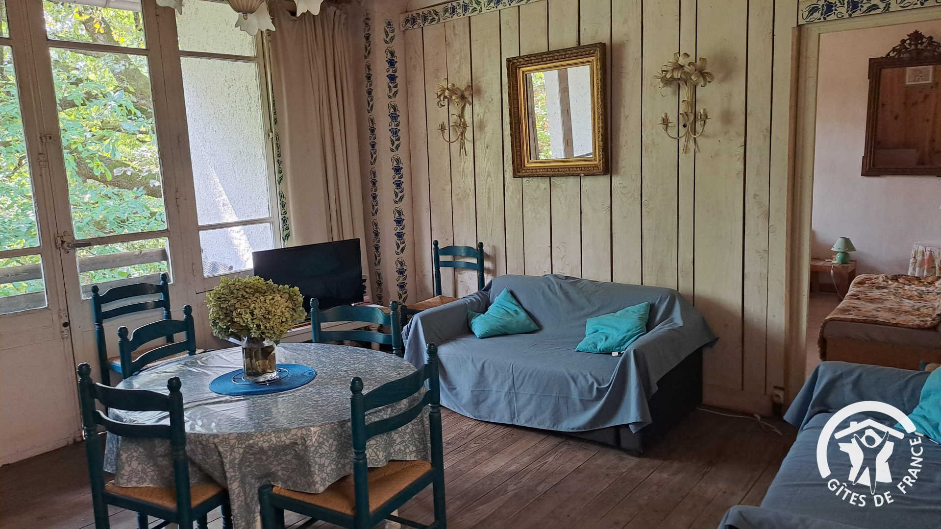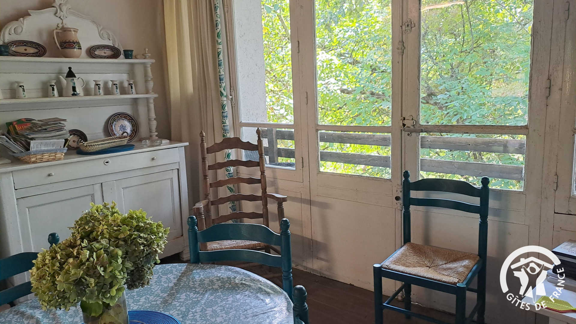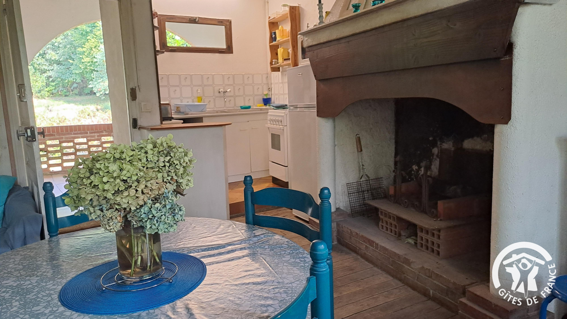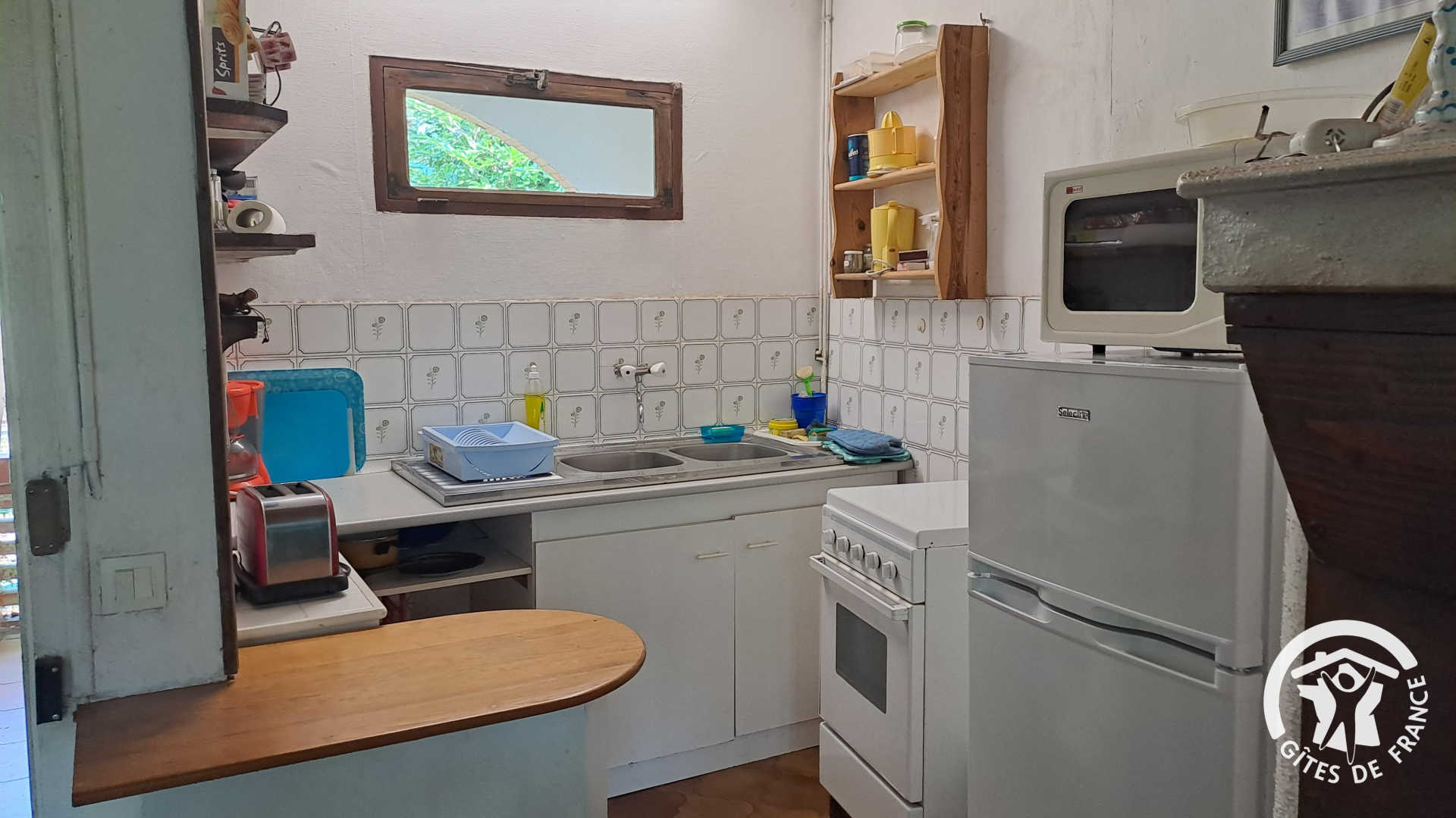Gîte traditionnel et ancien, de confort simple, mitoyen à l’habitation de la propriétaire. Séjour avec coin-cuisine, deux chambres (deux lits doubles en 140×190, un lit simple, lit bébé), salle d’eau, wc. On accède à la seconde chambre et à la salle d’eau par l’extérieur, par la terrasse couverte, aussi le gîte n’est disponible que de mi-juin à début septembre. Chauffage d’appoint, cheminée (bois fourni).
