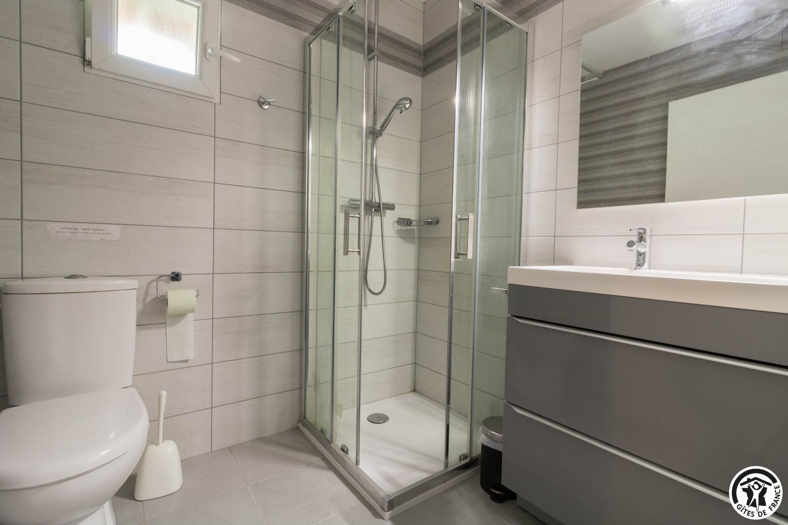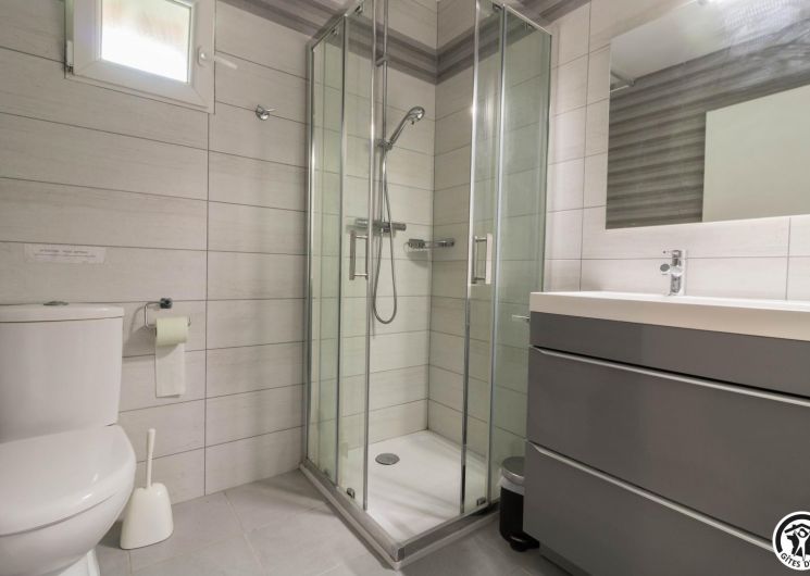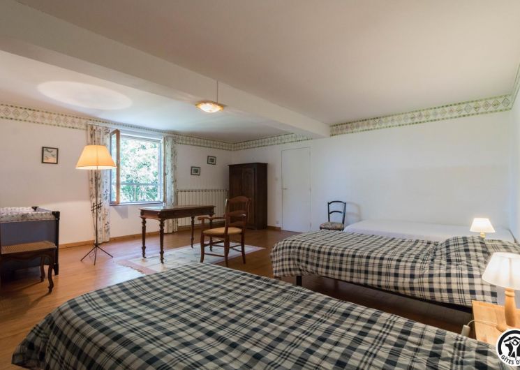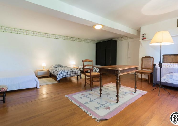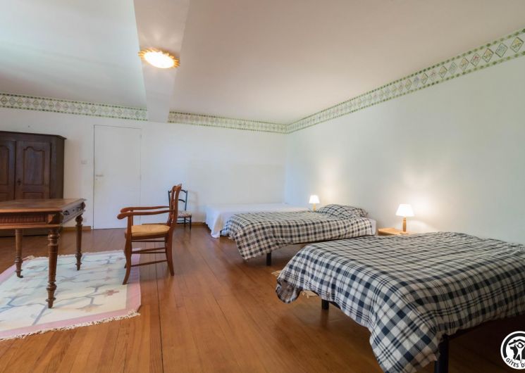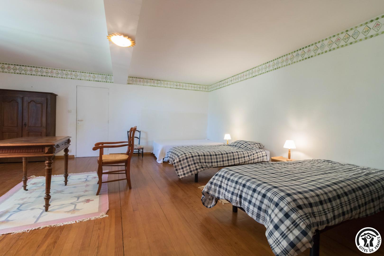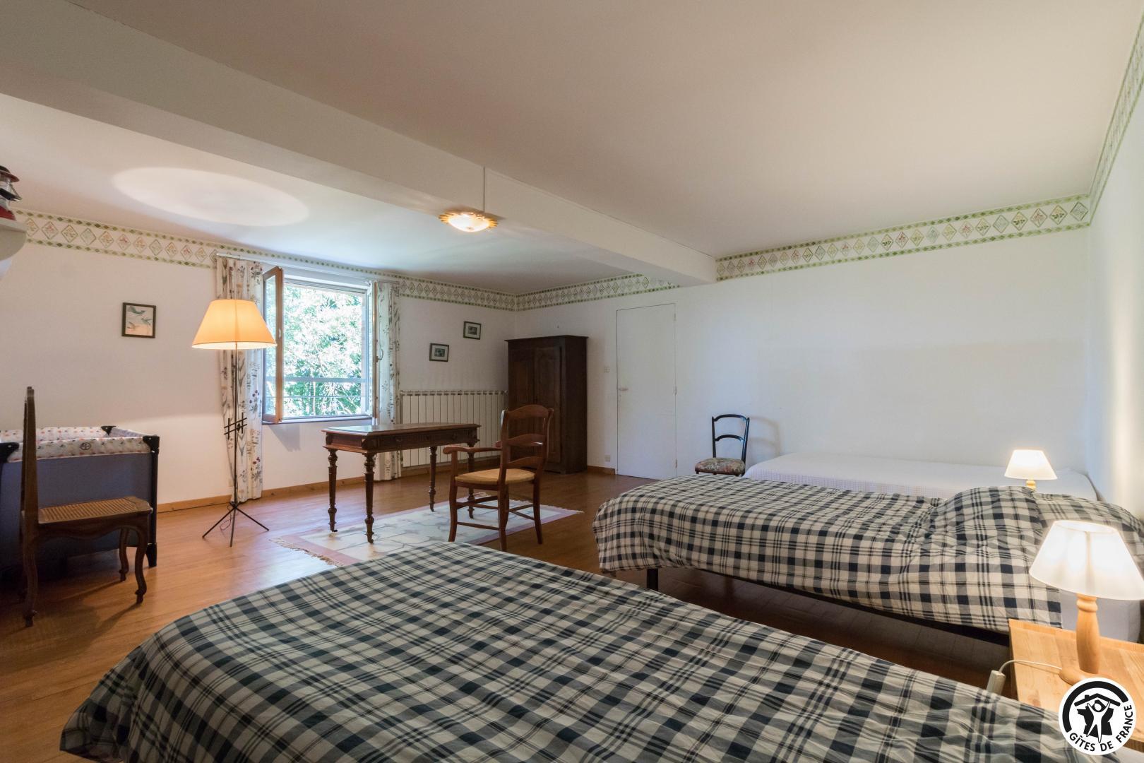 – A l’étage, 2 chambres prennent place (3 lits simples en 90*200cm)(1 lit double en 140*200cm) et une salle d’eau/WC.