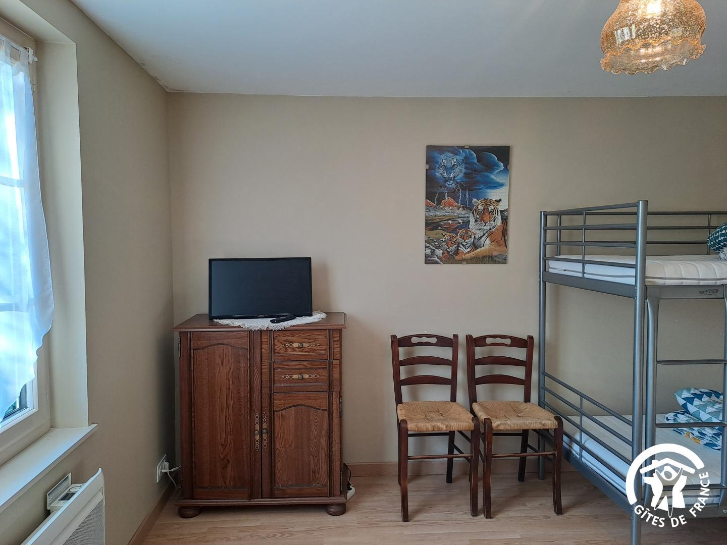 – La première dispose d’un lit 140×190 et de lits superposés 90×190, avec télévision