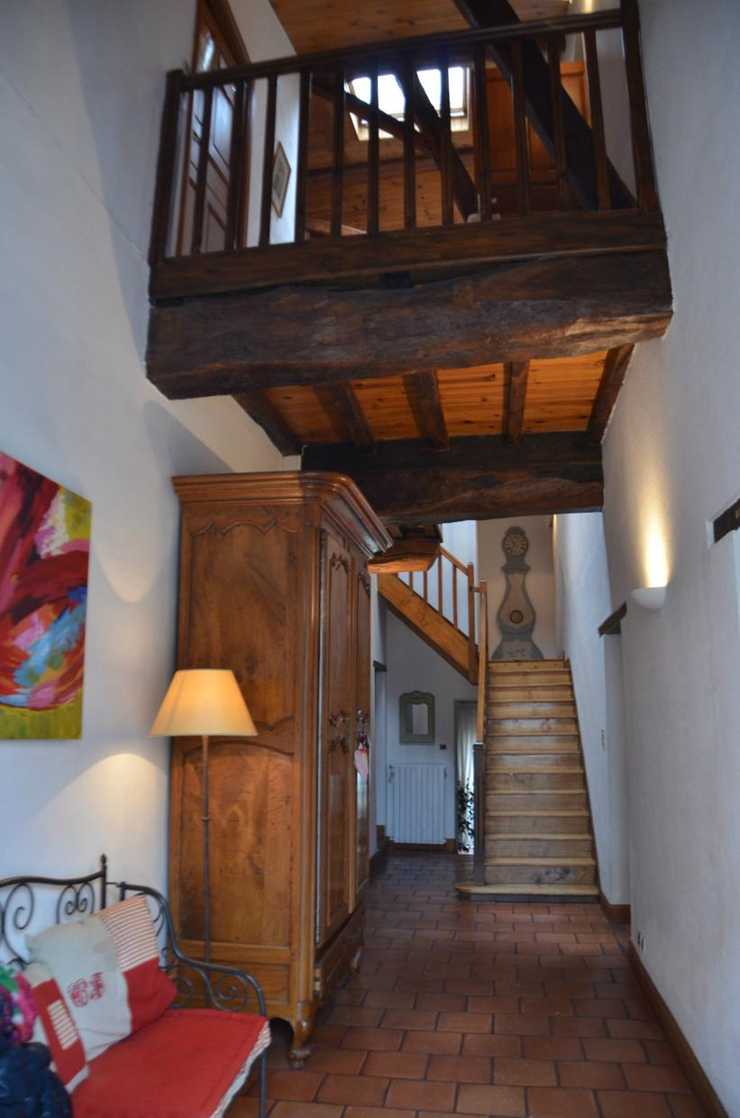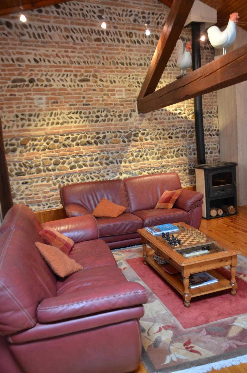 – à l’étage : salon (bibliothèque, poêle à bois), Chambre Suzon (1 lit 2 personnes en 140cm) avec salle d’eau/WC privative et communicante, Chambre Joséphine climatisée (1 lit 2 personnes en 160cm) avec salle de bains et WC séparé par une 1/2 cloison.