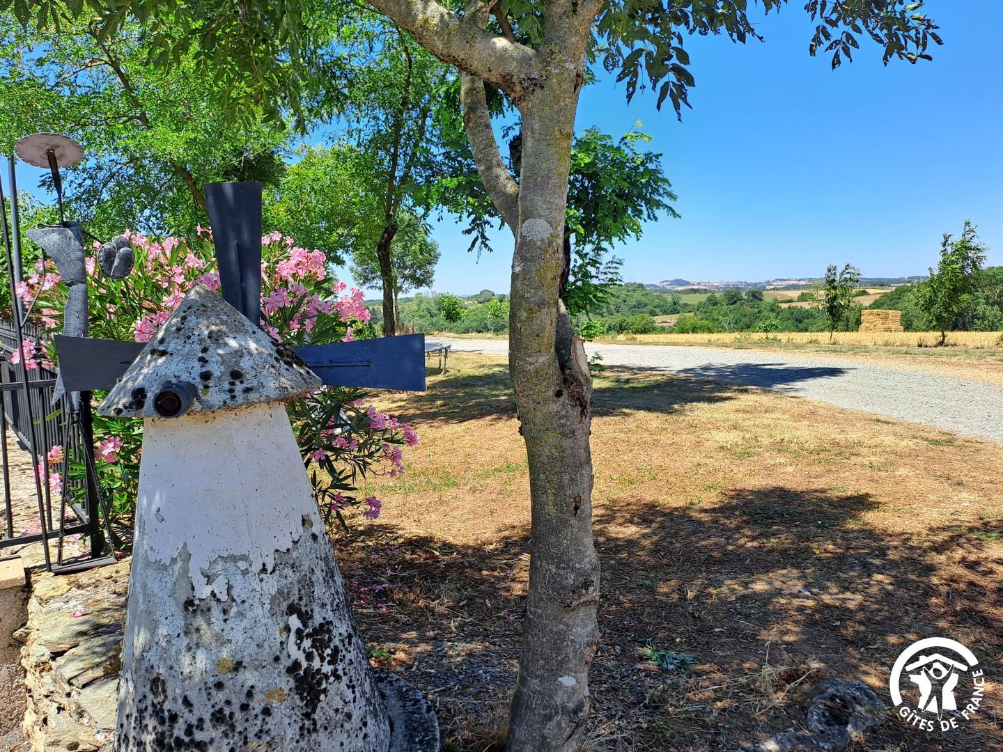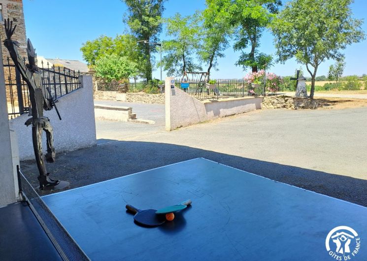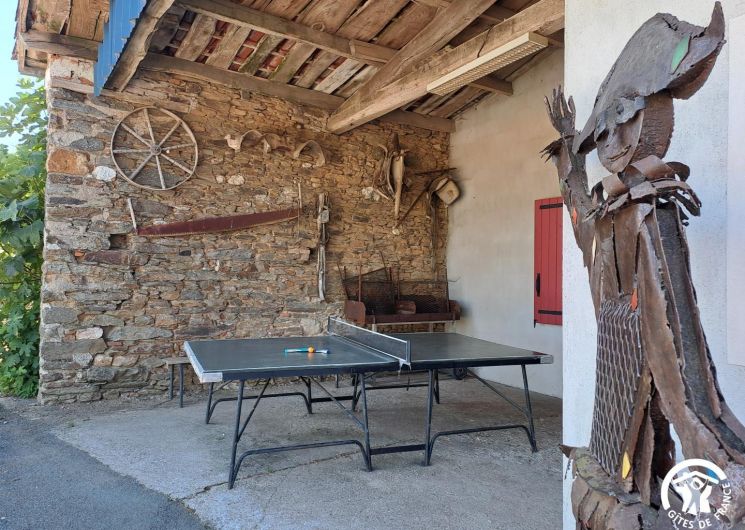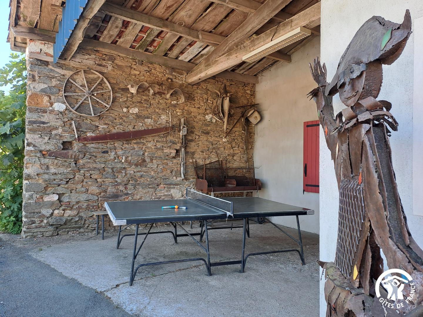 Un terrain de pétanque et une table de ping-pong complètent les équipements extérieurs. Enfin, vous croiserez les sculptures réalisées par Christian, le propriétaire des lieux, une touche artistique discrète qui donne au gîte une identité unique.