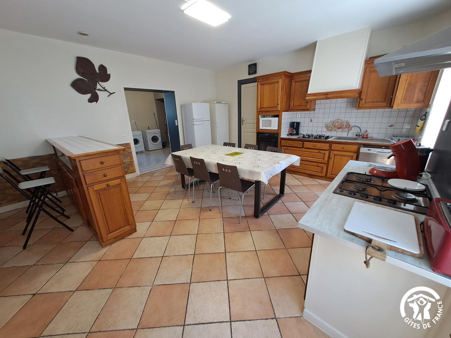 Le rez-de-chaussée s’organise autour d’une cuisine indépendante bien équipée, avec coin bar et accès à une buanderie.