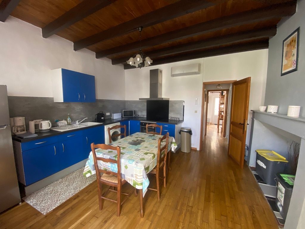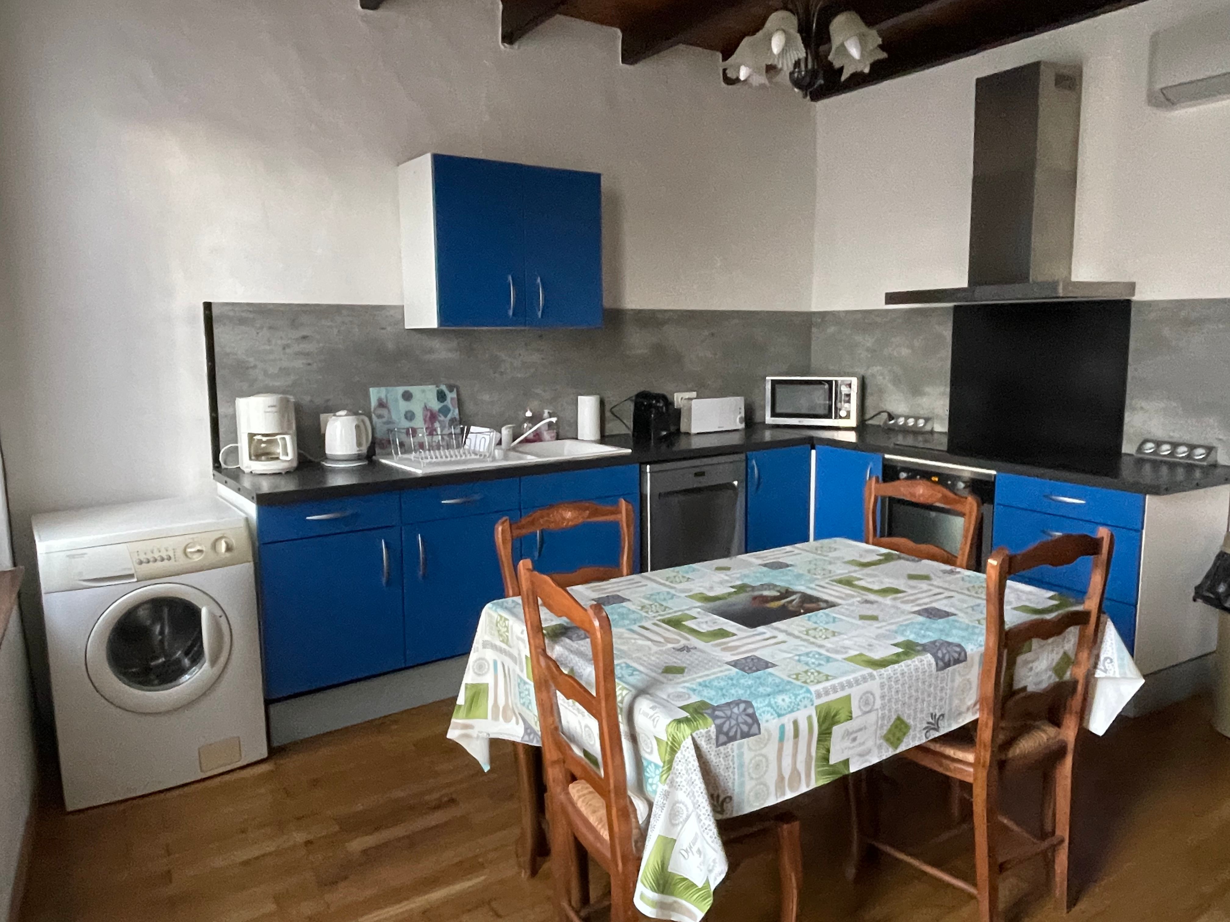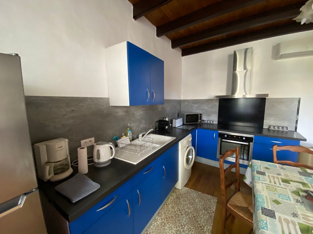Au rez-de-chaussée, le logement comprend une cuisine (éléments intégrés four, micro-ondes, plaque, réfrigérateur, congélateur lave-vaisselle, lave-linge, table chaises), un salon (2 canapés, fauteuils, table basse, TV), donnant accès à un patio à ciel ouvert avec table et chaises de jardin, 2 chaises transats, barbecue. Une salle de bains avec wc. Au 1er étage, une mezzanine, desservant 2 chambres dont 1 avec un accès à une salle d’eau avec wc et chacune avec 1 lit 2 places 140. Logement climatisé avec la wifi. Linge de lit de toilette et de maison fourni compris dans le prix. Parking public en face de la maison pour le stationnement.avec borne de recherche pour véhicule électrique