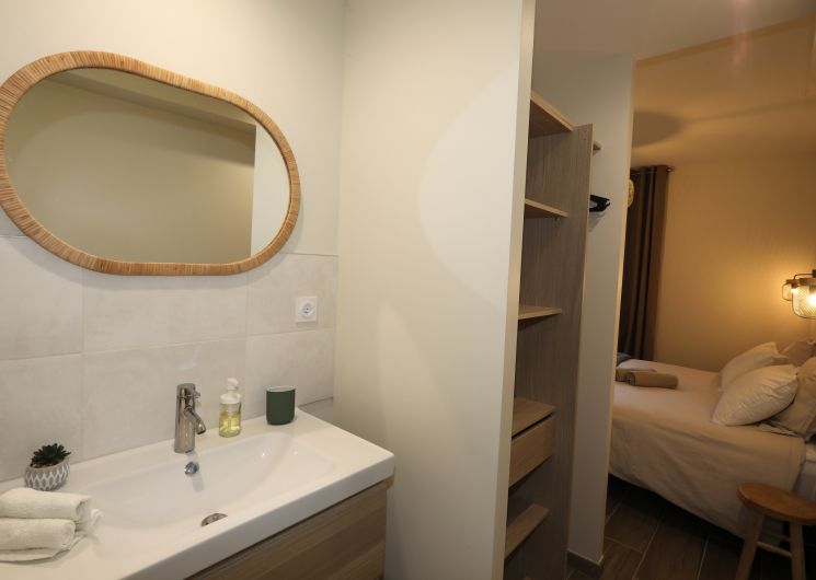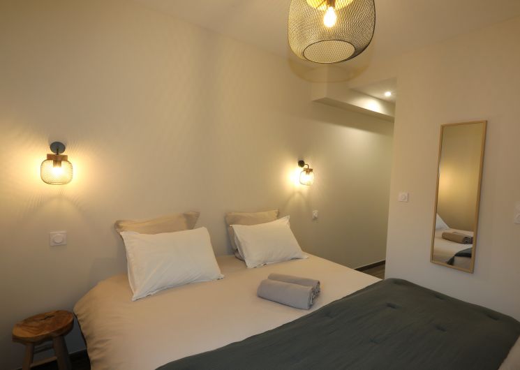 Appartement de 32 m² comprenant : Une pièce de vie lumineuse avec cuisine équipée ouverte sur un espace salon (TV), une chambre (2 lits en 90 pouvant être réunis pour vous offrir un lit king size en 180) et une salle d’eau (douche à l’italienne). La location bénéficie d’une terrasse.