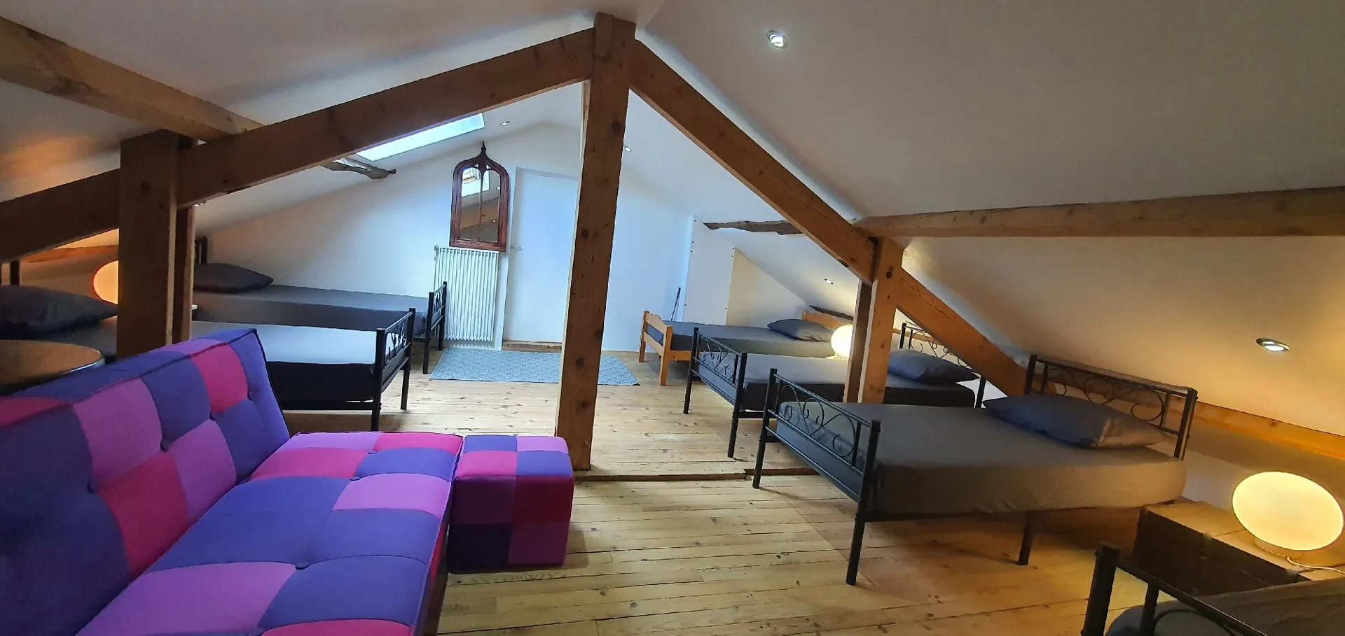 Chambres collectives jusqu’à 15 personnes en quatre chambres Plaid et oreillers fournis.