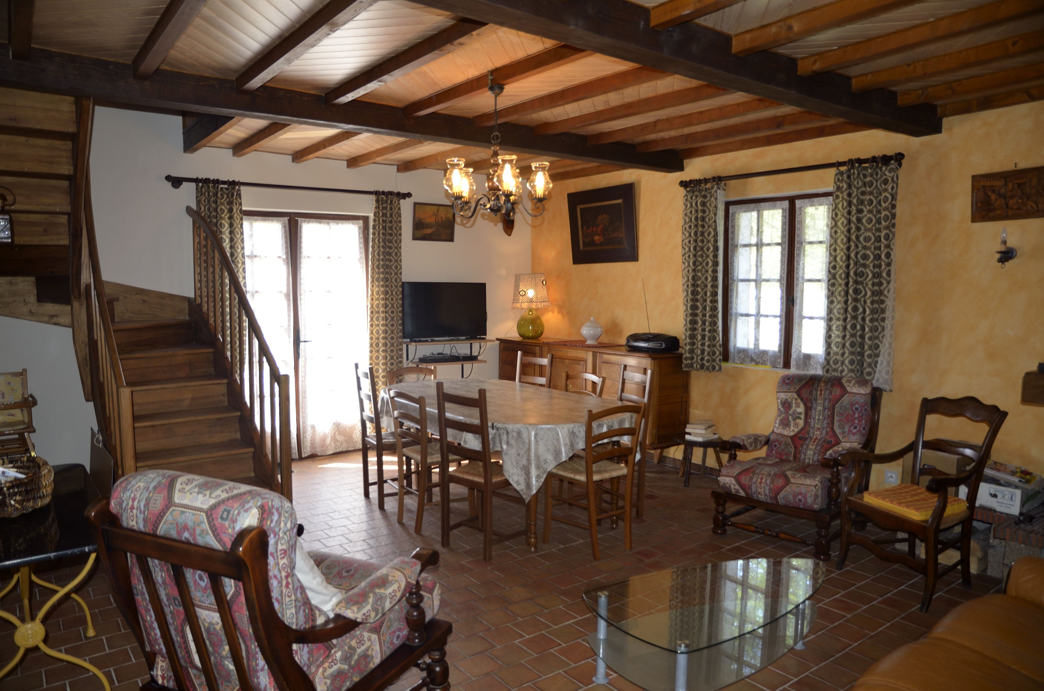 Bienvenue à La Parrot, notre maison de famille, pour des vacances nature dans un environnement très calme. Parfait pour se reposer et s’oxygéner. Maison individuelle non mitoyenne dans un grand pré boisé de plus de 2500 m², clôturé côté route, proche de la rivière. Les arrivées et les départs ne sont possibles que le samedi. Location pour 7 nuits minimum. Au rez-de-chaussée : hall d’entrée avec penderie ; cellier ; WC séparé ; salle de bains avec baignoire, double lavabo, WC assise haute et lave-linge ; 1 chambre avec 1 lit 140×190, commode et penderie ; cuisine ; salon avec cheminée et téléviseur écran plat. À l’étage : 1 chambre avec 2 lits jumeaux 80×190 séparables, armoire penderie ; 1 chambre avec 1 lit 140×190, 1lit 90×190 et 1 lit enfant 60×130 cm. Garage fermé avec un petit réfrigérateur indépendant permettant de stocker du matériel de sport ou de pêche.