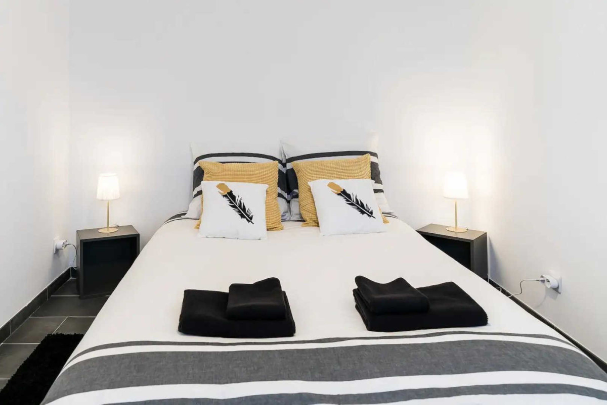 Ce charmant gîte situé au deuxième étage avec ascenseur, qui possède le Wifi, possède une grande pièce de vie décoré avec goût comprenant un salon et une cuisine ouverte. Canapé et fauteuils confortables vous permettront de passer d’agréables moments en famille ou entre amis devant la grande télévision du gîte. Côté cuisine, celle-ci est entièrement équipée : four, micro-ondes, lave-vaisselle, machine à café, bouilloire, réfrigérateur, le nécessaire de cuisine et de vaisselle… et possède un ilot central où vous pourrez déguster les repas soigneusement préparés par vos soins. Le gîte possède trois chambres pour deux personnes, avec chacune un lit double. La première chambre possède un lit 140×190 cm ainsi que d’un meuble de rangement et donne directement sur la première terrasse du gîte. La deuxième chambre dispose elle-aussi d’un lit 140×190 cm et d’un meuble de rangement, le tout toujours décoré avec soin. La troisième chambre dispose d’un lit 160×200 cm et de meubles de rangement, sublimée par des lumières et une ambiance agréable. La salle de bain est composée d’une douche à l’italienne, d’une double vasque avec grand miroir et d’une machine à laver. Enfin, le gîte a également deux terrasses-balcons pour profiter du soleil et de l’air de Montpellier, confortablement installé autour d’une table en bois élégante. Attractions touristiques : Plongez dans l’effervescence de la Place de la Comédie, véritable joyau animé au cœur de la ville. Flânez dans les ruelles pittoresques de la vieille ville, découvrez la cathédrale Saint-Pierre, et laissez-vous séduire par l’atmosphère enchanteresse des marchés locaux proposant des produits du terroir. Pour une immersion culturelle, le Musée Fabre abrite une collection exceptionnelle d’œuvres artistiques européennes, tandis que le quartier Antigone, avec son architecture contemporaine unique, offre une promenade captivante le long des berges du Lez.