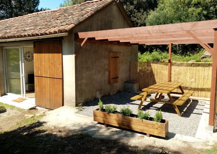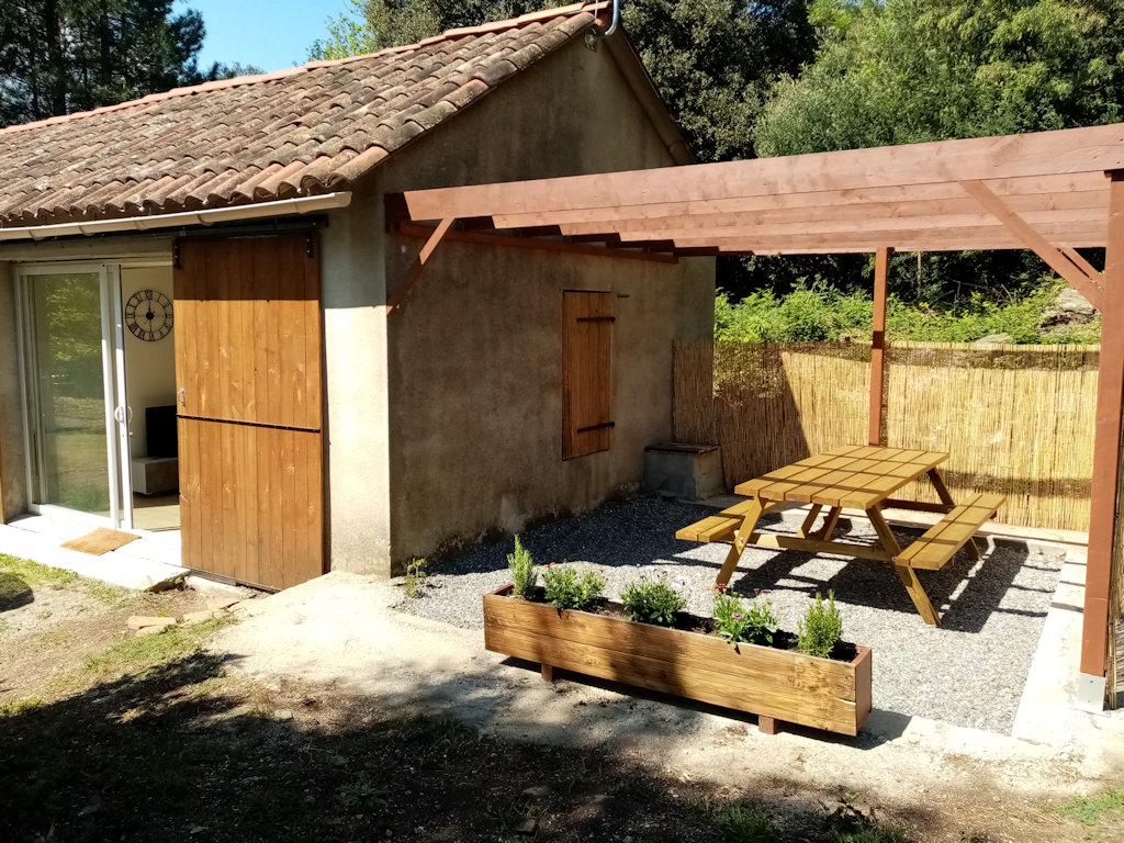 Au calme, au creux d’un halo de verdure, entre pins, chênes, vignes et oliviers, à quelques pas du prieuré de Saint-Julien se trouve l’ancienne pépinière dans les contreforts du MASSIF DU CAROUX , proche du village médiéval d’OLARGUES, au sein du PARC NATUREL REGIONAL DU HAUT LANGUEDOC. Située à environ 50 km au nord de Béziers, entre Saint-Pons-de-Thomières et Lamalou-les-Bains. Site idéal pour randonneurs aimant la nature, le calme et la tranquillité. Ancien bâtiment agricole, le gîte se divise en deux parties principales : – une partie jour éclairée par une grande baie – et une partie nuit comprenant une grande chambre ainsi qu’une salle de bain et d’un wc séparés. -à son côté, une petite roulotte Les prestations sportives et touristiques sont nombreuses (randonnée, canyoning, canoë-kayak, VTT, escalade, …)