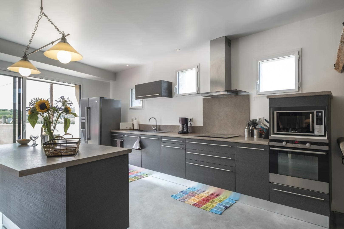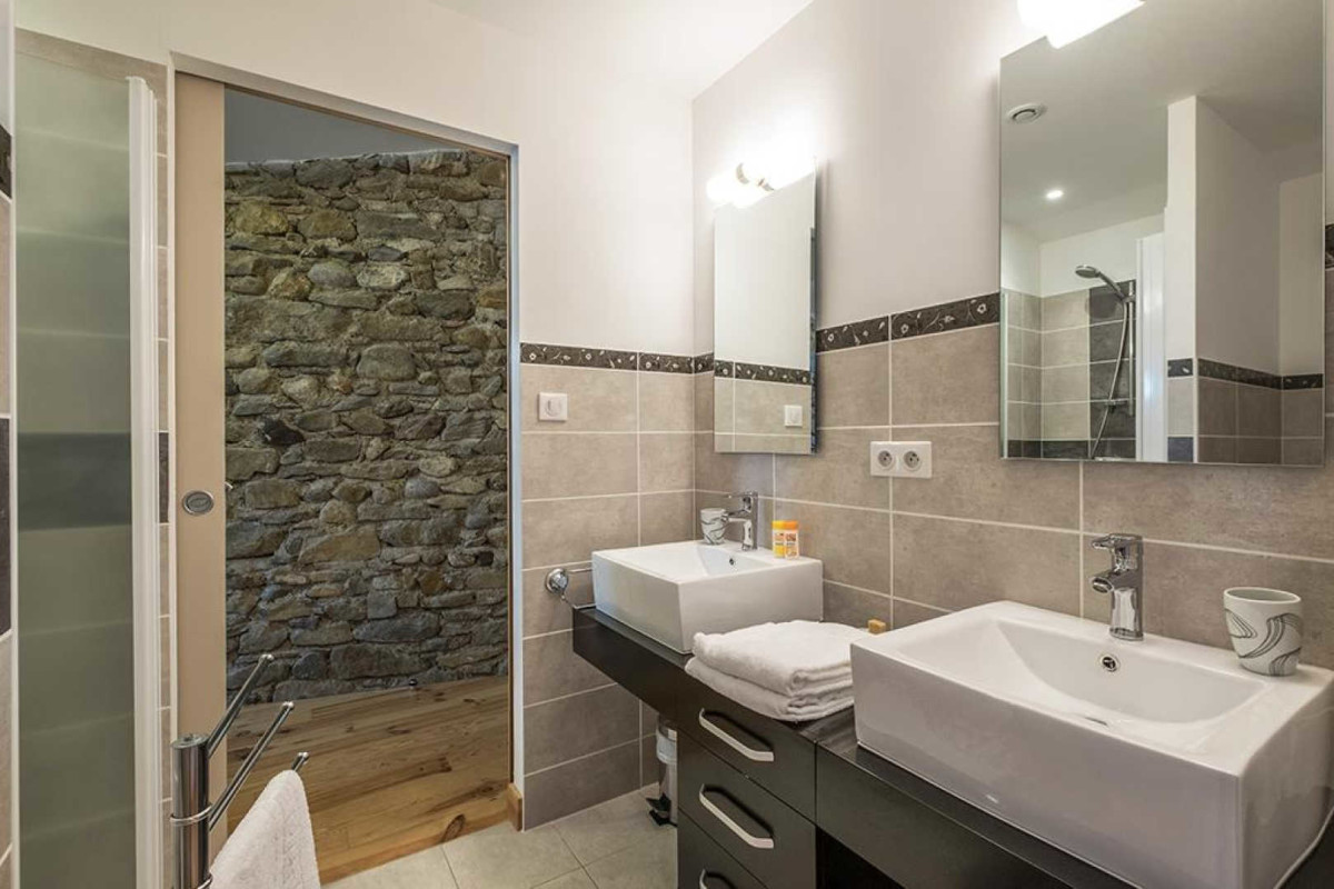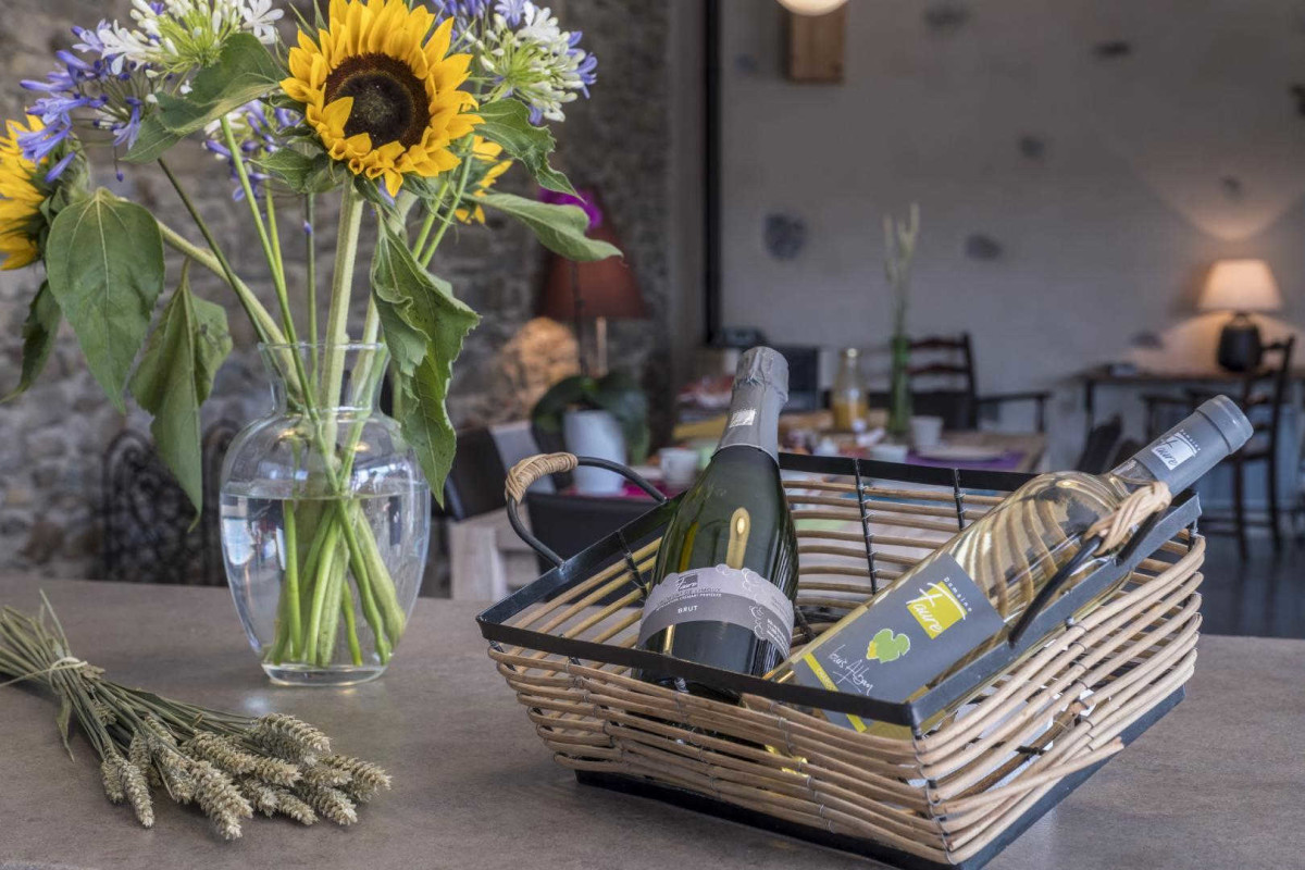 Ce joli gîte de charme est aménagé dans l’ancienne cave viticole rénovée de la famille. La bâtisse date du 19ème siècle, et la rénovation a su préserver la tradition et l’authenticité de la maison : murs en pierres apparentes, planchers en bois, anciennes cuves. Le gîte propose aussi tous les équipements de confort. Une grande terrasse de 60 m², organisée comme un patio, offre une vue sur les coteaux Limouxin et le vignoble. Les propriétaires, vignerons à la retraite, vous feront découvrir le domaine familial géré par leur fils et pourront vous initier à la dégustation. Espace lecture et jeux. De nombreux sites du Pays Cathare sont à visiter aux alentours : l’abbaye de Saint-Hilaire, la cité de Carcassonne, le village d’Alet les bains, sans oublier les sports d’eaux vives sur la Haute vallée de l’Aude. Sur place, piscine hors sol disponible à partir de mi-juin. Gîte comprenant au rez de chaussée: Séjour-cuisine et coin salon ouvrant sur la terrasse, salon TV, wc. Buanderie. A l’étage: 3 chambres dont 2 communicantes avec 2 lits pour 2 personnes et 2 lits pour 1 personne, 2 salles d’eau avec wc. Salon de jardin et plancha. Chauffage électrique et poele à bois