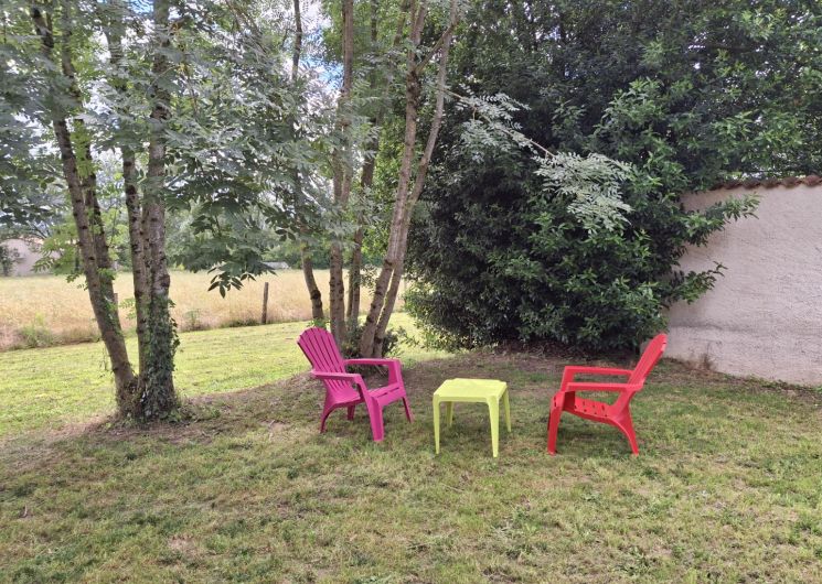 Extérieur : terrasse couverte avec barbecue et table de jardin. Environ 500m² de jardin autour du gîte, terrain clos et fermé avec portail. A l’avant du gîte, le jardin donne sur un champs agricole. Possibilité de se garer à quelques mètres du gîte, en bas du jardin.