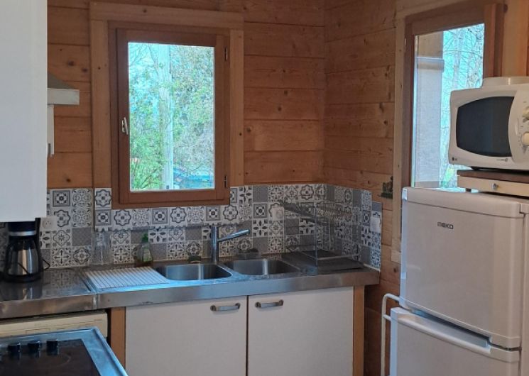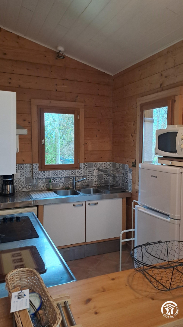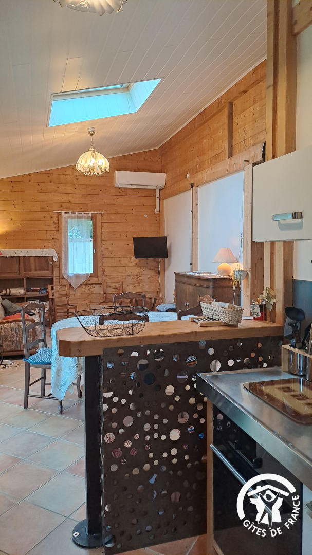 – cuisine ouverte, équipée : four, lave-vaisselle, réfrigérateur avec congélateur, cafetière à filtre, bouilloire, micro-ondes.