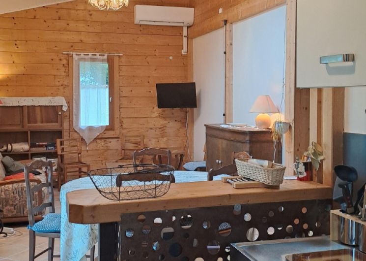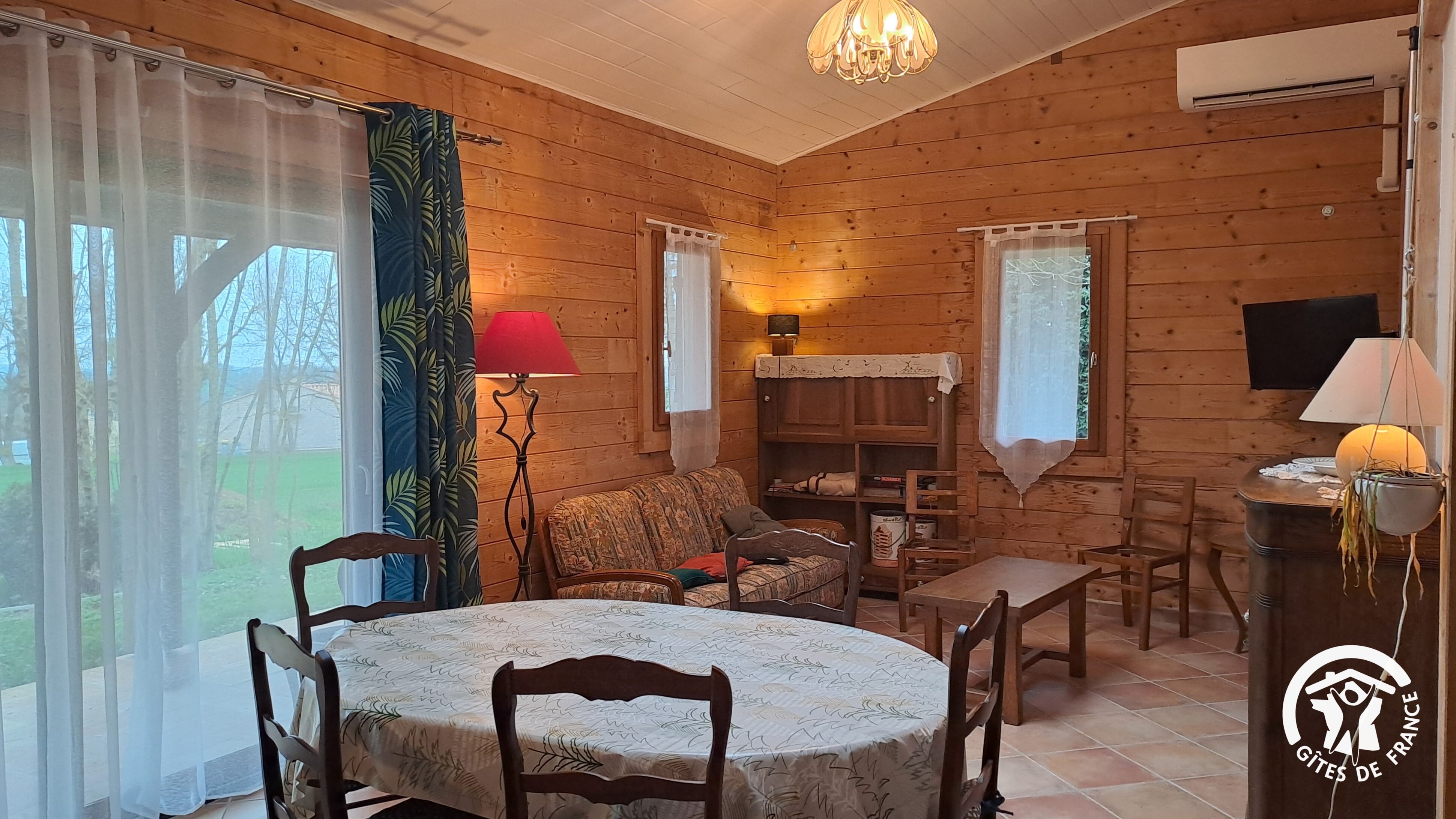 Maison atypique en bois, totalement indépendante, sur les hauteurs de la commune de Sainte-Gemme à Valats.