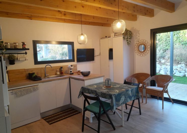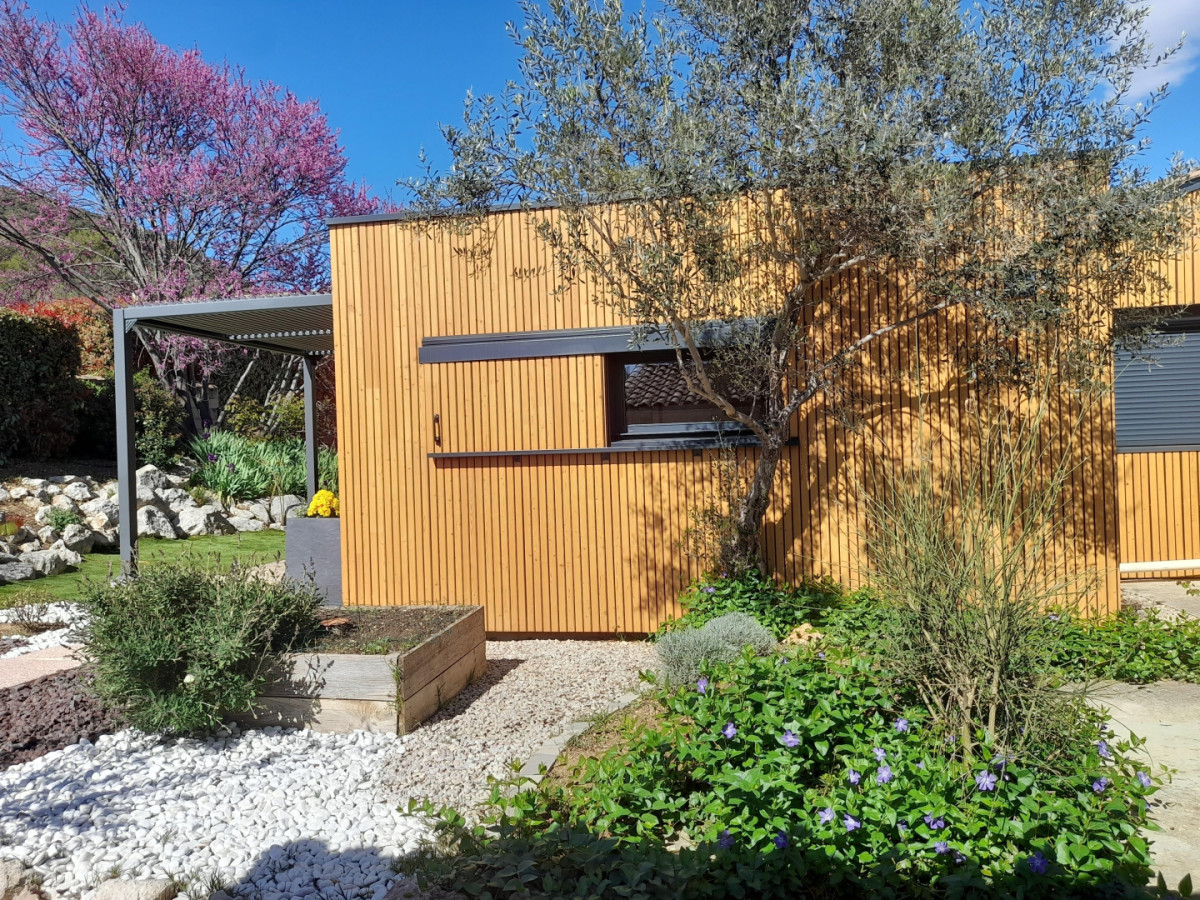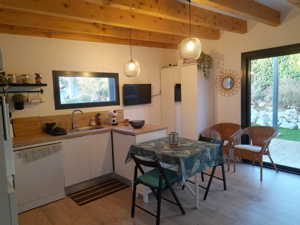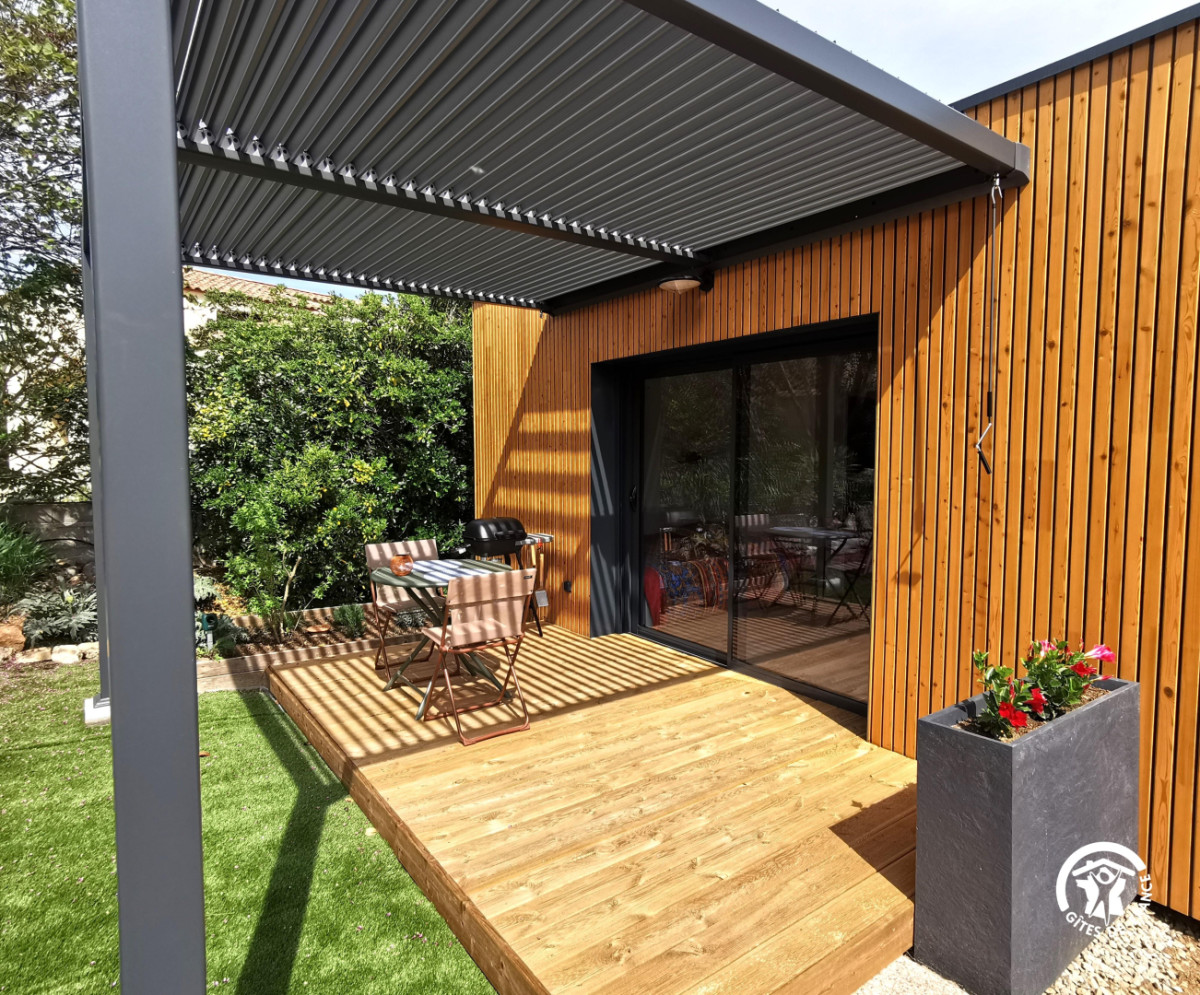 Cette maison d’architecte en bois, construite par les Compagnons du Devoir, a été entièrement pensée afin de vous offrir un cadre de vacances idéal. Vous pourrez profiter d’un jardin sans vis-à-vis ainsi que d’une terrasse ombragée avec un barbecue électrique. L’intérieur du gîte est moderne. Vous y trouverez une grande pièce à vivre avec une cuisine neuve et toute équipée: lave-vaisselle, four, micro-ondes, réfrigérateur, congélateur.. Vous disposerez d’un lit confortable en 160x200cm. La salle de bain est elle aussi neuve et équipée d’une douche à l’italienne, d’un porte- serviettes et d’un sèche cheveux. Pour votre confort, le gîte est équipée d’un télévision, d’une connexion Wifi, d’une machine à laver et de la climatisation. Aussi, le gîte est loué toutes charges incluses, linge de lit et de toilette fournis. Une place de stationnement couverte ainsi qu’une borne de recharge électrique sont à votre disposition (refacturation). Classement meublé de tourisme : 3 étoiles. ATTRAITS TOURISTIQUES Vailhauquès est un petit village charmant située dans le sud de la France, il est idéalement situé entre mer et montagnes. A seulement quelques kilomètres, vous pourrez découvrir la ville historique de Montpellier, ses nombreux sites historiques ainsi que ses commerces et restaurants ( notamment la Place de la Comédie, la cathédrale Saint-Pierre, le Jardin des Plantes et le musée Fabre). Les célèbres plages de la Méditerranée sont situées à seulement une vingtaine de minutes. Les plages les plus proches sont celles de Palavas-les-Flots et des Aresquiers à Frontignan. La ville portuaire de Sète se situe à environ 30min. Vailhauquès est un point de départ stratégique pour également découvrir l’arrière pays, avec les gorges de l’Hérault, les nombreuses grottes et randonnées: Saint Guilhem le désert, le Pic-Saint-loup, l’Abbaye de Valmagne, canoë-Kayak à Laroque La Camargue, cette région naturelle et préservée est quant à elle située à environ une heure de route.