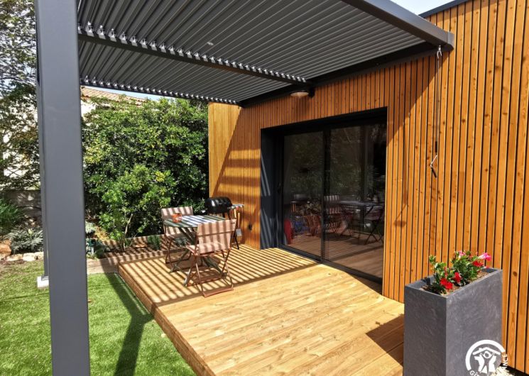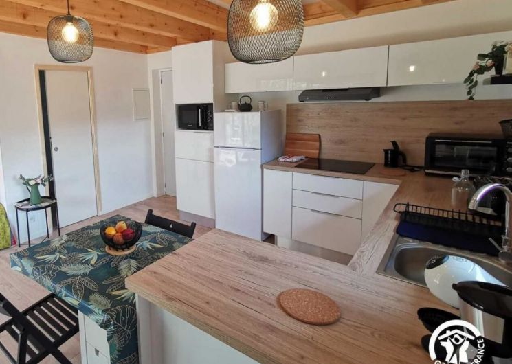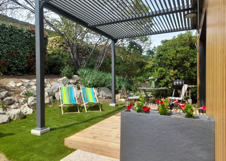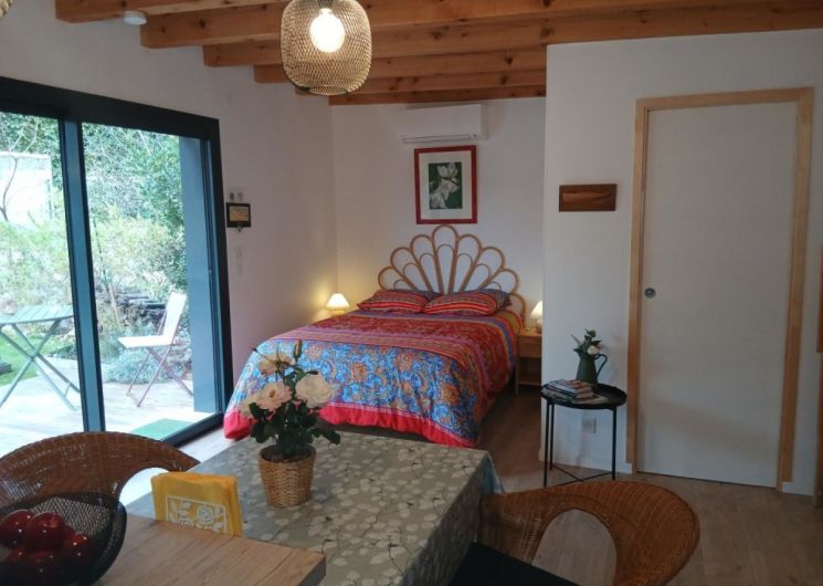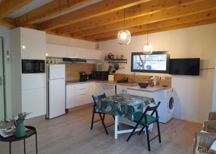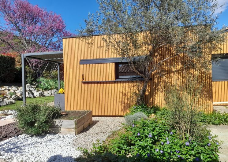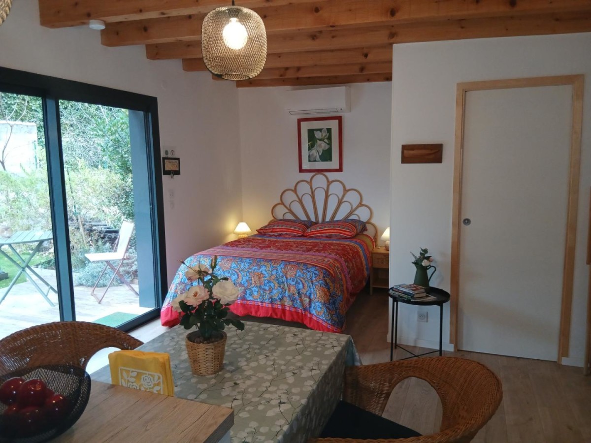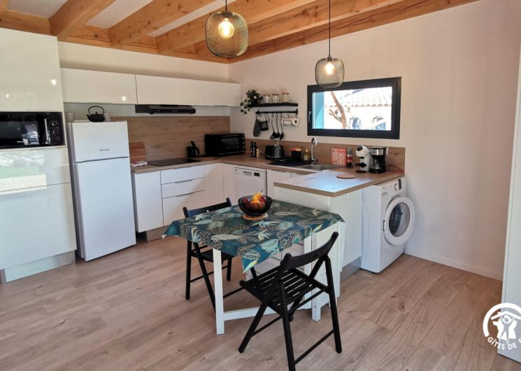 Cette maison d’architecte en bois, construite par les Compagnons du Devoir, a été entièrement pensée afin de vous offrir un cadre de vacances idéal. Vous pourrez profiter d’un jardin sans vis-à-vis ainsi que d’une terrasse ombragée avec un barbecue électrique. L’intérieur du gîte est moderne. Vous y trouverez une grande pièce à vivre avec une cuisine neuve et toute équipée: lave-vaisselle, four, micro-ondes, réfrigérateur, congélateur.. Vous disposerez d’un lit confortable en 160x200cm. La salle de bain est elle aussi neuve et équipée d’une douche à l’italienne, d’un porte- serviettes et d’un sèche cheveux. Pour votre confort, le gîte est équipée d’un télévision, d’une connexion Wifi, d’une machine à laver et de la climatisation. Aussi, le gîte est loué toutes charges incluses, linge de lit et de toilette fournis. Une place de stationnement couverte ainsi qu’une borne de recharge électrique sont à votre disposition (refacturation). Classement meublé de tourisme : 3 étoiles. ATTRAITS TOURISTIQUES Vailhauquès est un petit village charmant située dans le sud de la France, il est idéalement situé entre mer et montagnes. A seulement quelques kilomètres, vous pourrez découvrir la ville historique de Montpellier, ses nombreux sites historiques ainsi que ses commerces et restaurants ( notamment la Place de la Comédie, la cathédrale Saint-Pierre, le Jardin des Plantes et le musée Fabre). Les célèbres plages de la Méditerranée sont situées à seulement une vingtaine de minutes. Les plages les plus proches sont celles de Palavas-les-Flots et des Aresquiers à Frontignan. La ville portuaire de Sète se situe à environ 30min. Vailhauquès est un point de départ stratégique pour également découvrir l’arrière pays, avec les gorges de l’Hérault, les nombreuses grottes et randonnées: Saint Guilhem le désert, le Pic-Saint-loup, l’Abbaye de Valmagne, canoë-Kayak à Laroque La Camargue, cette région naturelle et préservée est quant à elle située à environ une heure de route.