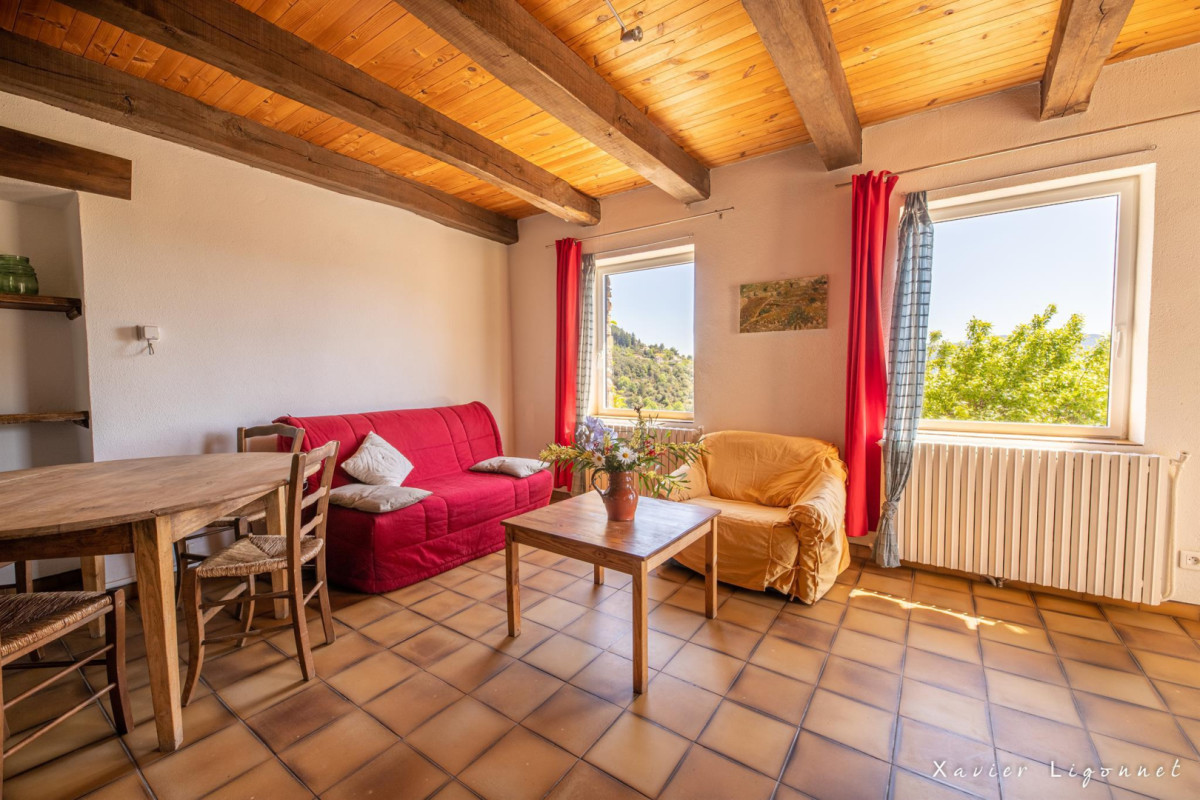 Gîte situé dans un ensemble de bâtiments anciens rénovés. 1er Etage : Cuisine, séjour/salon, salle de bains, wc. 2ème Etage : Chambre 1 (2 lits 90×190 cm), Chambre 2 (lit 90×190 cm), Chambre 3 (2 lits 90×190 cm). Climatisation réversible. Frais d’électricité inclus dans la limite de 8 kw/h par jour, forfait ménage fin de séjour: 50€. Bois de chauffage en supplément. Location de draps : 20€. Matériel bébé sur demande. Profitez de l’espace extérieur : Terrasse (11m²), salon de jardin, piscine (14×7 m) clôturée, commune (ouverture début juin/fin septembre). 2 autres gîtes sur le domaine. Superficie de l’hébergement : 80 m². ATTRAITS TOURISTIQUES : A 3km GR 7, Parc Naturel du Haut Languedoc, proche : Massif du Caroux, Monts Espinouse, gorges d’Héric et de Colombières. Lacs (Laouzas, Raviège), Saut de Vesoles, rivières Orb et Jaur, canoé sur l’Orb à 3 km. Concerts au Prieuré de St-Julien, canyoning, VTT.