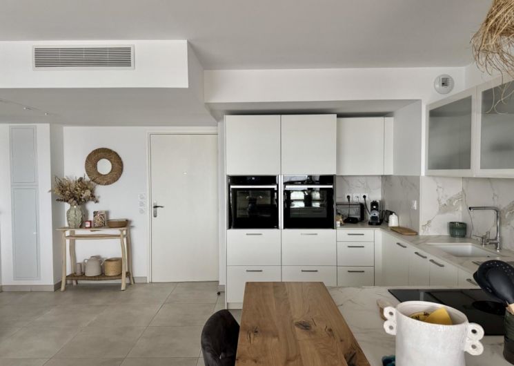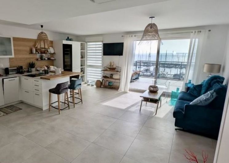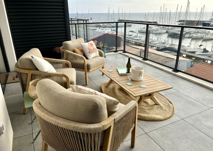 À Marseillan, « La Petite Voile » vous accueille au troisième étage d’une résidence sécurisée, dans un environnement urbain paisible au bord de l’étang de Thau. Depuis votre terrasse, vous admirerez le port et les reflets changeants de l’eau, un cadre idéal pour découvrir les traditions maritimes locales. Entre les parcs à huîtres, les dégustations chez les conchyliculteurs et l’ambiance authentique du littoral, vous profitez d’un séjour tourné vers le terroir. Sète, Bouzigues et leurs marchés typiques se trouvent à quelques minutes, tandis que le Canal du Midi, classé au patrimoine mondial de l’UNESCO, vous invite à de belles balades ombragées. Les villes d’Agde, Pézenas et Béziers complètent vos découvertes entre patrimoine, animations estivales et atmosphère méditerranéenne. L’appartement, conçu pour deux personnes, propose un bel espace de vie moderne, dans l’ambiance bord de mer. La pièce principale rassemble un salon confortable avec télévision, une cuisine ouverte entièrement équipée (four, micro-ondes, deux fours, réfrigérateur, congélateur, lave-vaisselle, bouilloire, machine à café) et un coin repas, l’ensemble ouvrant sur la terrasse offrant une superbe vue sur le port et l’étang de Thau. La chambre, spacieuse, offre tout le confort nécessaire pour un séjour à deux : • Chambre : lit double 160×200, salle d’eau privative avec douche et sèche-cheveux. La terrasse de 20m2 est aménagée avec un salon de jardin pour profiter pleinement de la vue exceptionnelle. Deux parkings privatifs gratuits à l’intérieur de la résidence facilitent vos déplacements. Vous disposerez également de la climatisation, d’un WC indépendant et d’une machine à laver, des atouts appréciables pour un séjour en bord de mer. Hébergement non-fumeur. Points forts : une vue exceptionnelle depuis une grande terrasse, un appartement très bien situé et très bien équipé (avec des places de parking), le tout dans une ambiance moderne de bord de mer !
