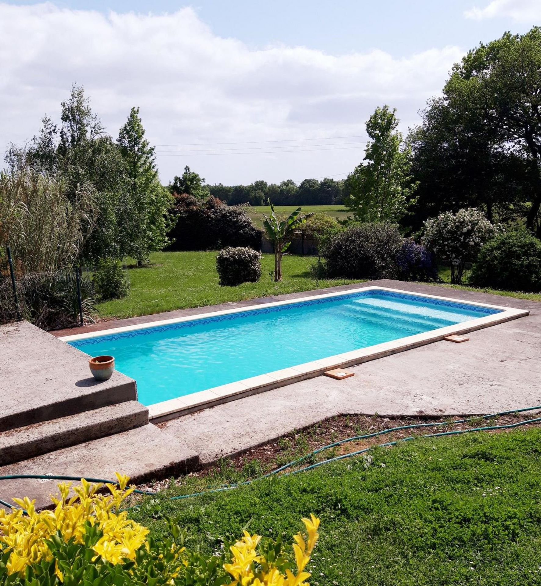 À quelques mètres seulement (sur le terrain des propriétaires), une piscine au sel, sécurisée par une alarme, est à votre disposition et partagée avec les propriétaires. La piscine est accessible de 9h00 à 11h00 et de 14h00 à 17h00.