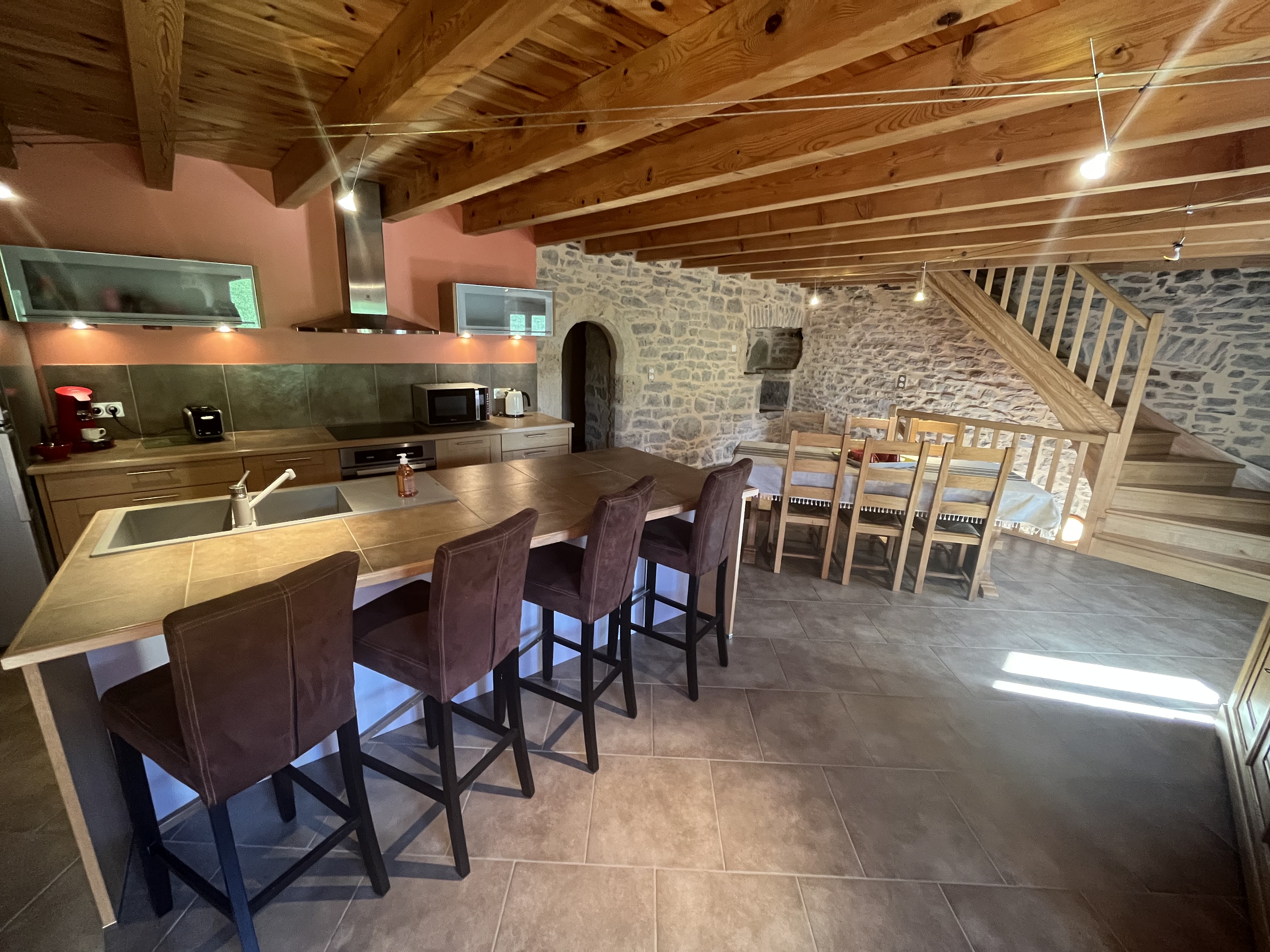 Dans ce petit coin de paradis, proche de la Canourgue, où le calme et la nature font tout le charme du lieu dit Le Montet, ancien corps de ferme rénové comportant deux gîtes. Au rez de chaussée : Un séjour/salle à manger avec télévision, 3 marches mènent à la cuisine équipée (lave-linge, micro-ondes, régrigérateur, lave-vaisselle, place induction, four). Une chambre avec 1 lit superposé et une télévision. A l’étage : Une salle de bain, un WC, 1 chambre avec 1 lit en 140 et 1 avec 2 lits en 90 ou 1 lit en 180 et salle d’eau privative. Chaudière à plaquette de bois.. Vous serez agréablement chauffés toute l’année grâce à une chaudière à plaquettes de bois. Nous serons là pour vous accueillir.