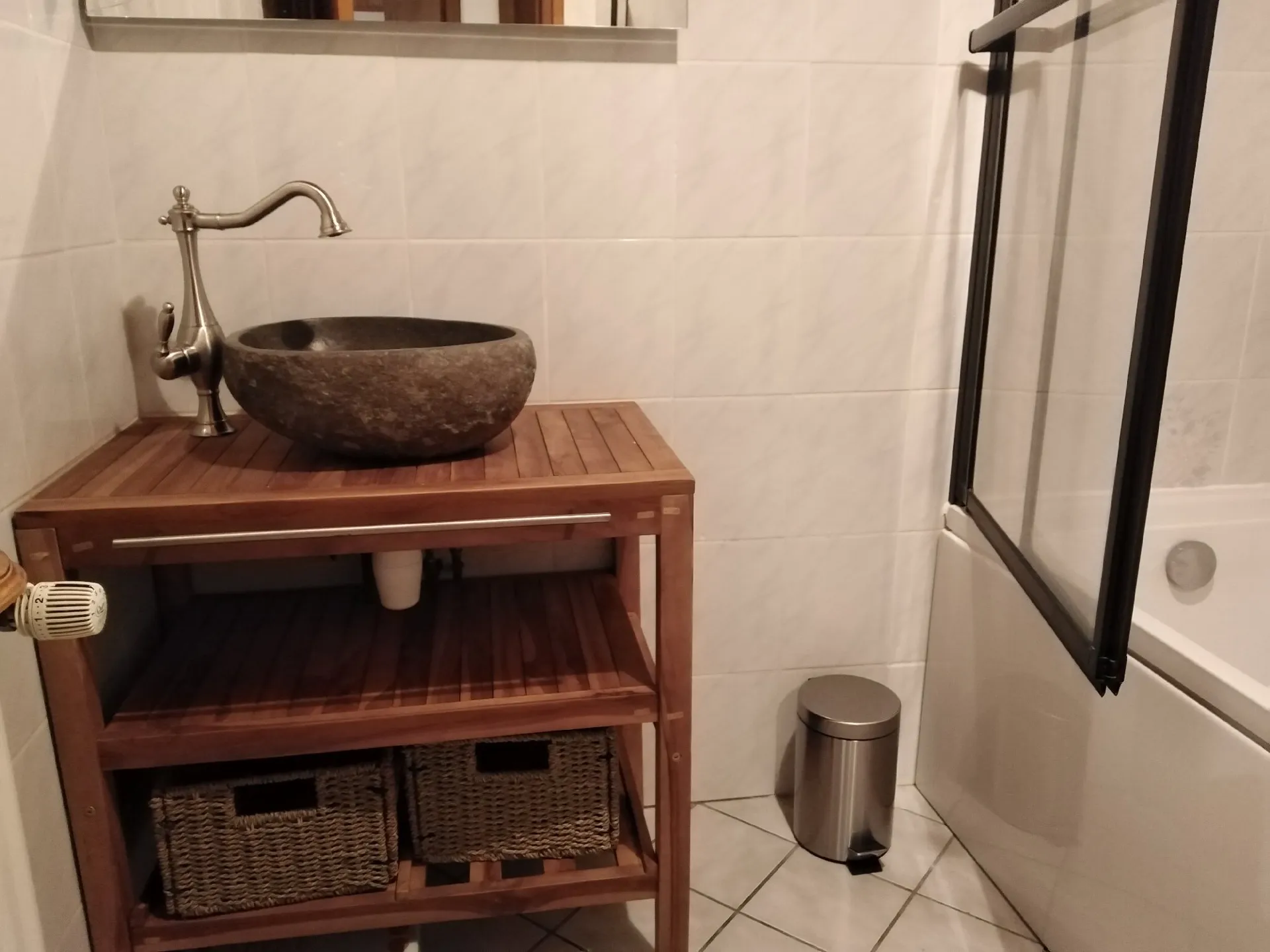 – 1 chambre avec un lit (2 personnes) et un lit (1 personne) avec salle de bain (douche à l’italienne).