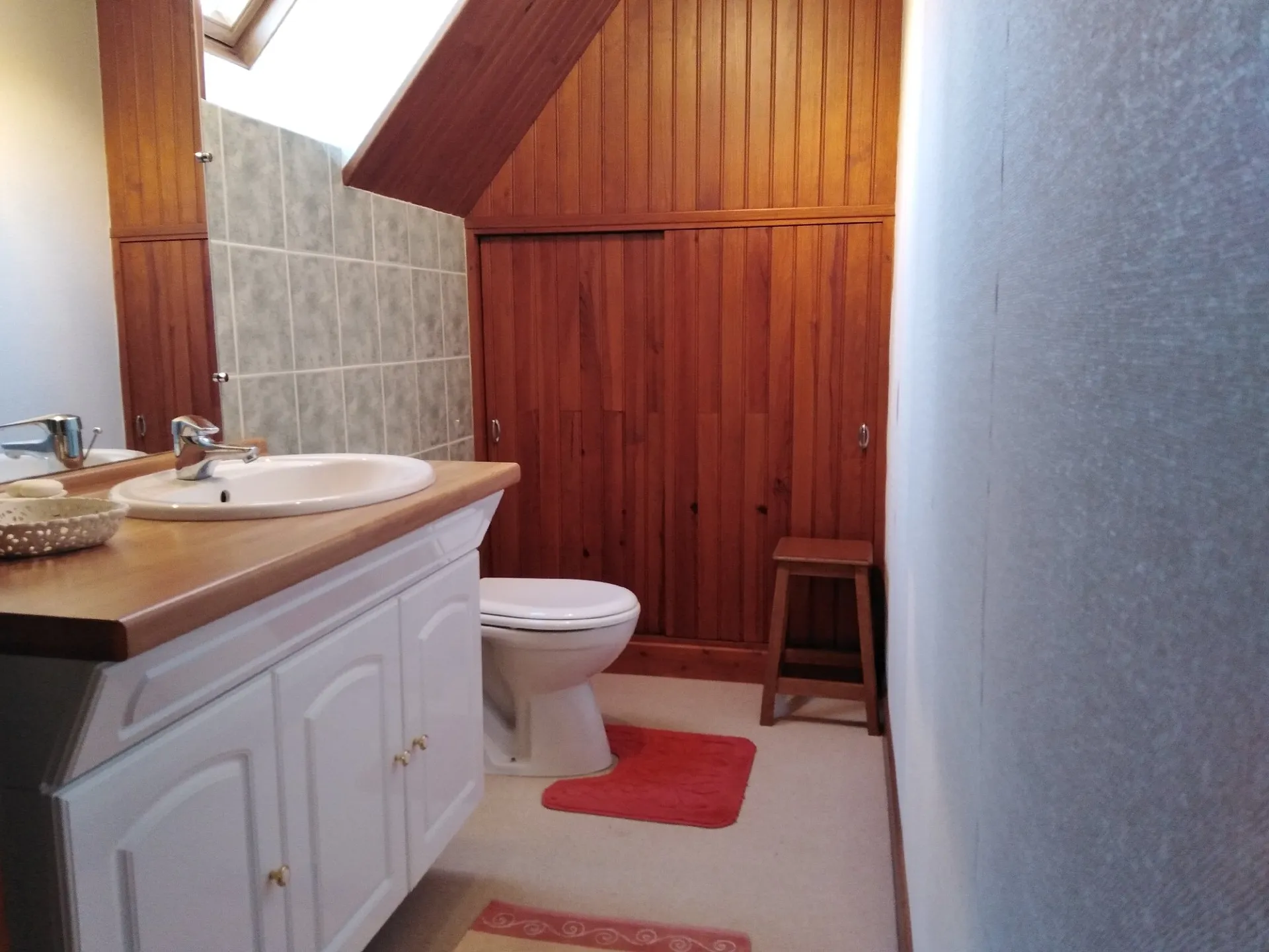– 1 salle de bain avec baignoire et 2 toilettes séparés (étage et RDC).