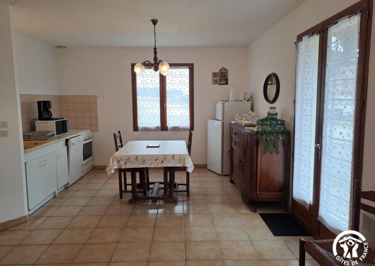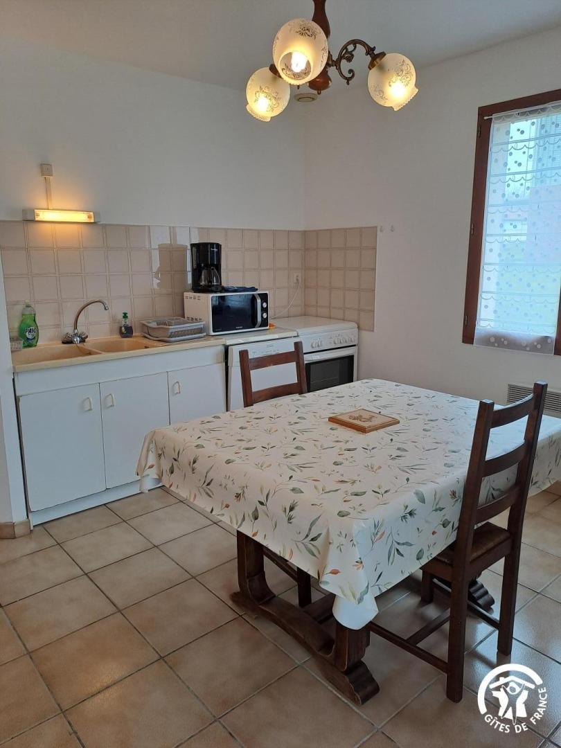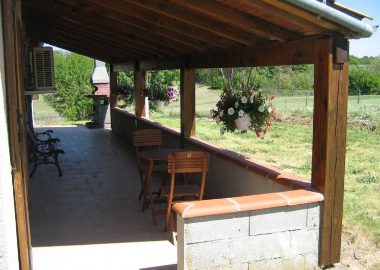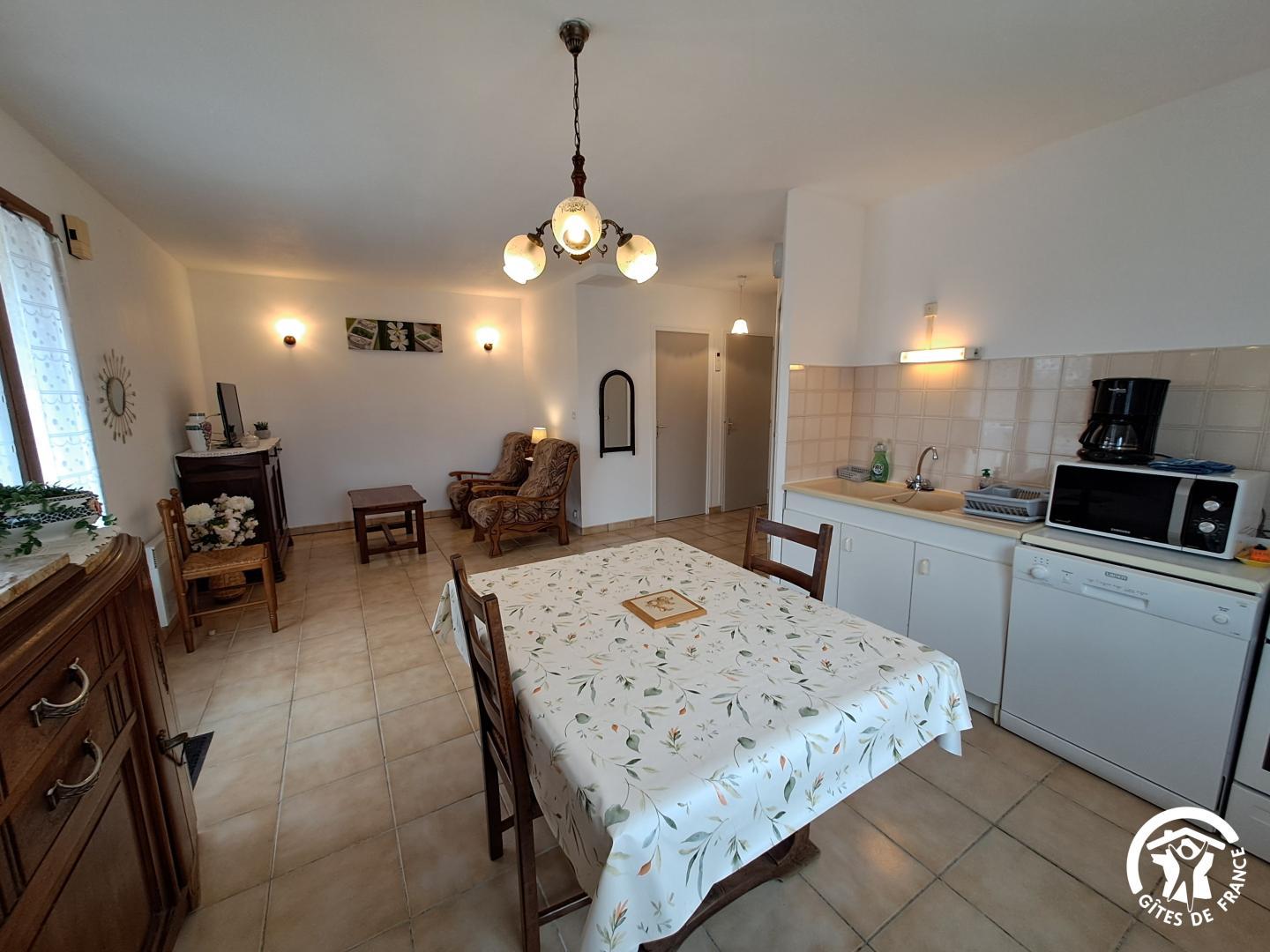 L’un des atouts du gîte est sa terrasse couverte, un véritable espace de vie extérieur, où l’on profite aussi bien des matinées ensoleillées que des douces soirées. Aménagée avec un salon de jardin et un barbecue, elle donne directement sur un espace de verdure.