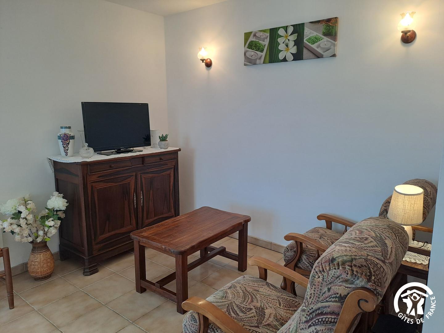 Dès l’entrée, la pièce de vie lumineuse associe un coin cuisine équipé et un petit salon agréable. La chambre dispose d’un lit double en 140×190 confortable, et d’une télévision. Juste à côté, une salle d’eau et un WC.