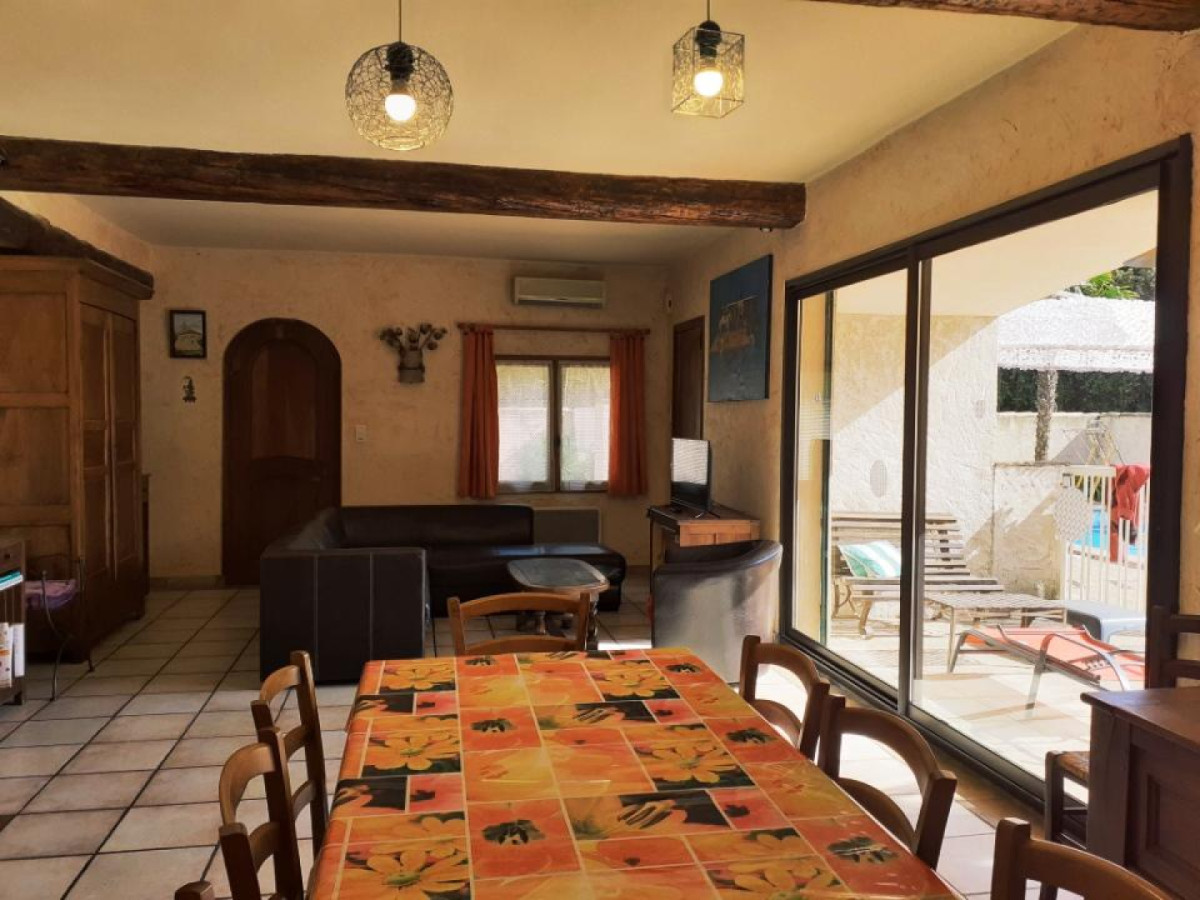 Votre gîte: INTÉRIEUR: – Grand séjour avec coin cuisine et coin salon (cuisine tout équipée: four, micro-ondes, réfrigérateur avec compartiment congélateur, cafetière filtre + Senseo) – 4 chambres: une chambre avec 1 lit 2 personnes: 140×190 et salle de bains attenante, une chambre avec 1 lit 2 personnes 140×190 et salle d’eau attenante, une chambre avec 2 lits 1 personne: 90×190, une chambre avec 1 lit 2 personnes: 140×190, – Salle d’eau, – 3 WC – Climatisation dans le salon EXTÉRIEUR: – Jardin clos de 600 m², – Terrasse avec salon de jardin, – Piscine privée (9,5X5m) clôturée, – Barbecue, – Parking clos. (Forfait de 2kwh/jour/personne inclus) ATTRAITS TOURISTIQUES : Les Plages de Marseillan et du Cap d’Agde, L’étang de Thau (parcs ostréicoles), Sète, Béziers, Canal du Midi, le charmant village de Pézenas.