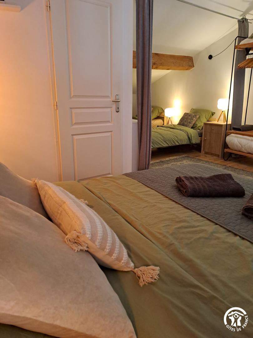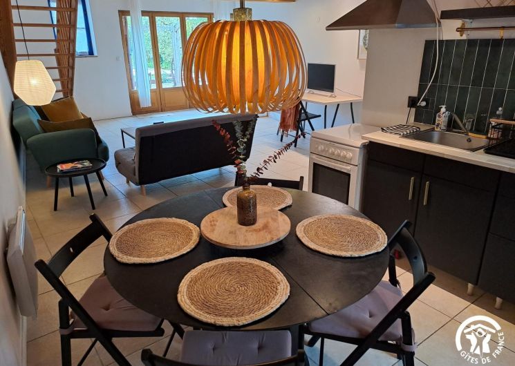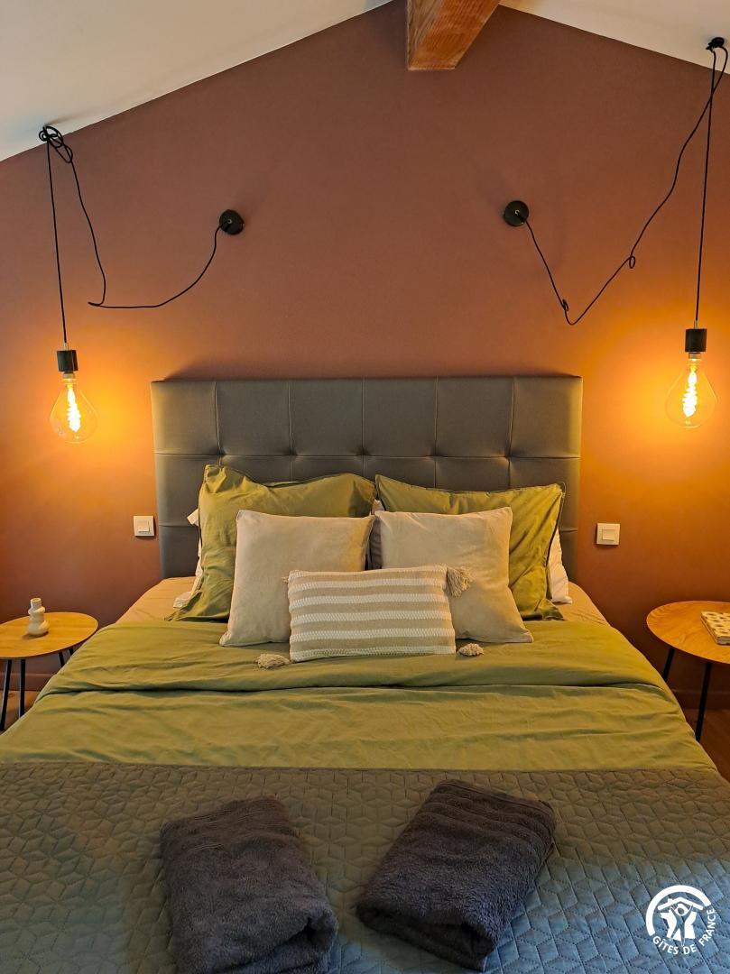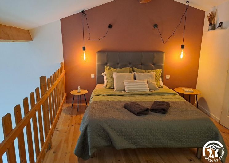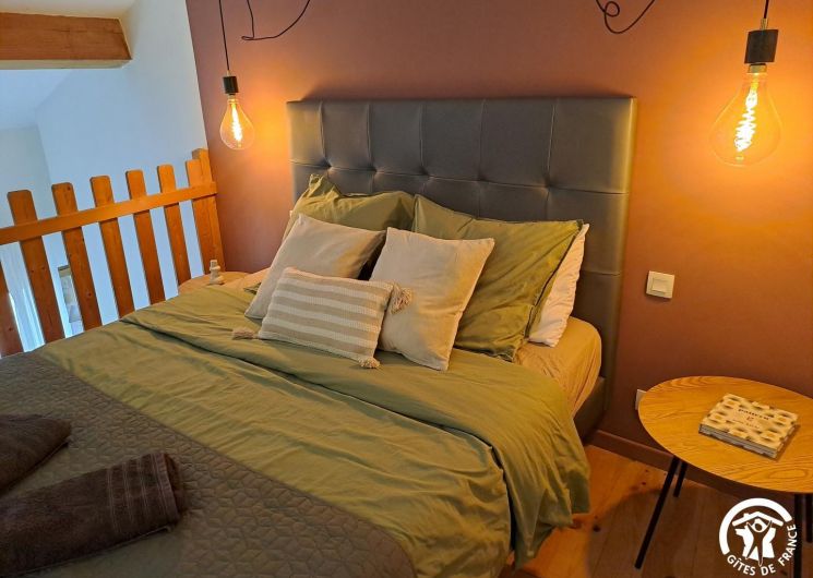 Gîte d’une chambre, doté d’une salle de bain, d’une cuisine américaine, d’un salon et d’un coin repas, où deux canapés-lits doubles sont disponibles. Avec ses plafonds de quatre mètres de hauteur et ses murs en pierre épais, cet espace offre une atmosphère authentique et chaleureuse. Profitez de la terrasse équipée d’un petit barbecue qui donne sur la piscine commune. Ce gîte peut accueillir jusqu’à quatre adultes.