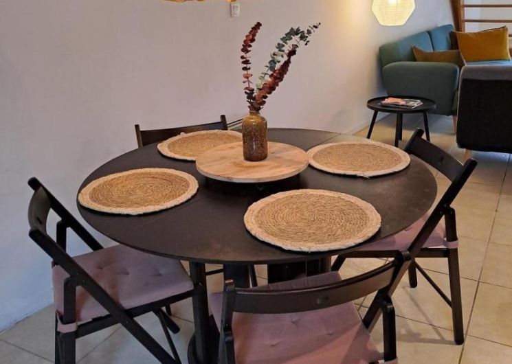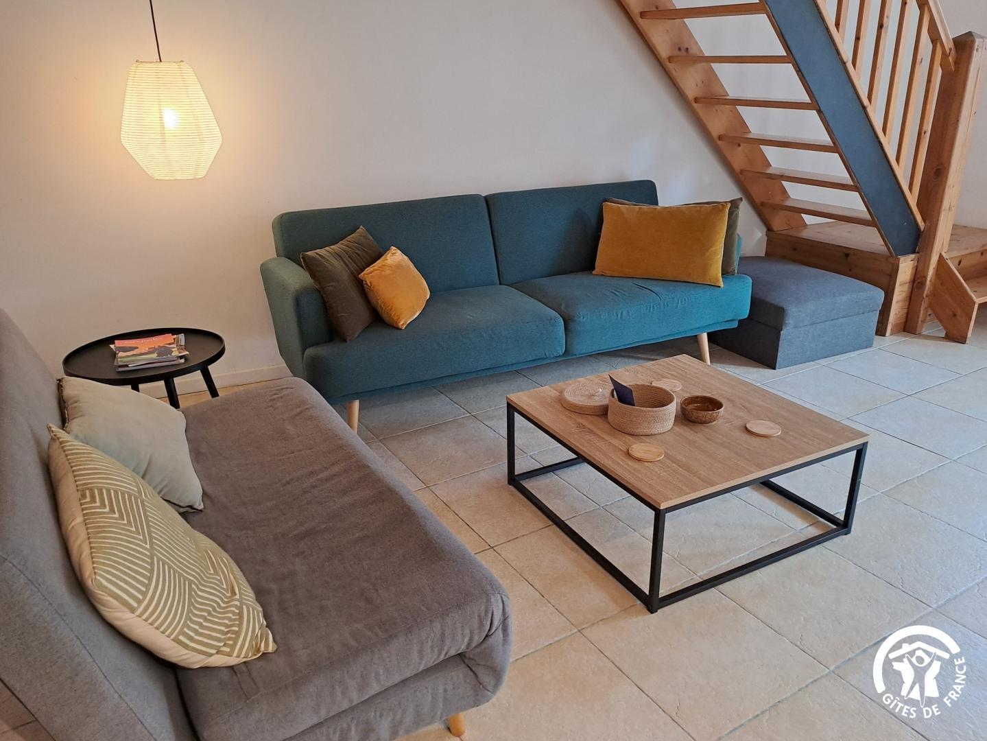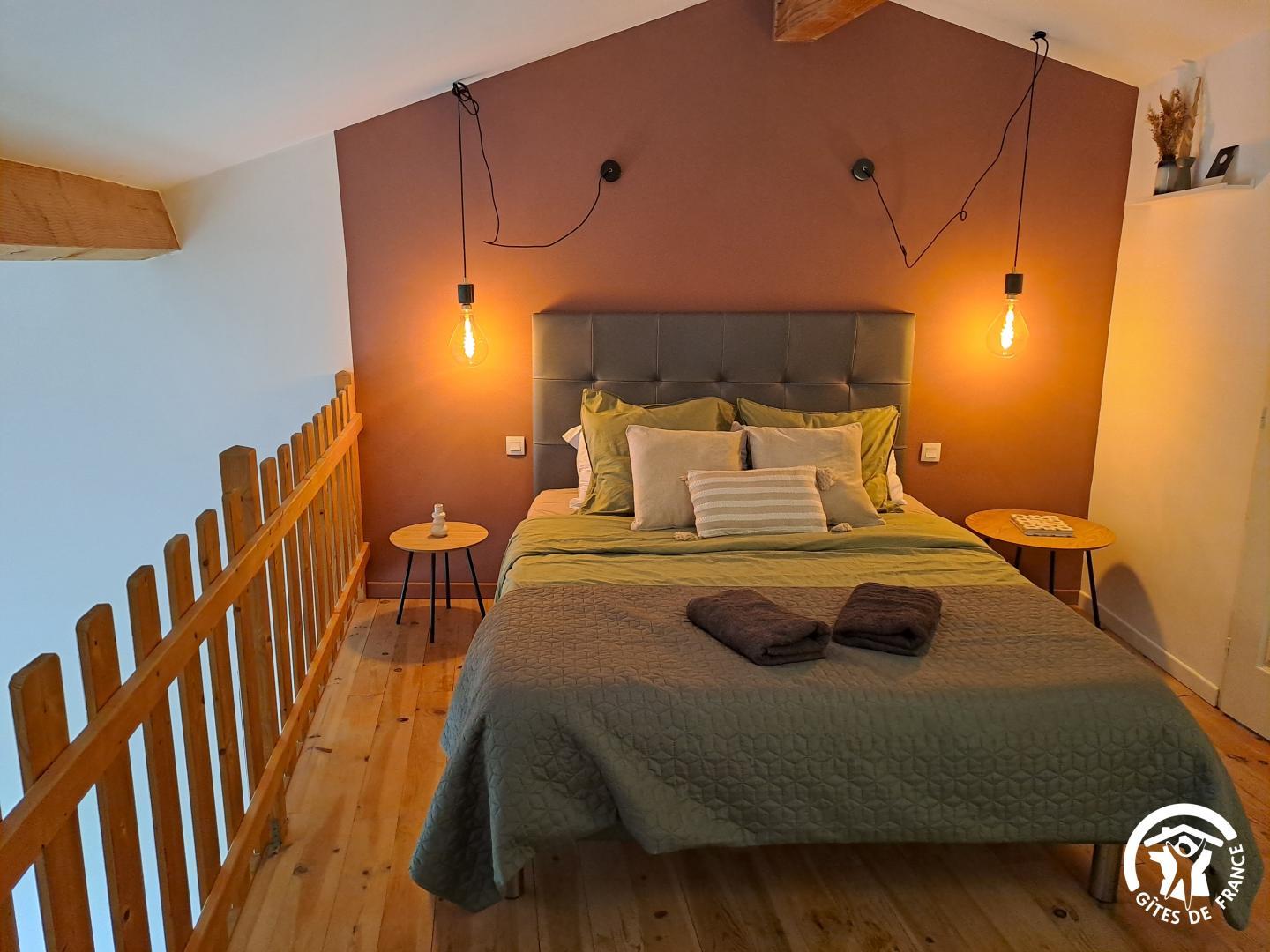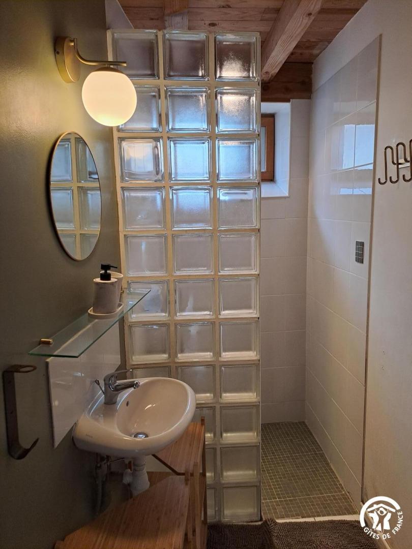 Gîte d’une chambre, doté d’une salle de bain, d’une cuisine américaine, d’un salon et d’un coin repas, où deux canapés-lits doubles sont disponibles. Avec ses plafonds de quatre mètres de hauteur et ses murs en pierre épais, cet espace offre une atmosphère authentique et chaleureuse. Profitez de la terrasse équipée d’un petit barbecue qui donne sur la piscine commune. Ce gîte peut accueillir jusqu’à quatre adultes.