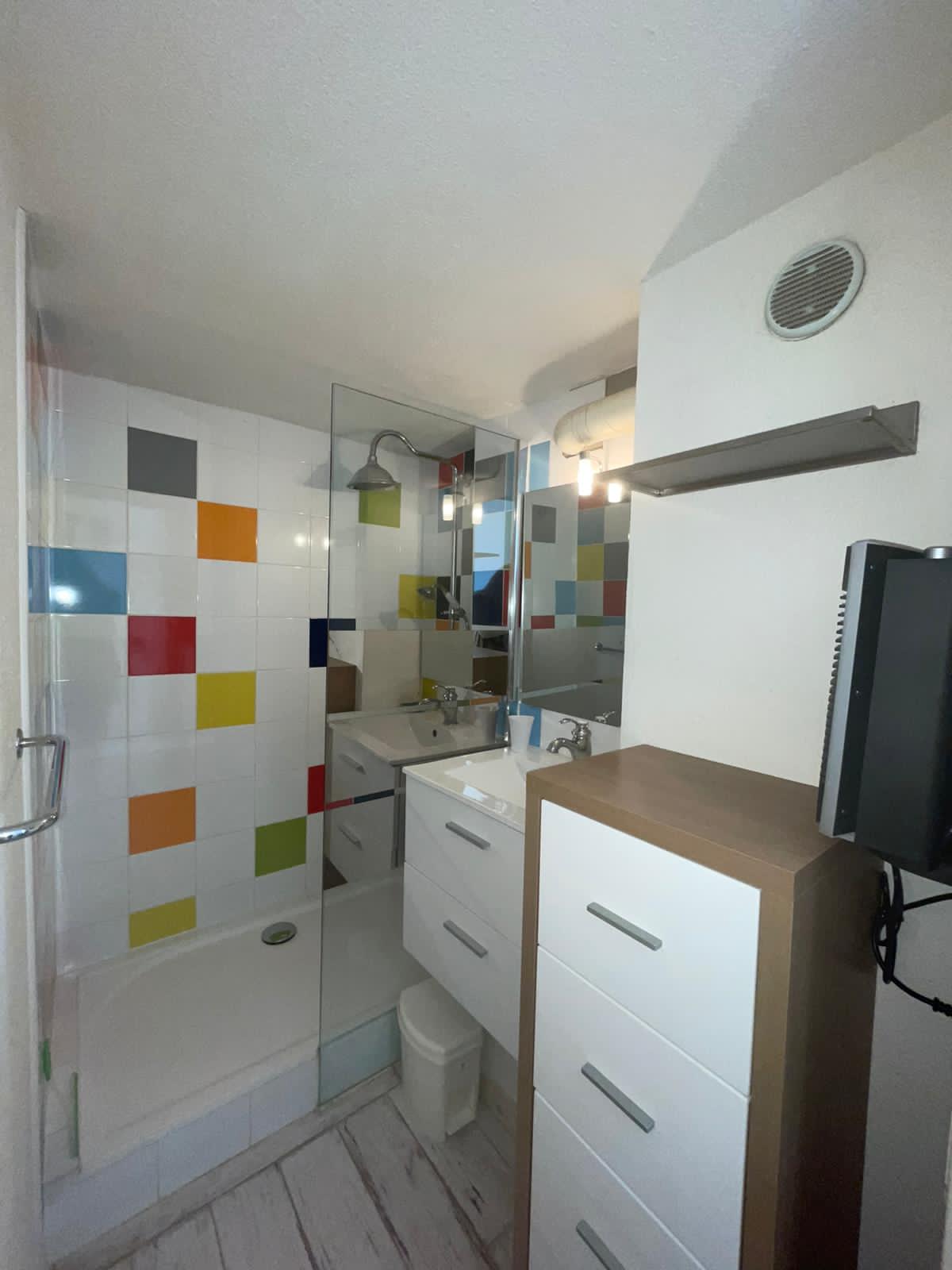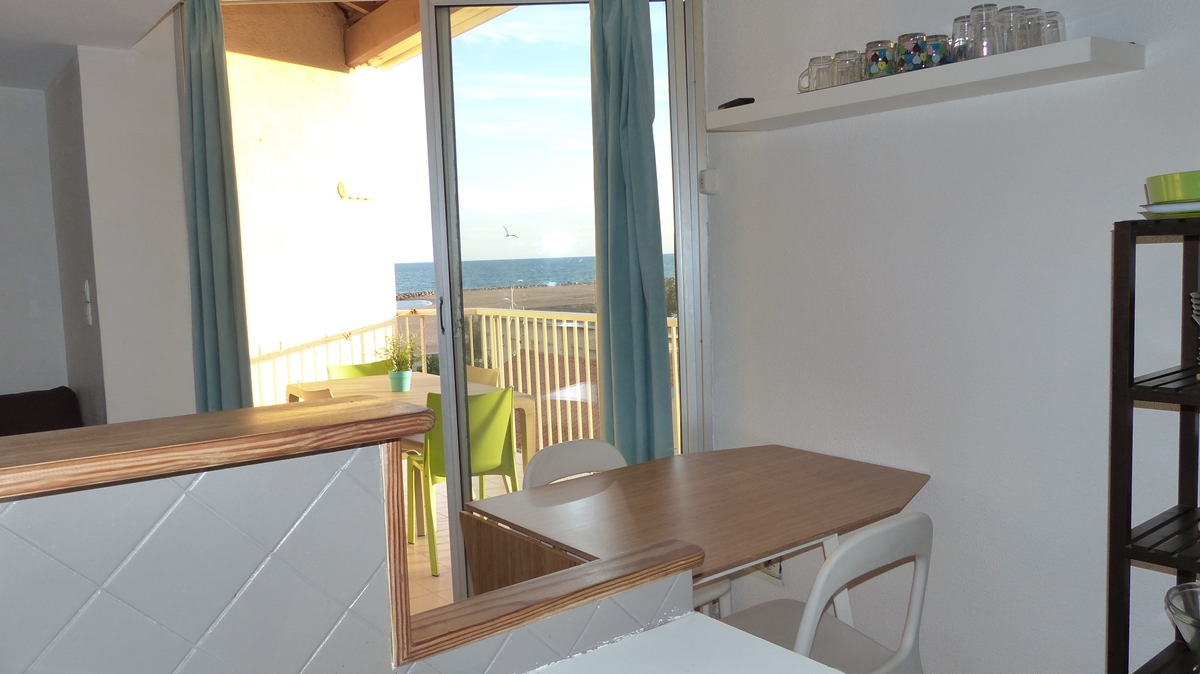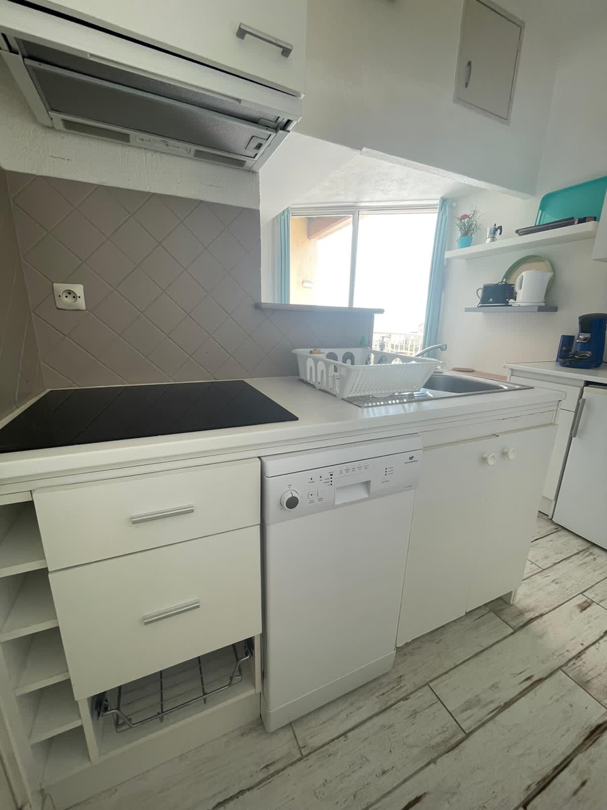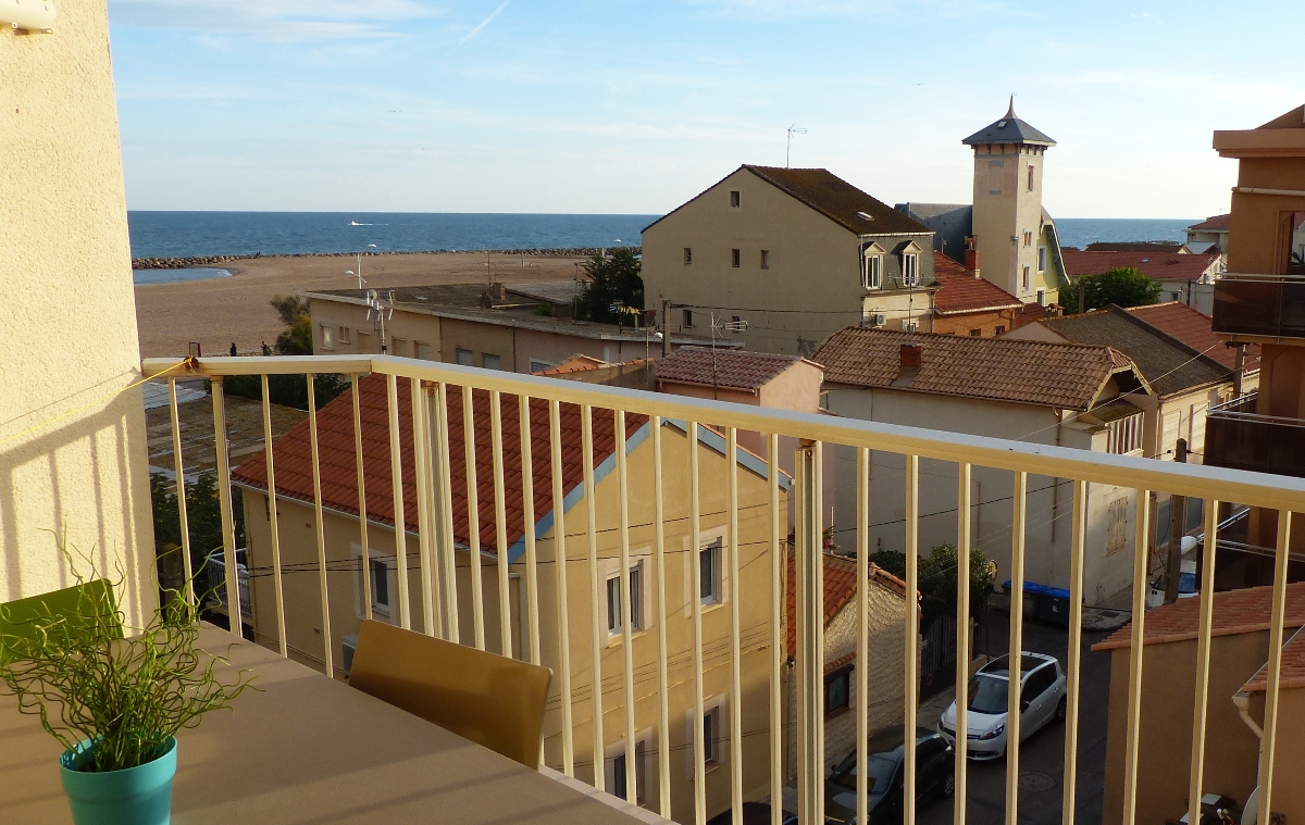 Appartement 2 pièces en duplex au quatrième et dernier étage avec ascenseur, terrasse offrant une superbe vue mer , situé au centre de Valras-Plage,à 150 mètres de la plage, pour 5 personnes , une chambre avec lit double, une cabine avec lit 1 personne et dans le séjour un canapé clic clac pour 2 couchages, salle de bain moderne avec douche à l’italienne, cuisine équipée, lave-vaisselle, plaque à induction, four multifonction, frigo et congélateur, wc séparés. Buanderie avec lave-linge et nombreux rangements.