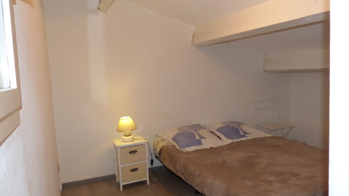 Studio cabine avec mezzanine pour 5 personnes, situé en 2ème ligne avec vue sur la mer, ascenseur, au 4ème étage d’un immeuble.