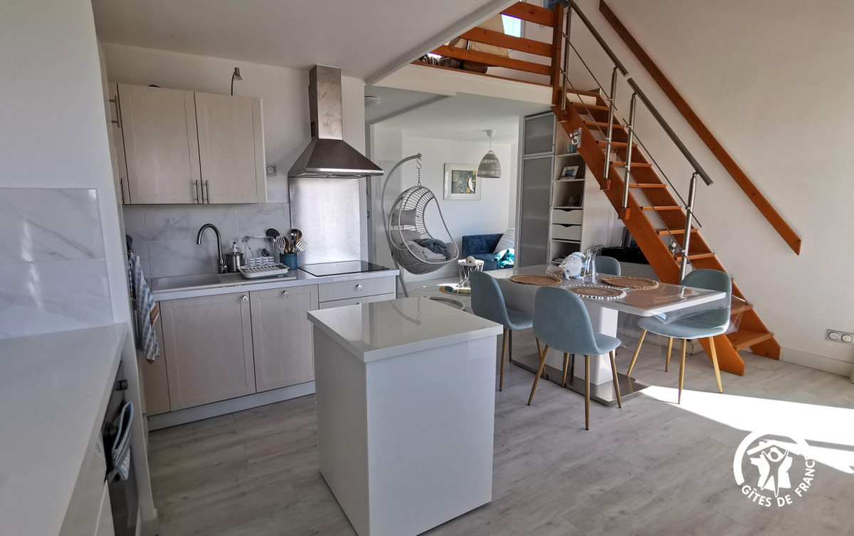 Bienvenue chez la Sirène, ce loft rayonnant avec une vue imprenable sur la Mer Méditerranée et le port de plaisance. Situé au calme, à quelques pas seulement de la plage avec accès direct, ce logement est le lieu idéal pour des vacances lumineuses en bord de mer. L’appartement décoré dans un esprit méditerranéen est équipé de tout ce dont vous avez besoin pour un séjour confortable et agréable, de qualité. Le salle de vie se divise en plusieurs espaces. Depuis le grand séjour ouvert et lumineux, vous aurez une vue directe sur la mer. La grande cuisine ouverte avec vue mer est entièrement équipée (four, micro-ondes, ustensiles de cuisine, machine à café, bouilloire, grille-pain…) Vous découvrirez en mezzanine (20m2) l’espace nuit avec un lit en 160x180cm, un grand dressing ainsi qu’un salon/bureau avec une vue sur le port et les bateaux. La loggia vous émerveillera par la vue directe sur la mer. Vous pourrez y prendre vos petits-déjeuners, déjeuners, dîners ou cocktails. Des transats y sont également installés afin que vous puissiez lire et vous reposer avec la mer en arrière plan. Le fort de cette loggia est qu’elle est équipée d’une fenêtre. En hiver, la laisser fermée permet de couper le vent et de profiter de l’extérieur, en été, vous pouvez l’ouvrir à votre guise pour laisser passer l’air. Afin de vous offrir tout le confort nécessaire, chez la Sirène tout est inclus : les draps et le linge de toilette sont fournis, le logement est équipé de la climatisation, d’une connexion WiFi (fibre) et d’une télévision (chaînes supplémentaires comprises). Le ménage de fin de séjour est inclus. Vous pourrez également disposer d’une place de parking privative lors de votre séjour. En somme, ce loft en dernier étage (avec ascenseur) est un havre de paix en bord de mer. Il sera le lieu idéal pour profiter du soleil toute l’année.