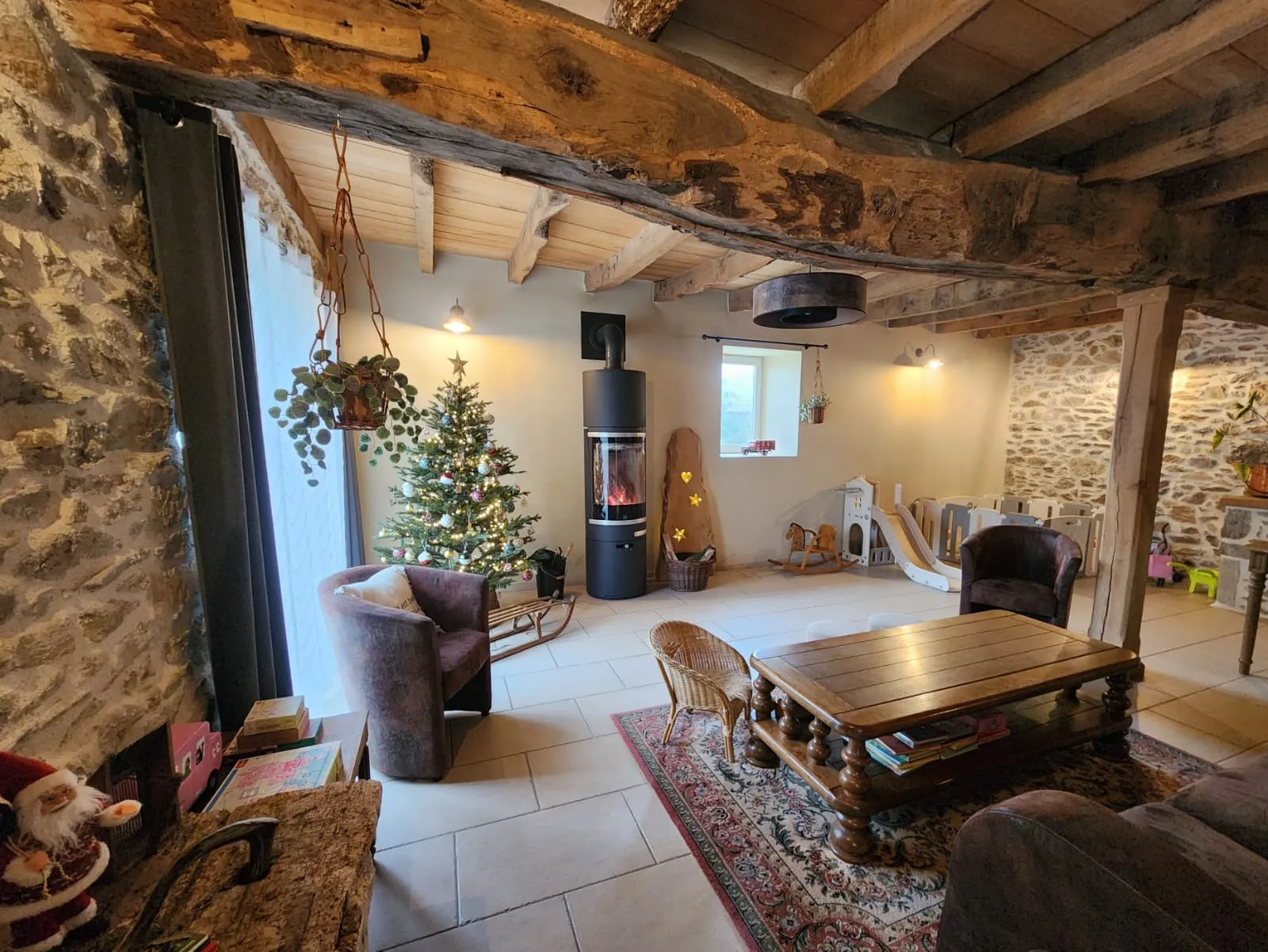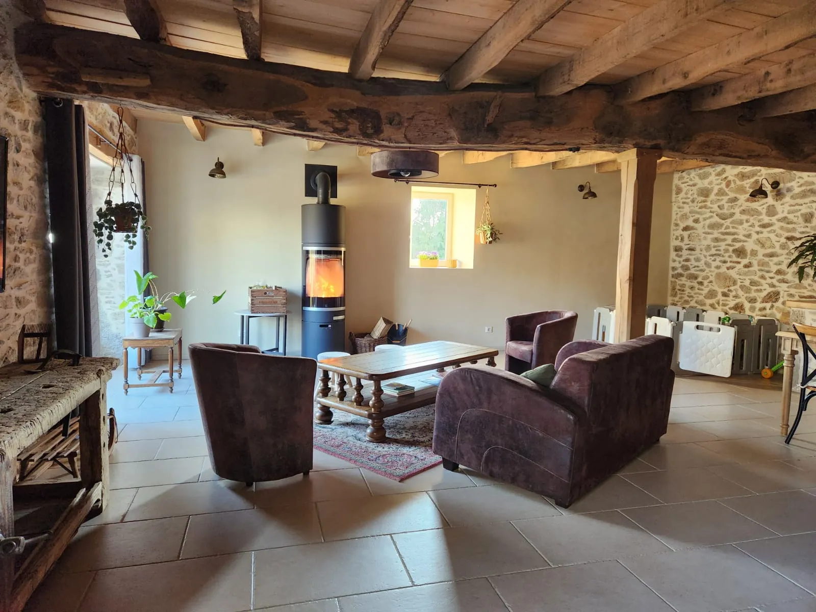 Entièrement restauré pour vous recevoir dans le plus grand confort, il a gardé tout son cachet d’antan grâce à ses poutres en chêne centenaire, son habillage en châtaignier et ses murs en pierres apparentes dans l’ensemble de la bâtisse.