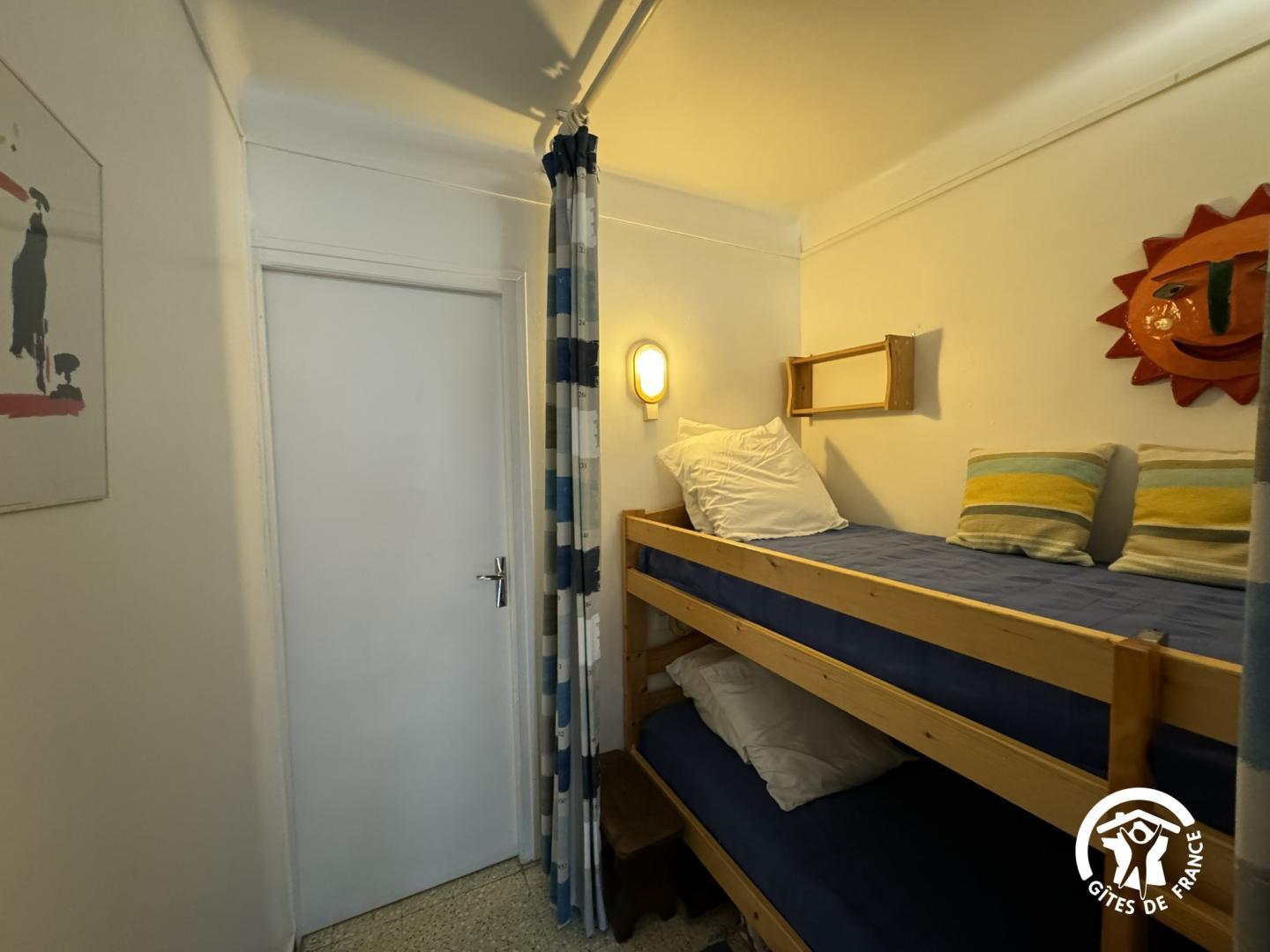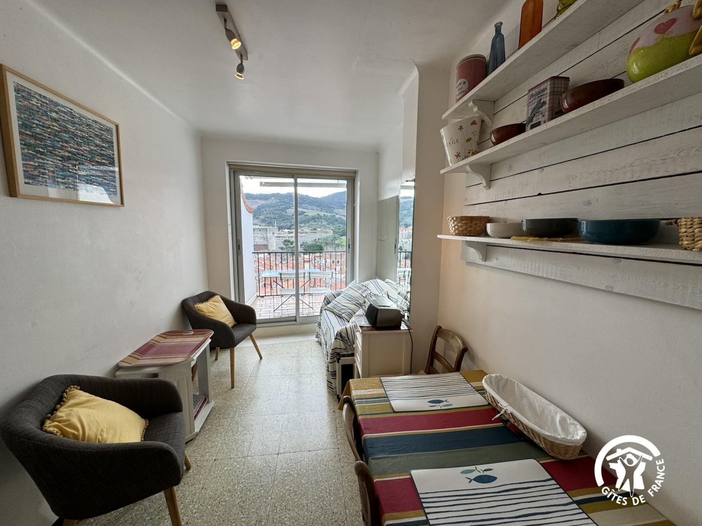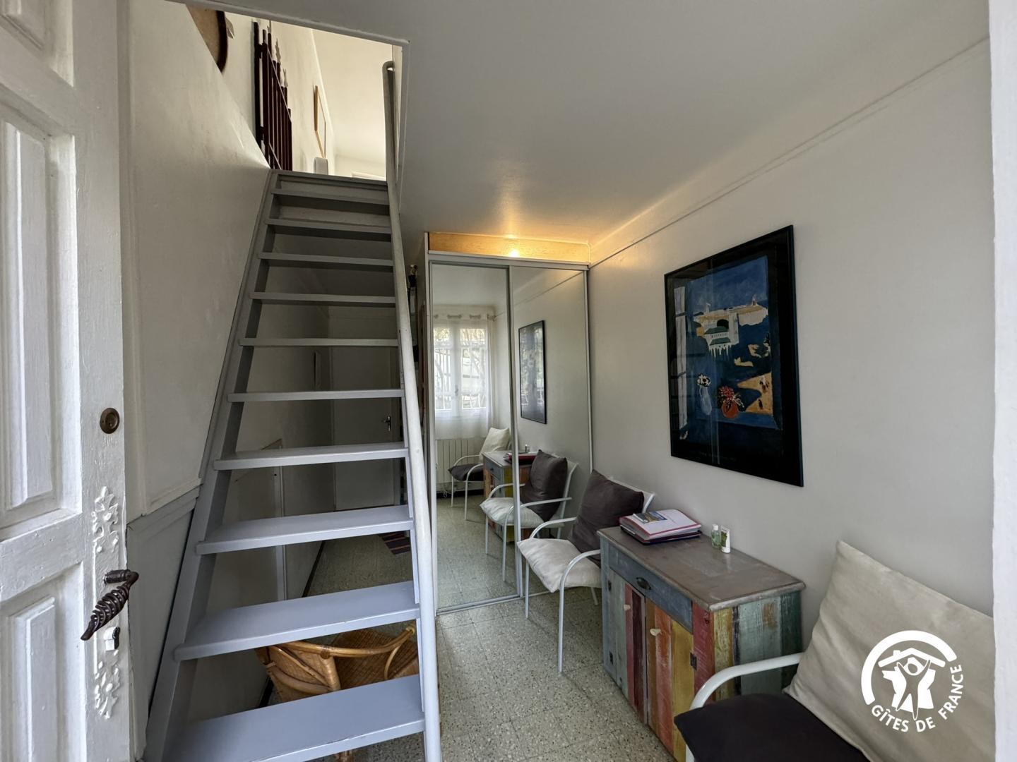 Ici, à quelques minutes à pied des magnifiques plages de Collioure, où vous pourrez profiter de baignades en eau claire, de promenades sur le front de mer ou simplement admirer les couleurs changeantes du ciel au coucher du soleil. Vous aurez également accès facilement aux sites emblématiques du village, comme le Château Royal, le Clocher de Collioure ou encore les célèbres ruelles colorées qui ont inspiré de nombreux peintres, dont Matisse et Derain. L’endroit est parfait pour explorer les alentours : les vignobles réputés de la région, les criques sauvages de la côte et Paulilles, le sentier du littoral ou encore la ville historique de Perpignan. Rez-de-chaussée : -Chambre 1 climatisée : 1 lit 140×190 + 2 lits 90×190 superposés Premier étage : – Séjour -Coin cuisine équipée -Salle d’eau avec WC Le séjour s’ouvre sur une terrasse panoramique, sur le village et le port de Collioure et les collines environnantes.