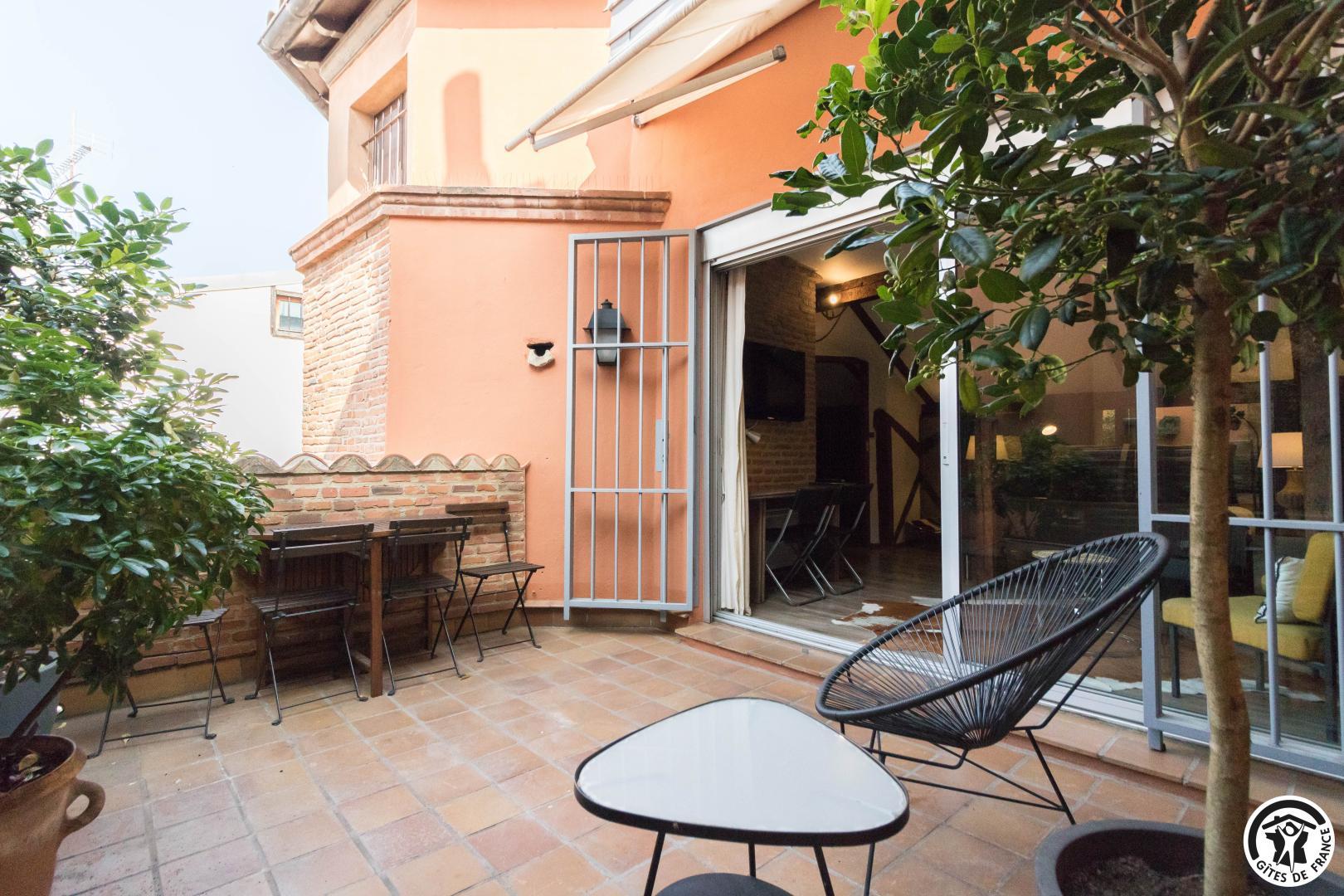 Son atout phare ? Une terrasse intime et ensoleillée avec barbecue, suspendue au-dessus du quartier historique des Carmes, idéal pour un petit-déjeuner avec les clochers en panorama ou une soirée grillades sous les étoiles.