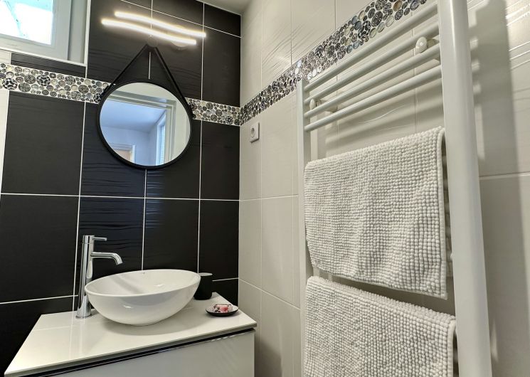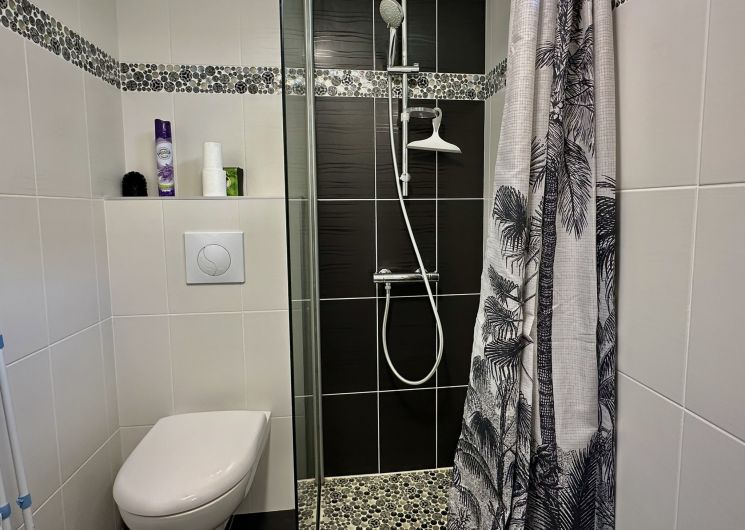 Vous bénéficierez d’une cuisine équipée et d’une salle de bain avec douche à l’italienne, d’une chambre avec un lit double et d’un canapé convertible, devenant un lit d’appoint deux places.