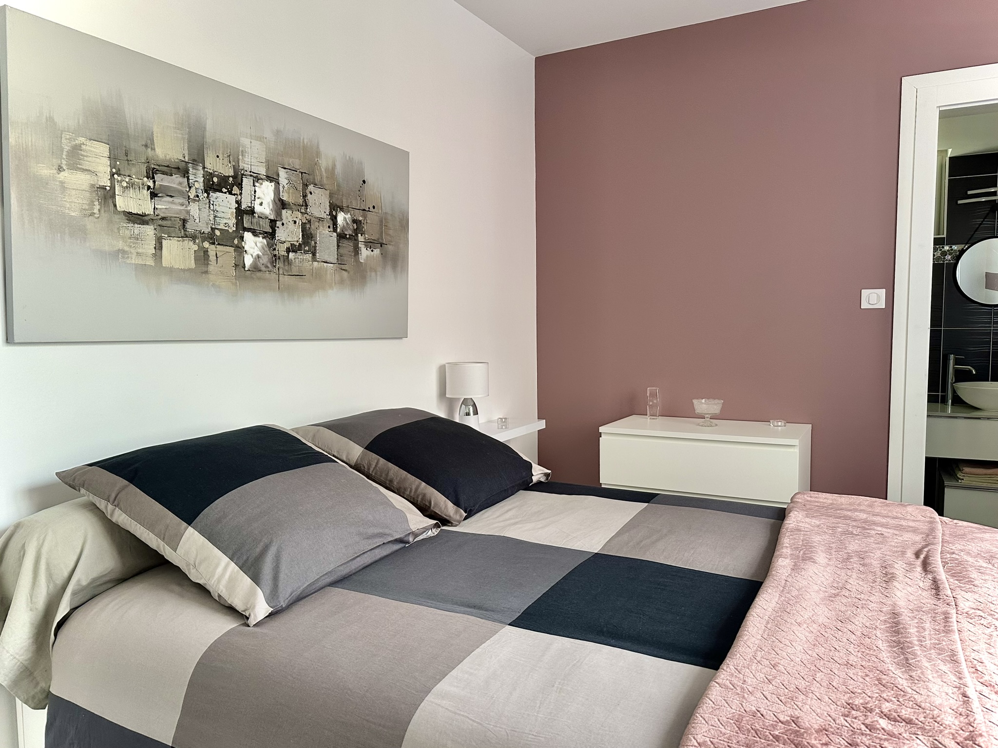 Vous bénéficierez d’une cuisine équipée et d’une salle de bain avec douche à l’italienne, d’une chambre avec un lit double et d’un canapé convertible, devenant un lit d’appoint deux places.