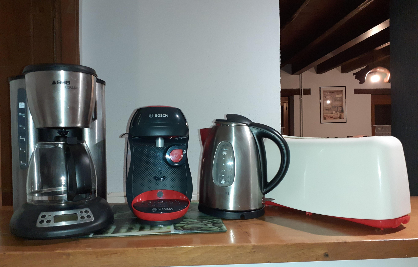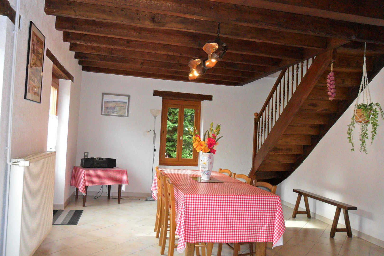 Au rez-de-chaussée, le grand séjour est la pièce centrale du gîte, ouvert vers la cuisine et le salon. Il donne vers la terrasse et le jardin (salon de jardin, barbecue). Cuisine indépendante toute équipée : lave-vaisselle, four, plaque 4 feux (3 gaz + 1 élec), réfrigérateur-congélateur, micro-ondes, lave-linge, machine à dosettes « Tassimo multi boissons », cafetière, bouilloire, grille-pain, robot mixeur…. Salon avec canapé, fauteuil, cheminée avec insert, tv. Wc.