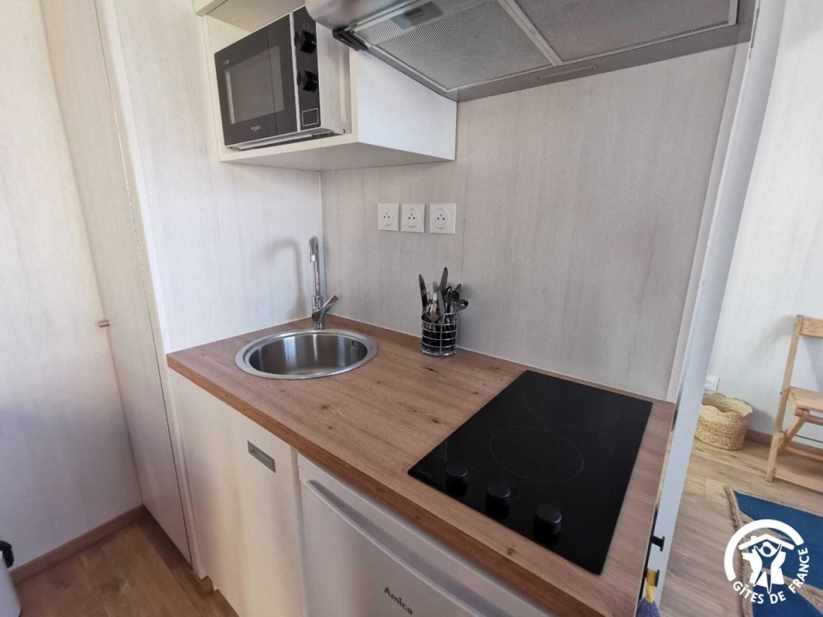 A Creissan, dans un chemin calme et sur une jolie propriété avec piscine, passez quelques jours dans la Tiny de Creissan, une maisonnette en bois éco-conçue pour deux personnes, joliment décorée et aménagée. A Creissan, découvrez le château historique du village, construit au Xème siècle, aujourd’hui réaménagé en salle d’exposition ouverte au public. A seulement quelques kilomètres de l’hébergement, vous pourrez découvrir le célèbre Canal du Midi le temps d’une balade sur l’eau ou sur les bords du Canal à vélo ou à pied. Village entouré de garrigues et de vignobles, vous pourrez lors de votre séjour découvrir les caveaux locaux, ou tout simplement faire une randonnée sur l’un des nombreux sentiers de la région. L’hébergement comprend : – Un espace salon et cuisine (avec micro-ondes, réfrigérateur, machine à café et le nécessaire de cuisine), avec une table en bois modulable et un canapé transformable en lit 140×190 cm pour deux personnes (un deuxième canapé lit est présent sur place); – Un espace détente avec un canapé et une télévision ; – Une salle d’eau avec douche, WC, sèche-serviettes et vasque avec miroir ; – Une belle terrasse en bois avec salon de jardin, ainsi que l’accès à une piscine commune avec les propriétaires ; – Une buanderie avec machine à laver. Les petits +: – Matériel bébé disponible sur demande, – Petit déjeuner: 8€/personne – Possibilité de restauration Certains animaux acceptés sur demande auprès du propriétaire Vous pourrez vous garer facilement devant le gîte ou à l’intérieur de la propriétaire, et un garage pour vos vélos ou vos motos est mis à disposition par vos hôtes.