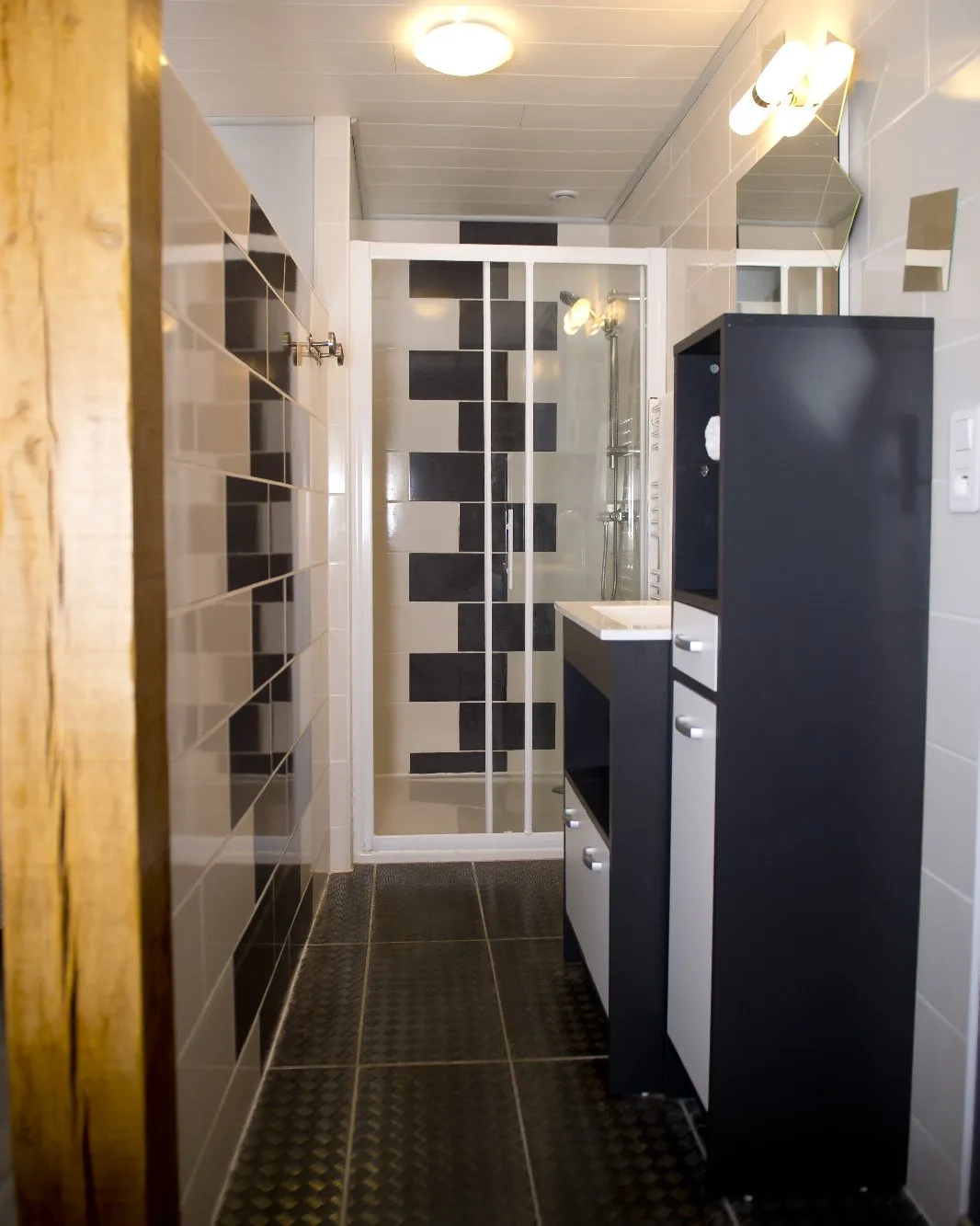 – 1 chambre : 1 grand lit, 1 petit lit, 1 matelas d’appoint, une salle d’eau.