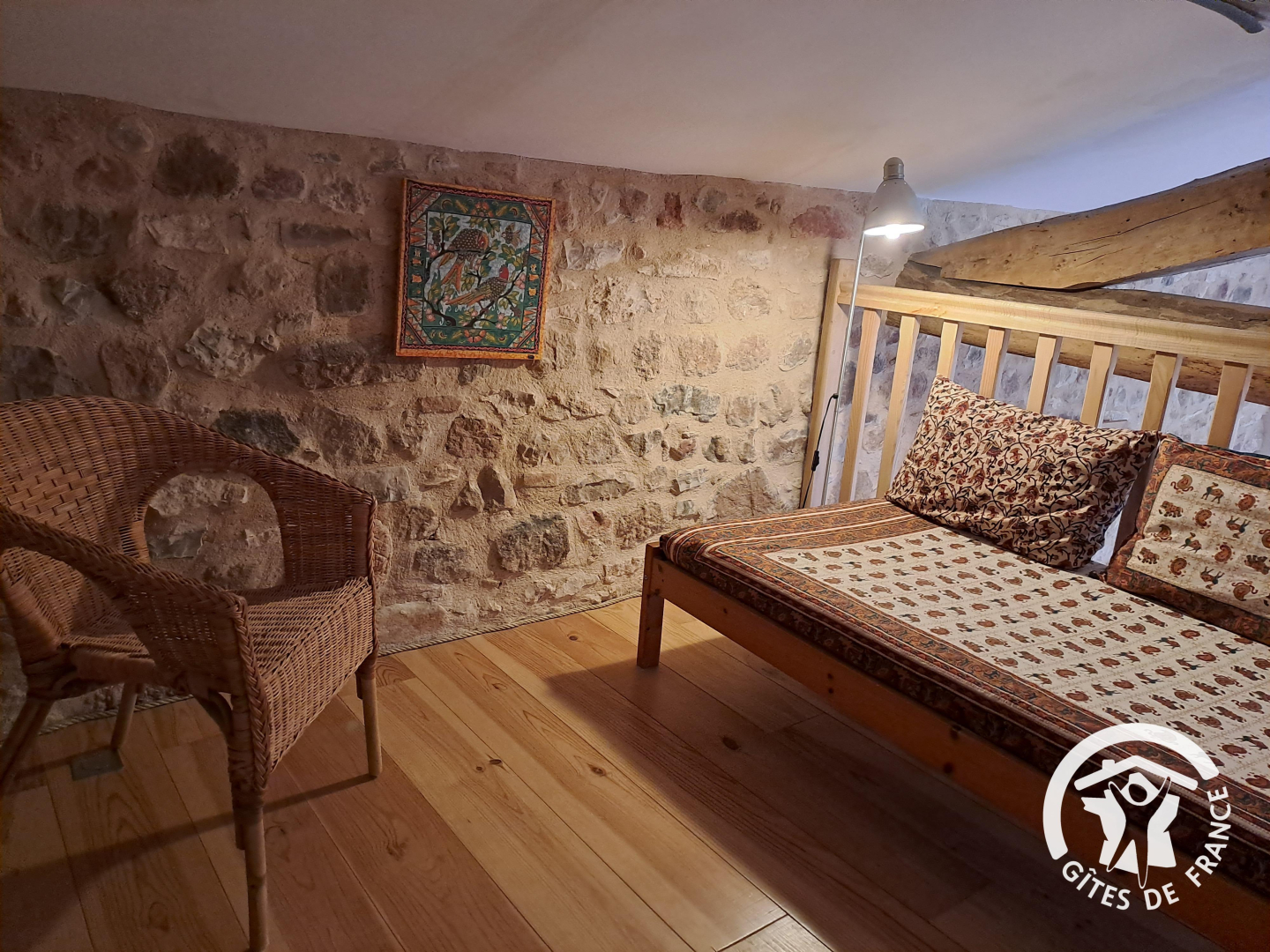 – Un escalier mène au 2e étage où se trouve la première chambre avec 2 lits superposés et un lit gigogne, puis au 3e étage tout en haut, jusqu’à la deuxième chambre avec un très grand lit.