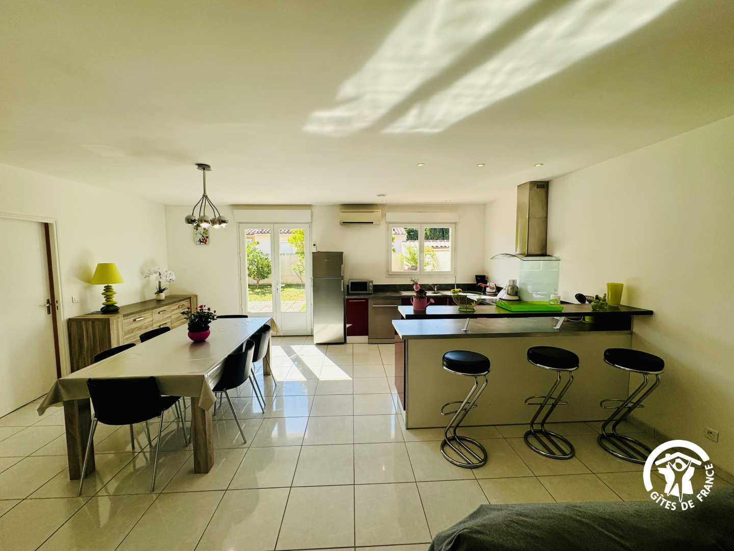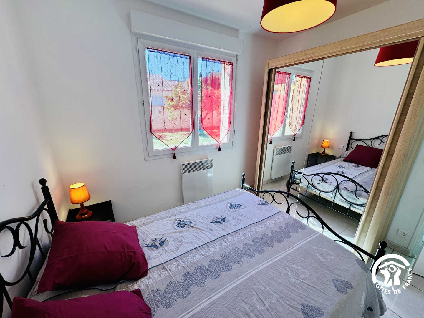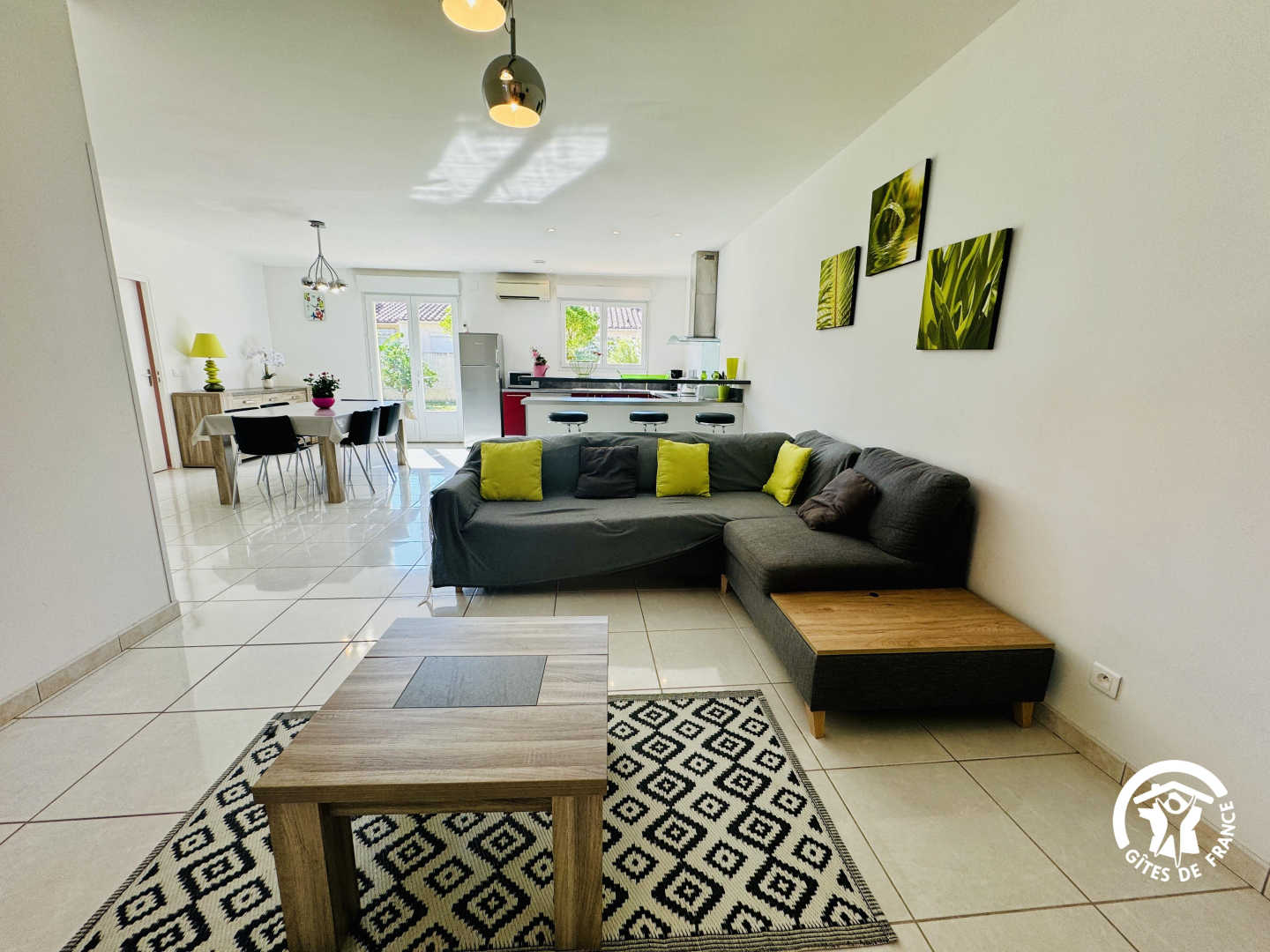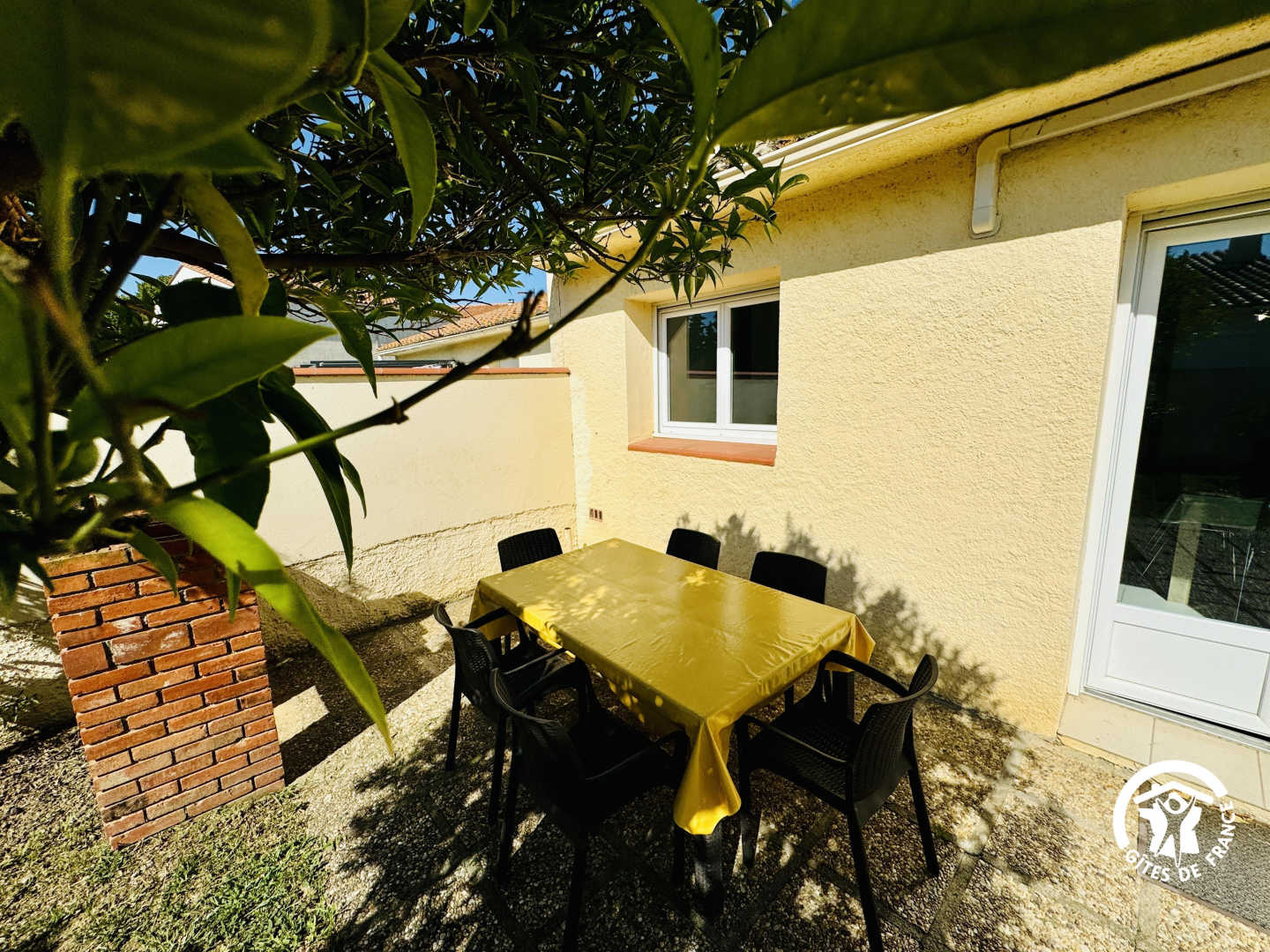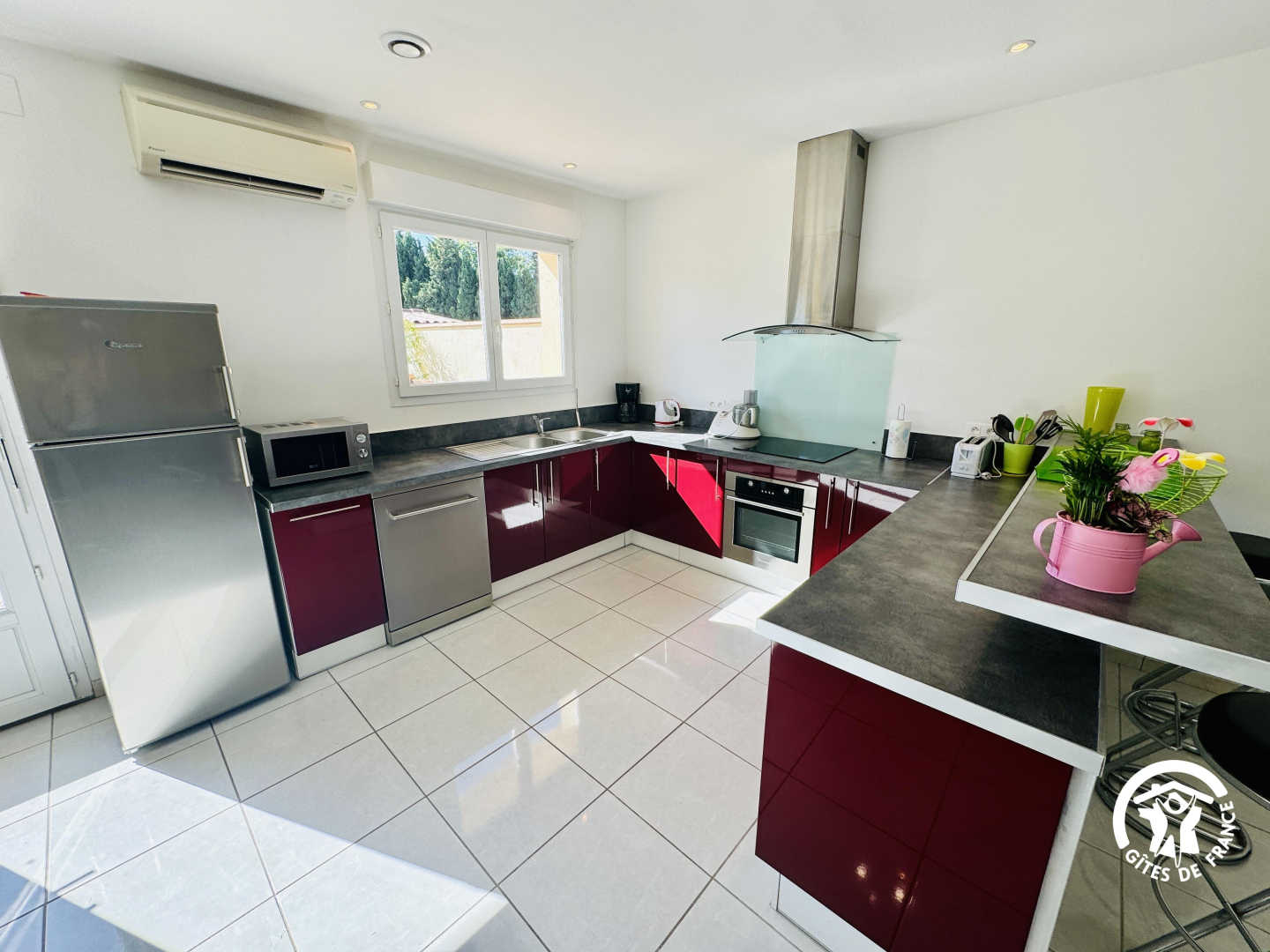 À proximité de la scintillante Méditerranée, ce gîte est idéalement situé pour partir à la découverte des trésors des Pyrénées-Orientales. Vous séjournerez à seulement 3 km de Elne, ancienne capitale historique du Roussillon, et à 17 km de Collioure, une station balnéaire emblématique et pittoresque du département. La région regorge de merveilles à explorer. Le gîte est de plain-pied et s’ouvre au rez-de-chaussée sur: – Un grand séjour climatisé avec salle à manger et cuisine toute équipée (four, micro-ondes, cafetière à filtre, frigo-congélateur, lave-vaisselle) ainsi qu’un salon avec canapé et TV. – Une première chambre: un lit 140x190cm – Une deuxième chambre : un lit 140x190cm – Une troisième chambre avec deux lits en 90x190cm. – Une salle d’eau indépendante: douche et vasque. – Un WC indépendant. – Une véranda. Parking clos et sécurisé à l’intérieur de la propriété.